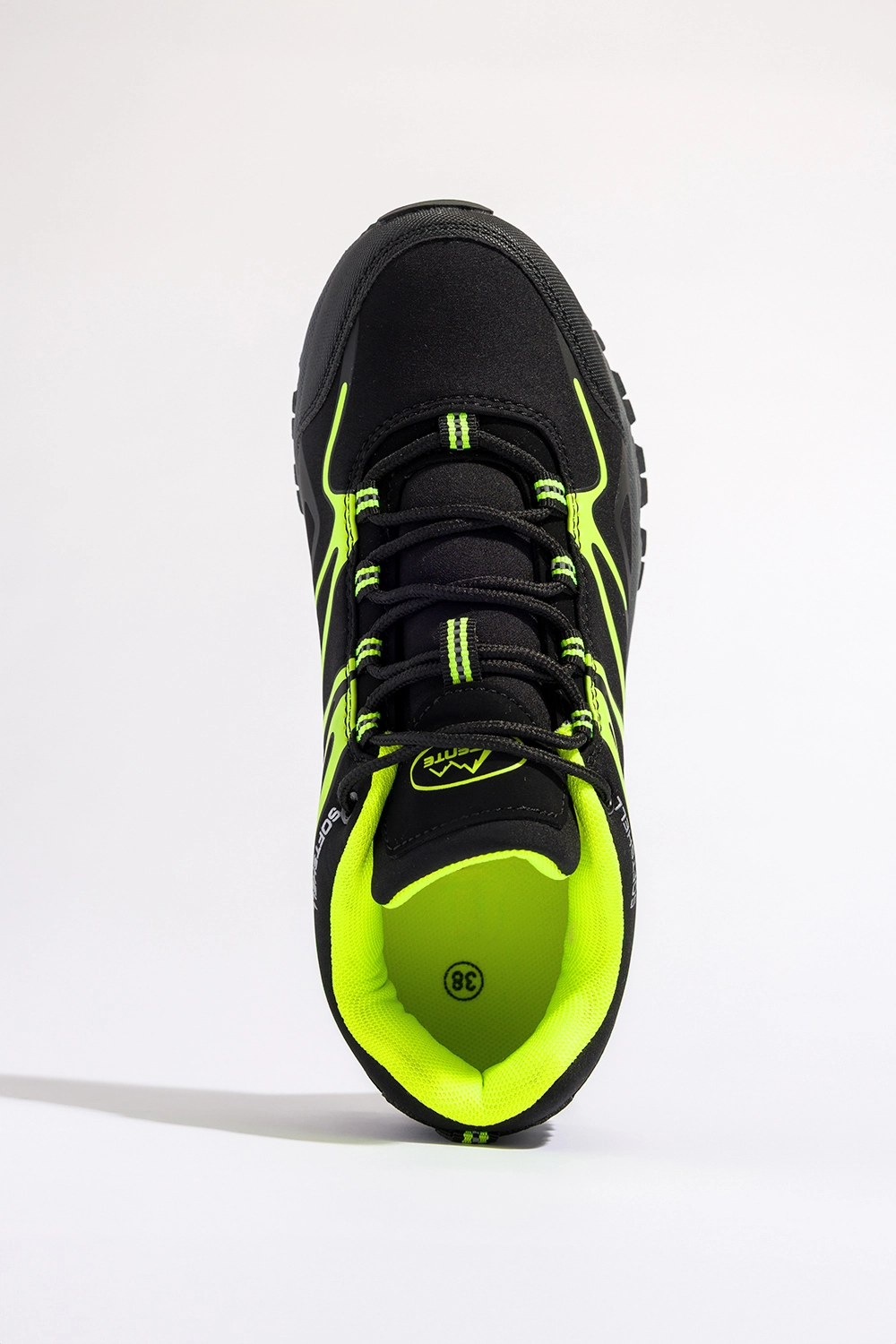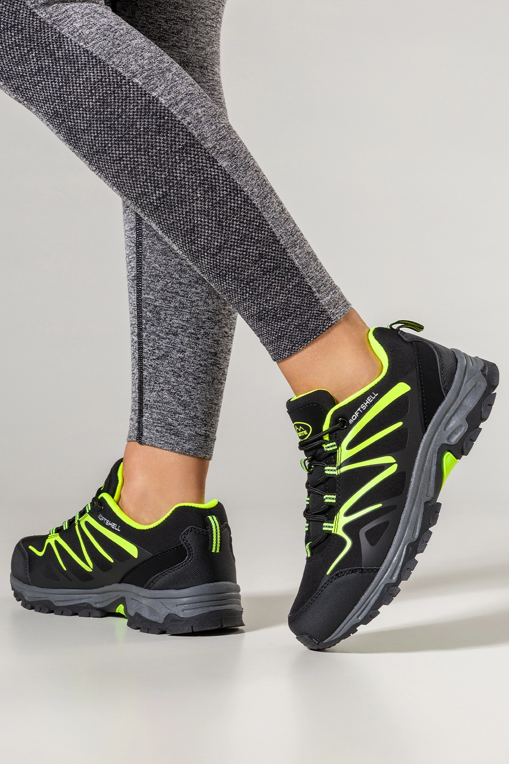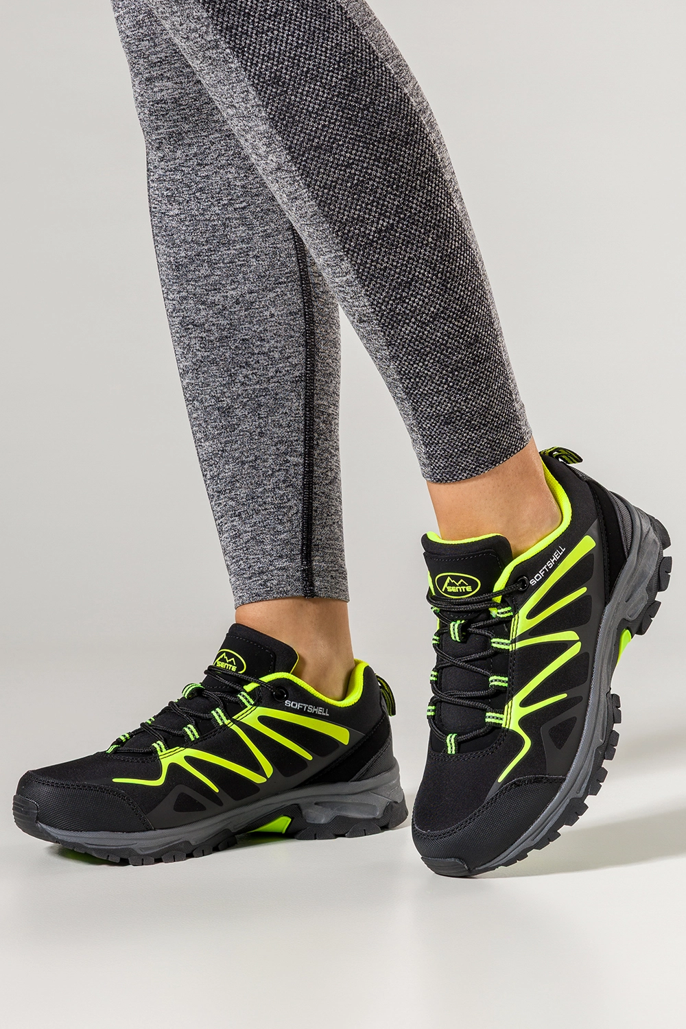 Czarne buty trekkingowe damskie z seledynowymi dodatkami sznurowane softshell Casu B2111-2
