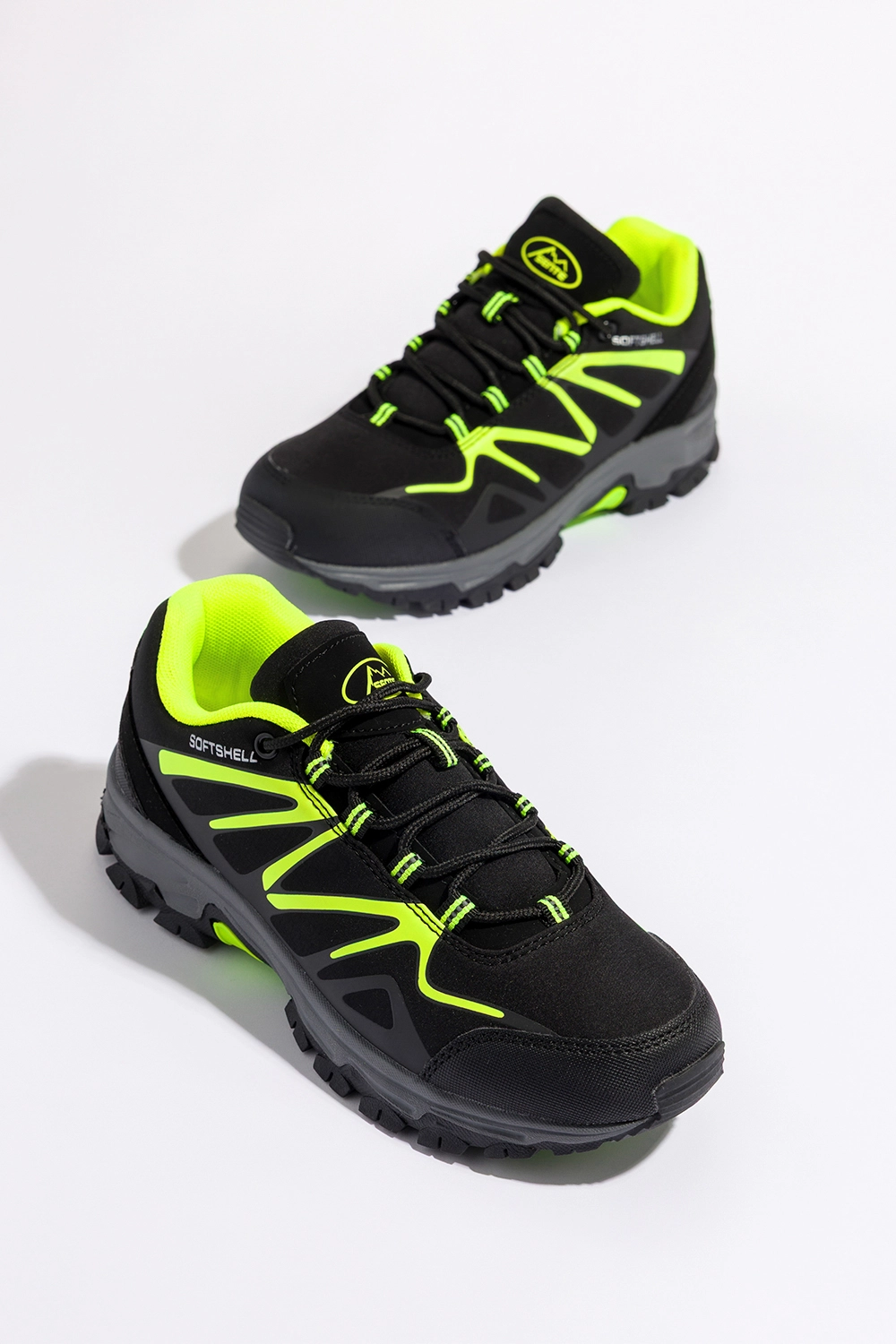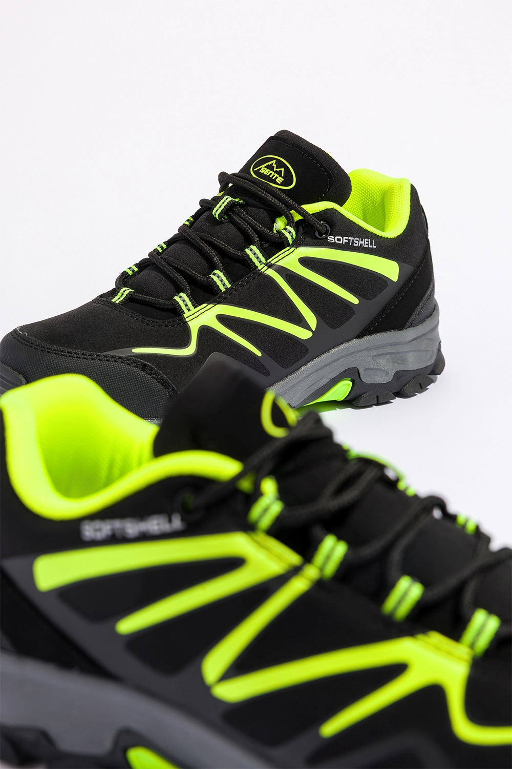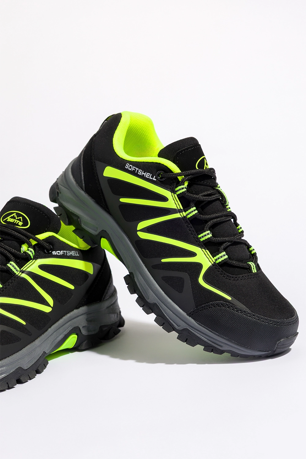 Czarne buty trekkingowe damskie z seledynowymi dodatkami sznurowane softshell Casu B2111-2