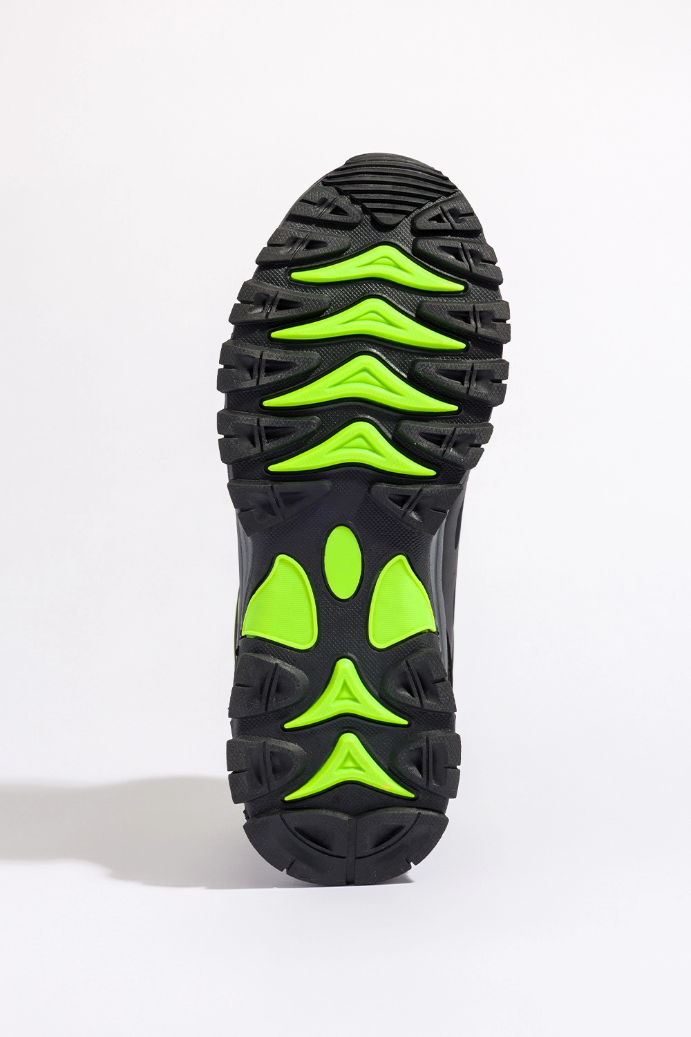 Uniwersalny styl i dopasowanie do różnych stylizacji czynią ten model niezwykle praktycznym wyborem. Klasyczna czerń została przełamana dynamicznymi seledynowymi akcentami, które dodają obuwiu sportowego pazura i świeżości. Sznurowane wiązanie pozwala na idealne dopasowanie do stopy, a zaokrąglony nosek zwiększa swobodę ruchów palców. Te trekkingowe buty damskie świetnie sprawdzą się nie tylko podczas outdoorowych przygód, ale również w codziennych stylizacjach streetwearowych. Można je zestawić zarówno z legginsami, spodniami trekkingowymi, jak i jeansami – zawsze dodadzą stylizacji sportowego charakteru i energii. To idealny wybór dla kobiet, które nie chcą rezygnować z wygody ani z modnego wyglądu.