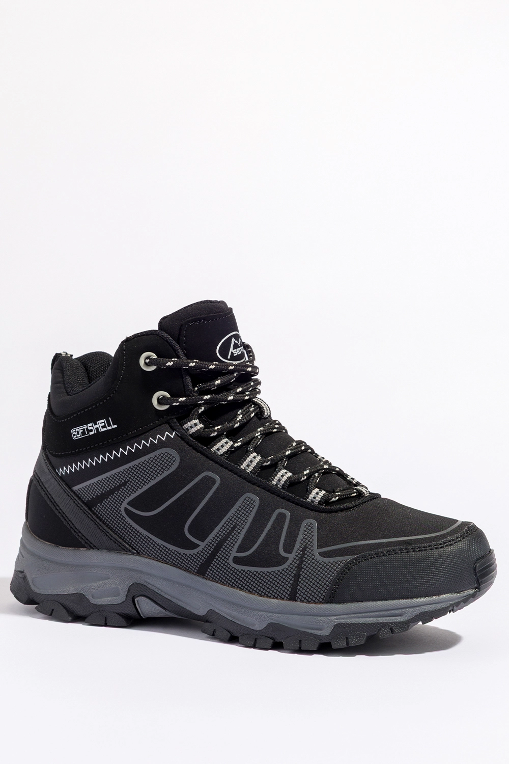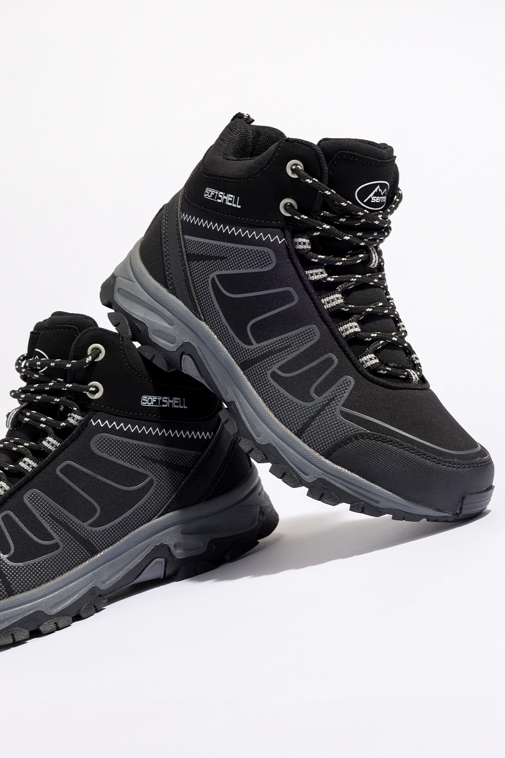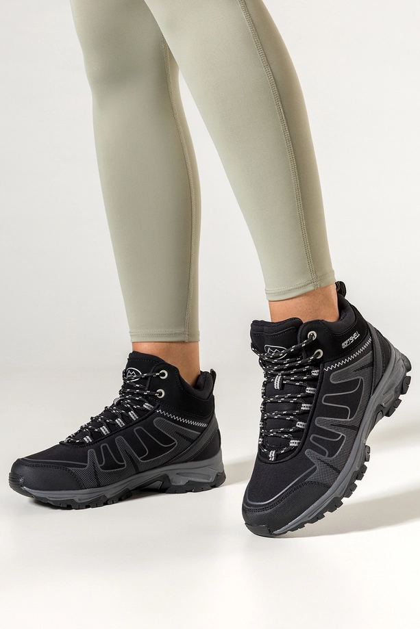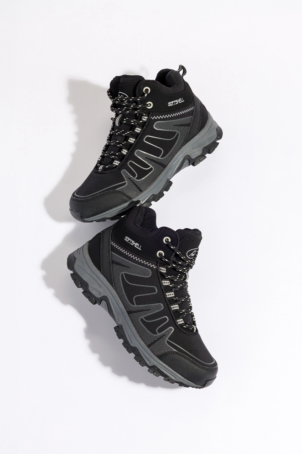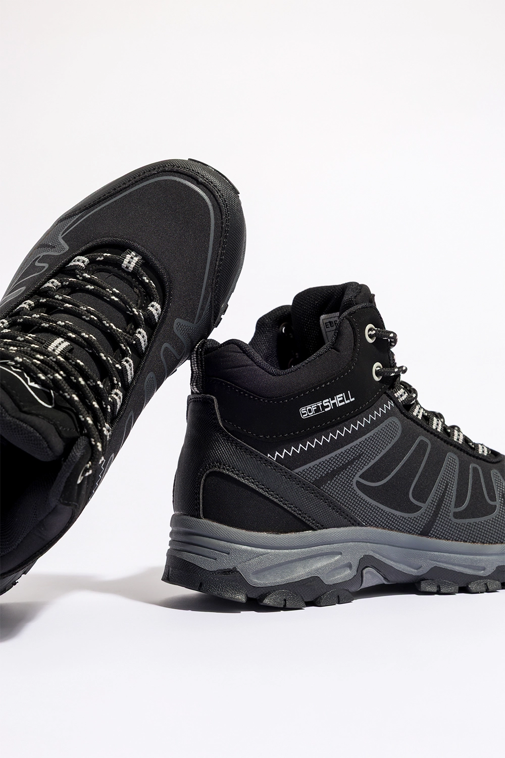 Czarne buty trekkingowe damskie z szarymi dodatkami sznurowane softshell Casu B2112-1
