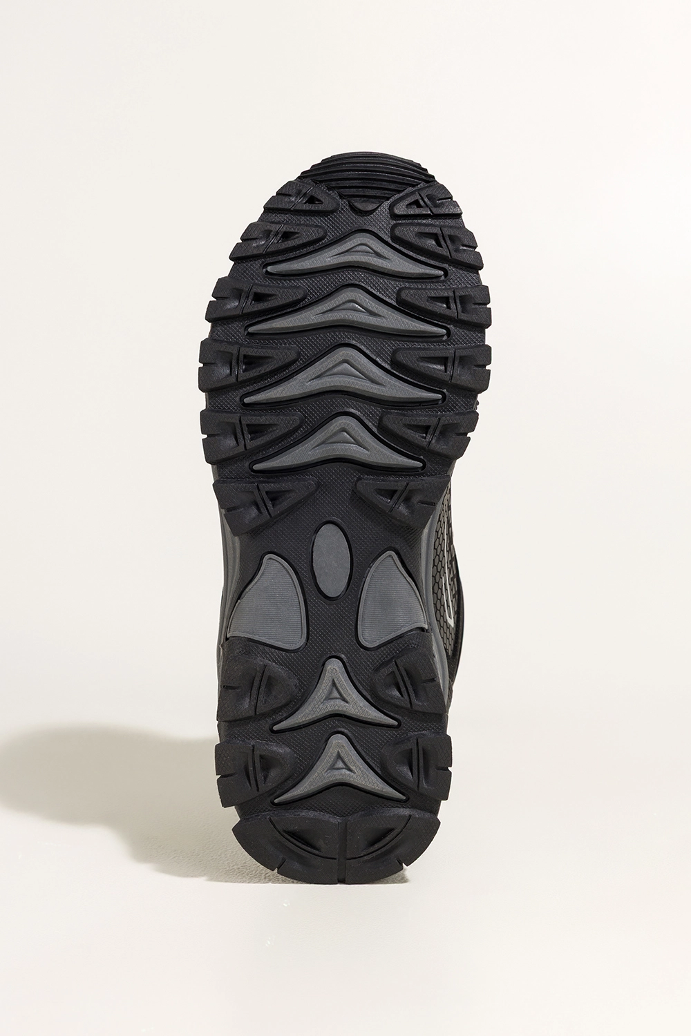 Bieżnikowana podeszwa zapewnia doskonałą przyczepność w zróżnicowanym terenie, a częściowa wodoodporność chroni przed wilgocią, zachowując jednocześnie lekkość obuwia. Szare wstawki nadają całości nowoczesnego, sportowego charakteru, który świetnie sprawdzi się zarówno na górskich szlakach, jak i w miejskich stylizacjach.