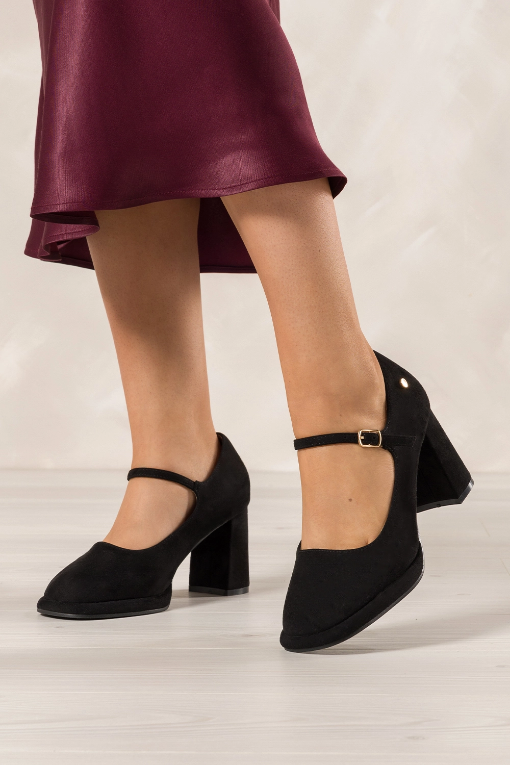Uniwersalny styl i wszechstronność sprawiają, że czółenka Mary Jane pasują do niemal każdej stylizacji. Niska platforma delikatnie unosi sylwetkę, dodając jej smukłości i kobiecej elegancji. Kwadratowy nosek z łagodnie zaokrąglonymi krawędziami łączy w sobie nowoczesny design z ponadczasową klasyką, dzięki czemu buty sprawdzą się zarówno w biurze, jak i na wieczornych wyjściach. Pasek zapinany na złotą klamerkę to nie tylko funkcjonalny element, ale także subtelna ozdoba, która nadaje butom luksusowego charakteru. Ten model idealnie komponuje się z sukienkami, spodniami czy nawet garniturem, oferując nieskończone możliwości stylizacyjne.