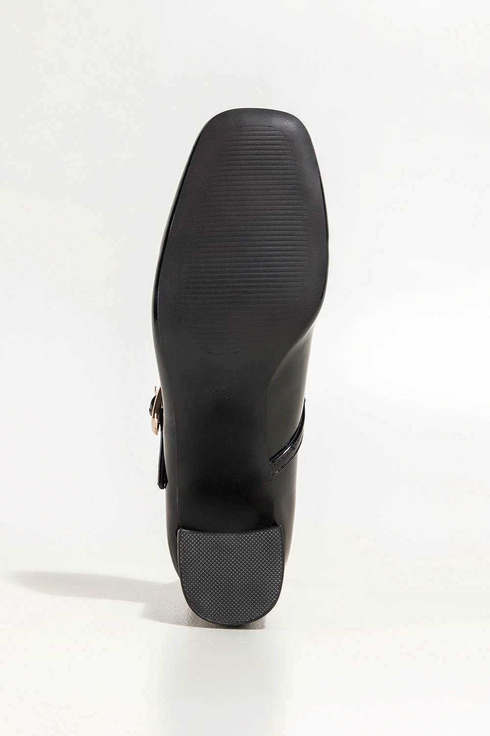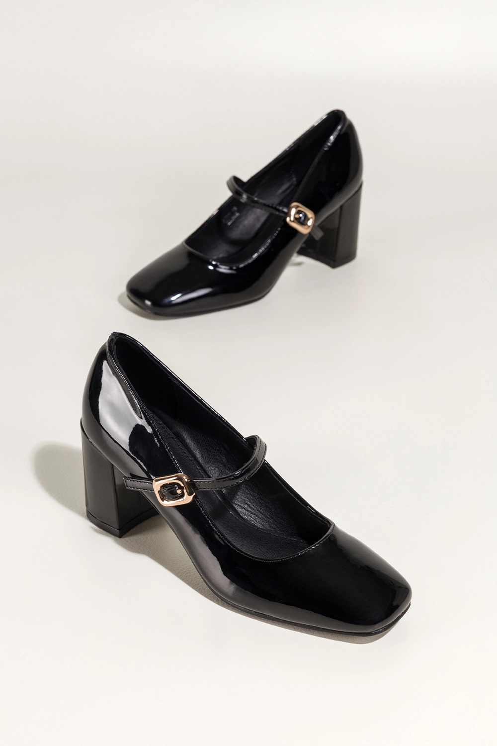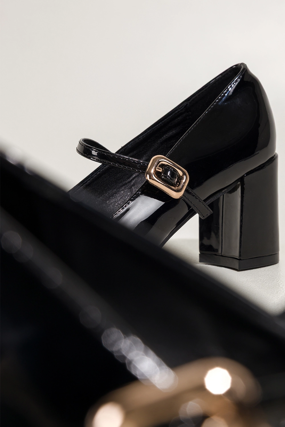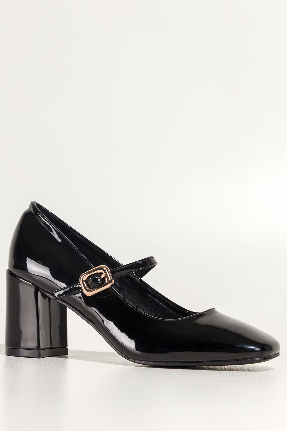 • stylowy fason Mary Jane z paskiem zapinanym na złotą klamerkę