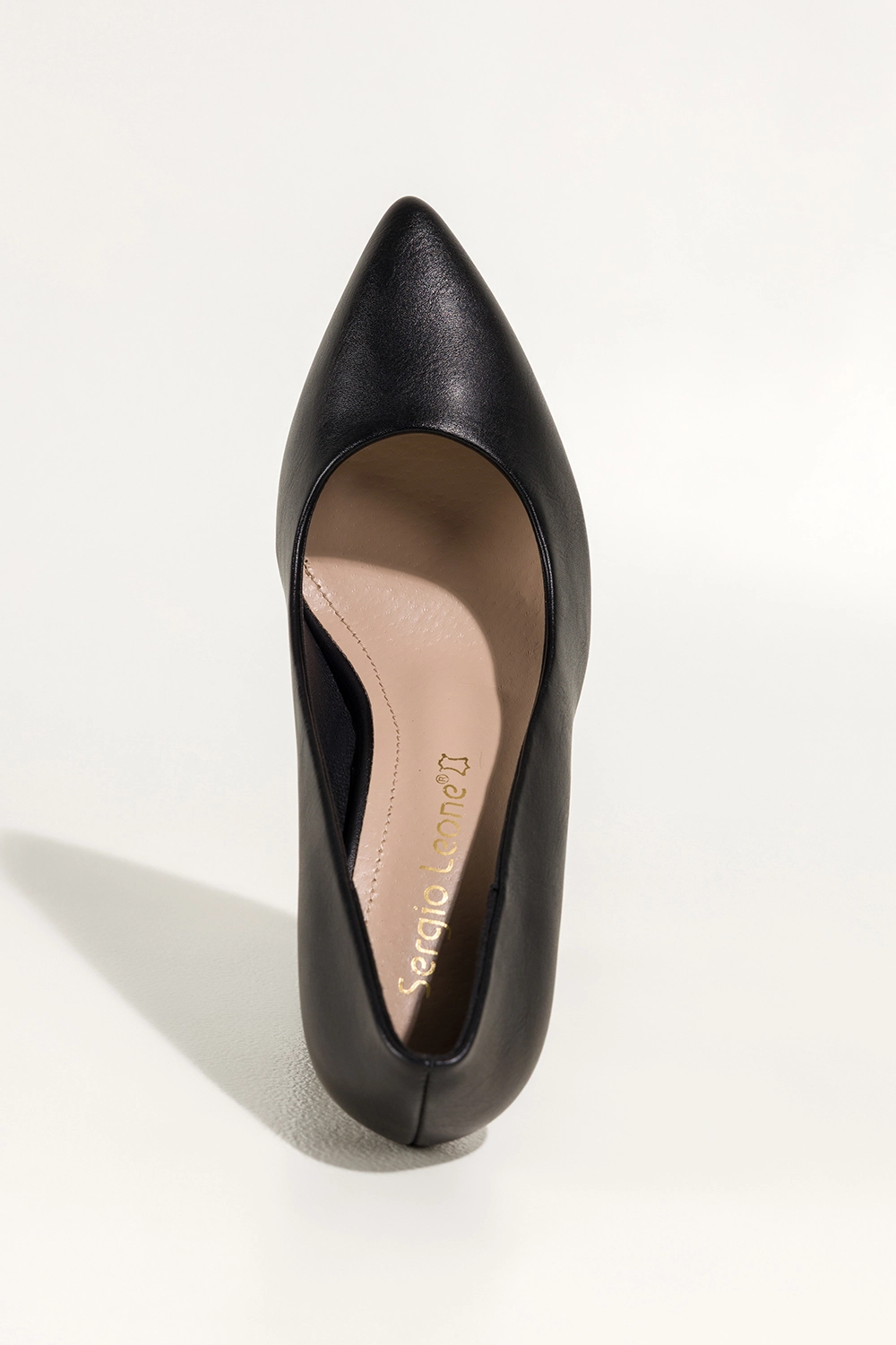 Czarne czółenka damskie Sergio Leone na słupku skórzana wkładka model 8553. Wykonane z wysokogatunkowej skóry ekologicznej prezentują się niezwykle elegancko, jednocześnie gwarantując trwałość. Miękka, skórzana wkładka dopasowuje się do stopy, zapewniając wygodę nawet po wielu godzinach noszenia. Smukły słupek i subtelnie szpiczasty nosek optycznie wydłużają nogi, dodając sylwetce lekkości i gracji.