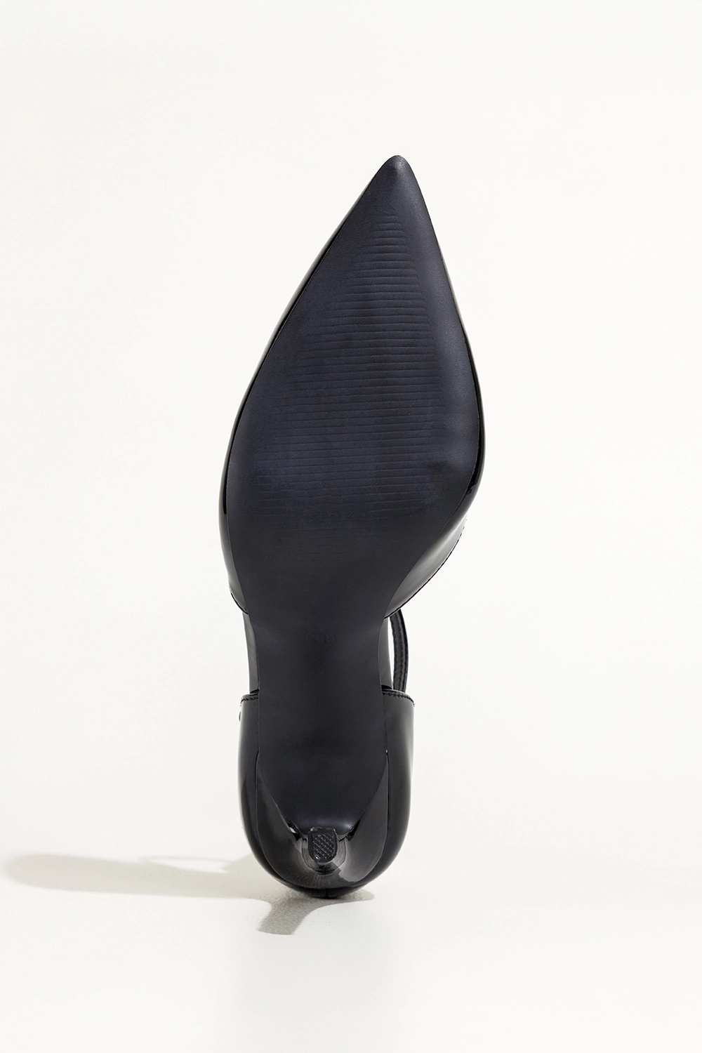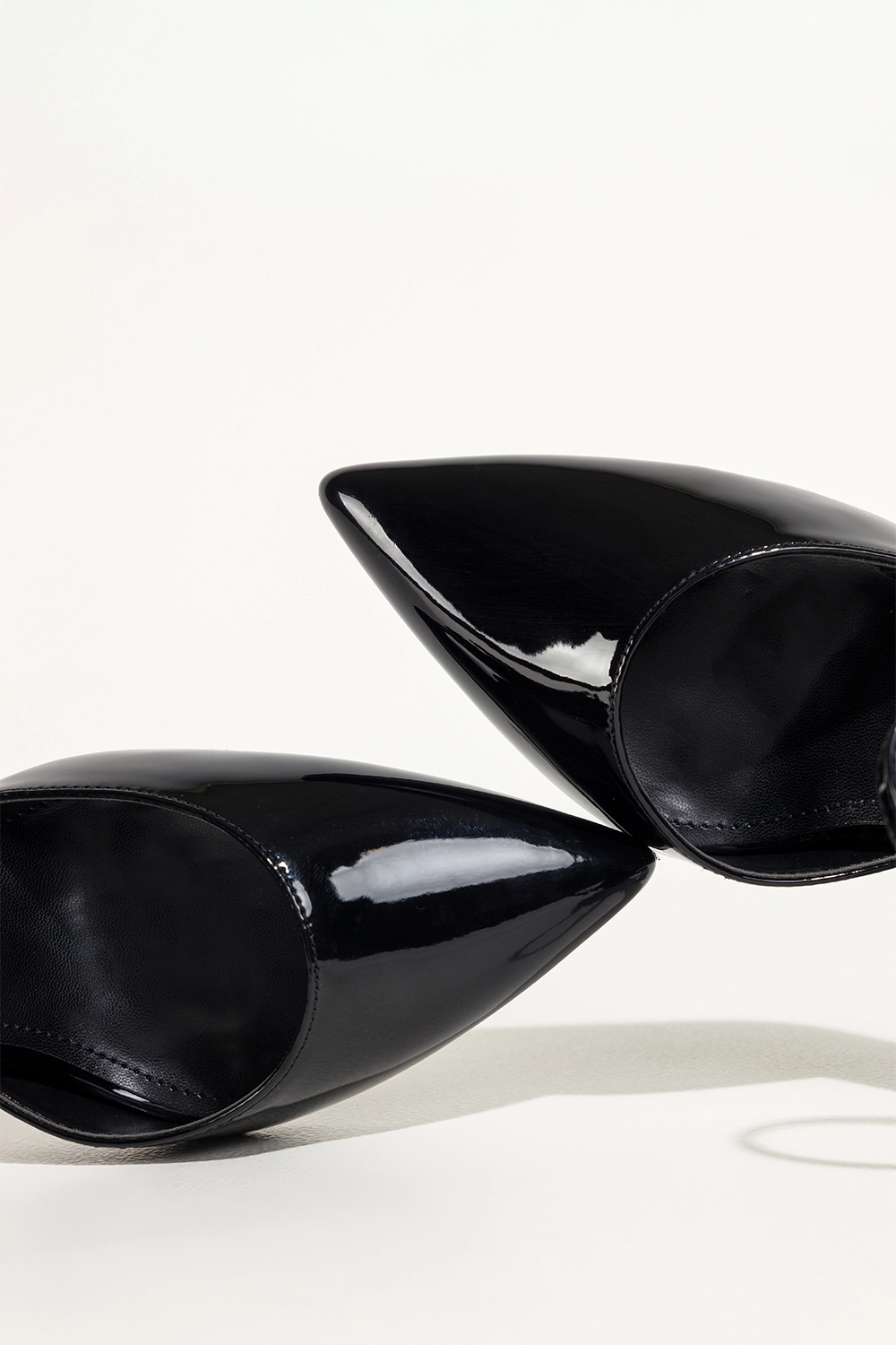 Czarne czółenka damskie szpilki lakierowane Carla 013 to model, który od pierwszego spojrzenia przyciąga uwagę elegancką linią i głęboką czernią o lustrzanym połysku. Lakierowana faktura podkreśla wyrafinowany charakter, szpiczasty nosek optycznie wysmukla stopę, a wycięta cholewka nadaje całości lekkości i kobiecej finezji. Smukła szpilka pokryta lakierowaną skórą ekologiczną dodaje sylwetce gracji, tworząc spójną, dopracowaną formę.