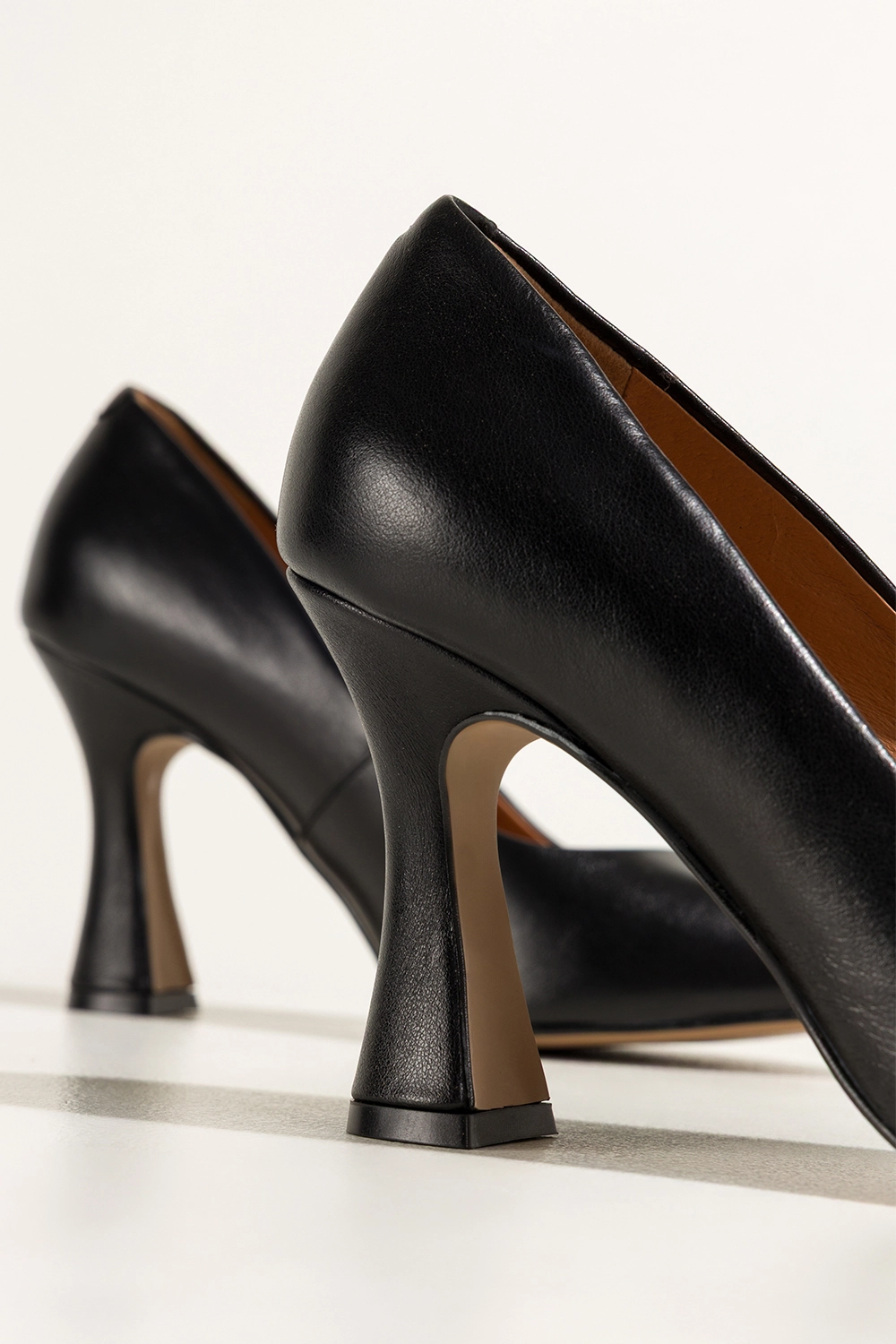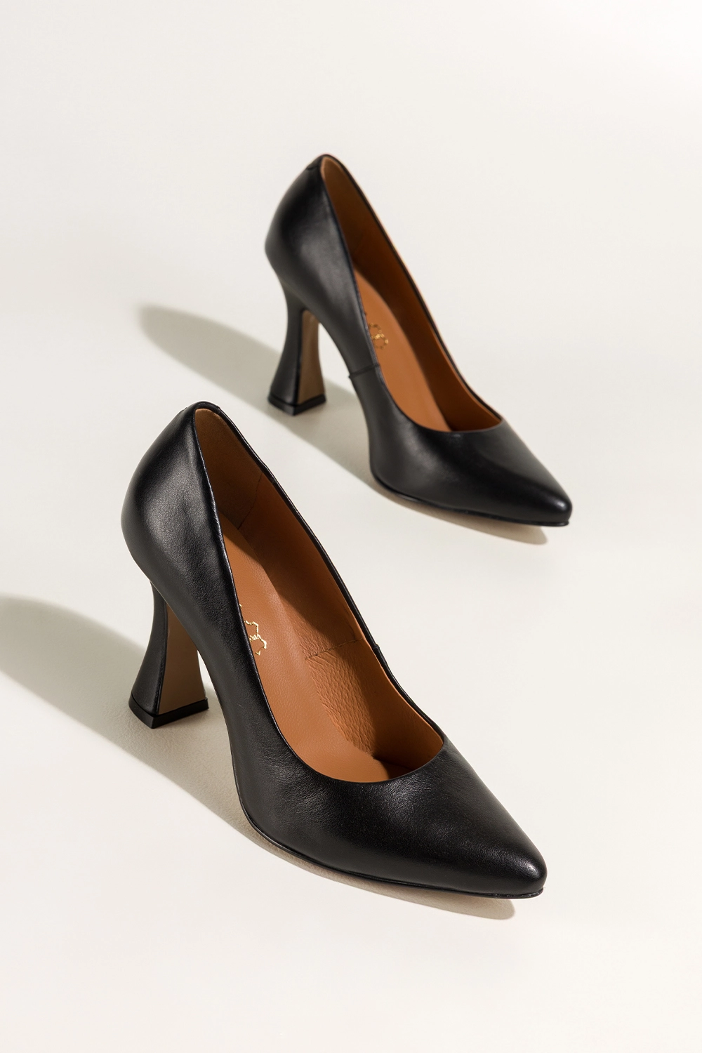 Szpiczasty nosek nadaje sylwetce lekkości, a obcas w formie klepsydry, pokryty skórą, stanowi unikalny akcent modowy. To obuwie idealne do eleganckich stylizacji biznesowych, wieczorowych kreacji oraz codziennych zestawów, gdzie liczy się kobiecy szyk. Czarne czółenka łatwo dopasujesz do sukienki, garnituru czy jeansów, tworząc look, który wyróżni Cię z tłumu.