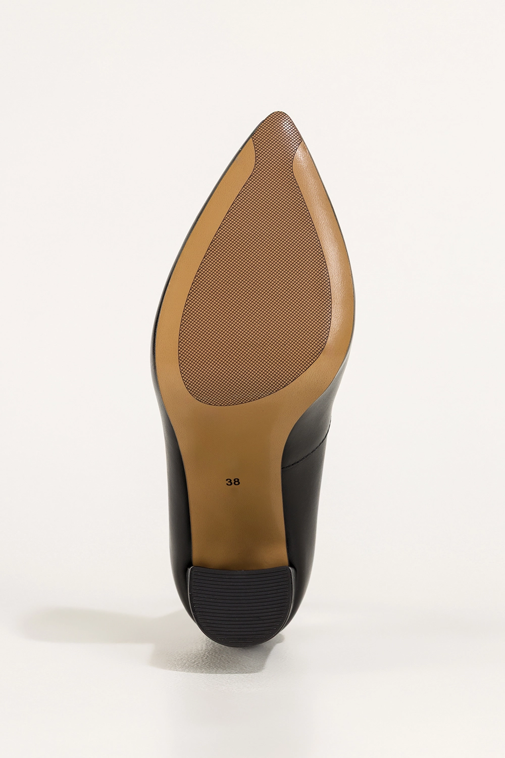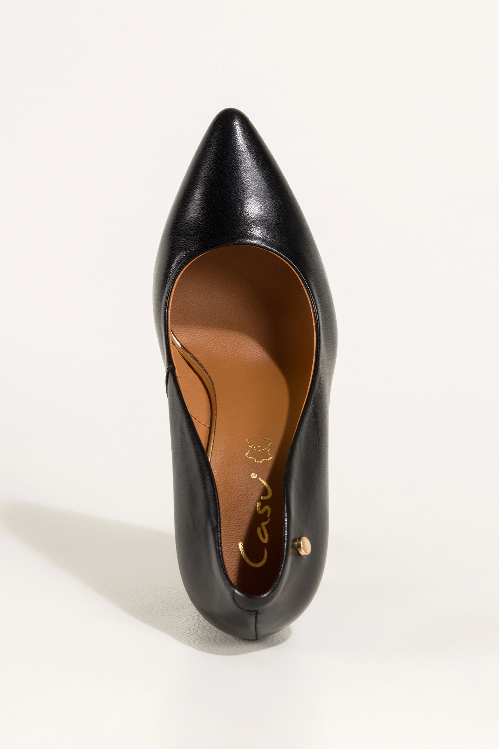 Czarne czółenka skórzane damskie obcas słupek złote oczko na cholewce PRODUKT POLSKI Casu model 7375-899 synonim klasy i niezawodności. Wykonane z naturalnej, miękkiej skóry najwyższej jakości, gwarantują trwałość, komfort i elegancję każdego dnia. Miękka wkładka również ze skóry naturalnej zapewnia idealne dopasowanie do stopy i wygodę nawet podczas wielogodzinnego użytkowania. To produkt polski, który łączy rzemiosło z nowoczesnym wzornictwem.