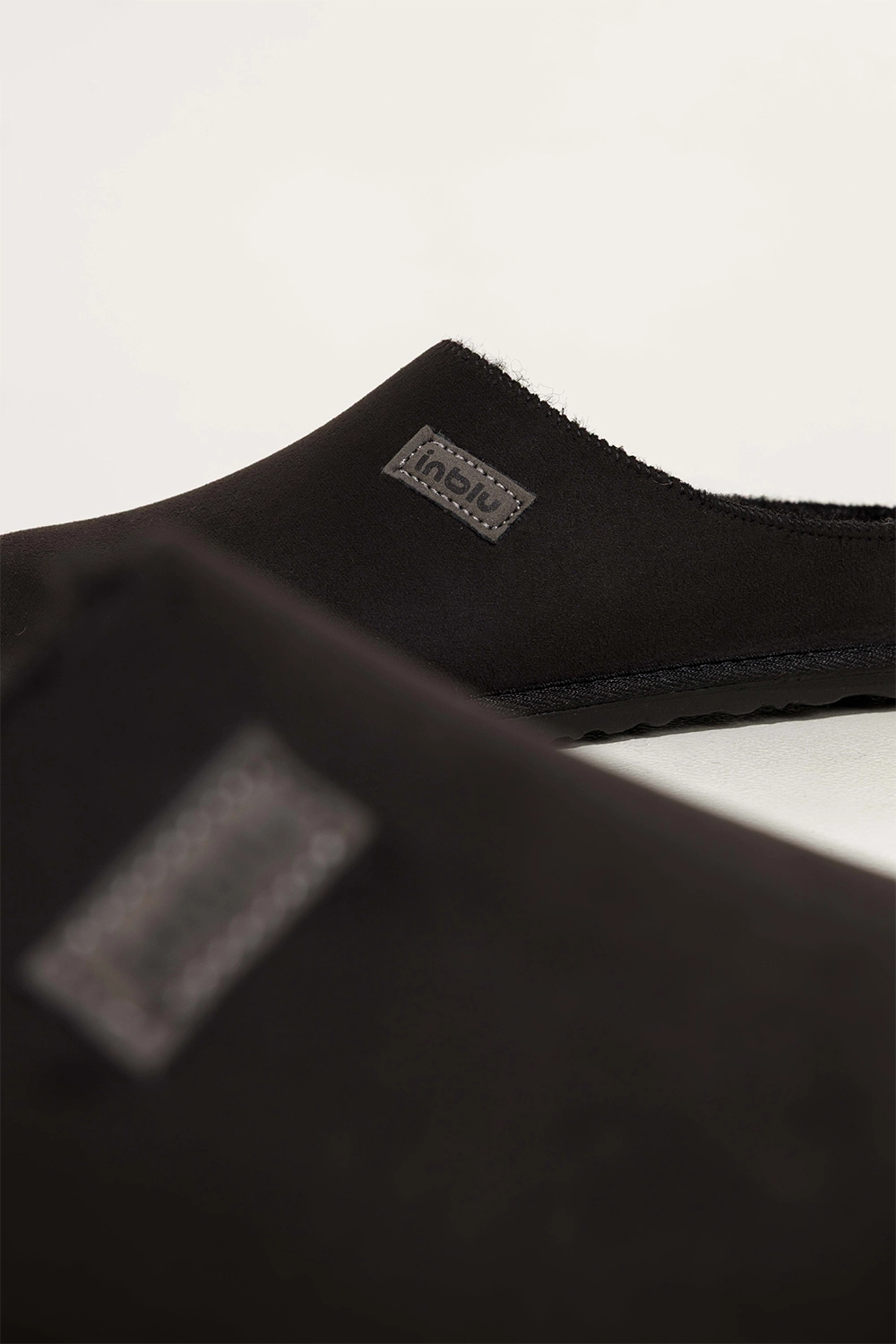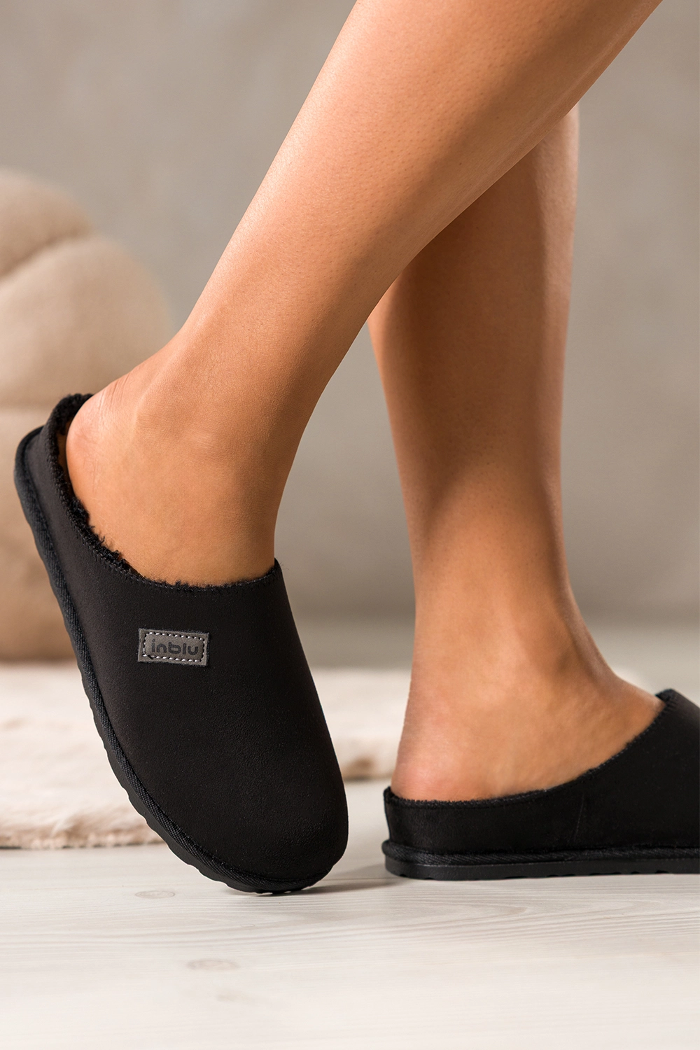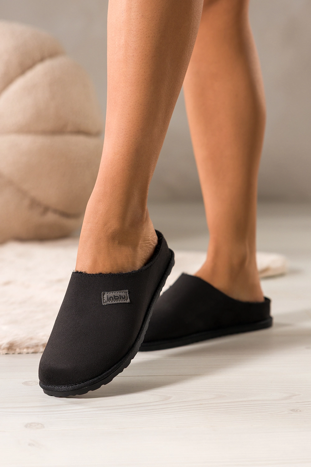 Czarne kapcie damskie Inblu obuwie domowe z wyjmowaną skórzaną wkładką XH999954