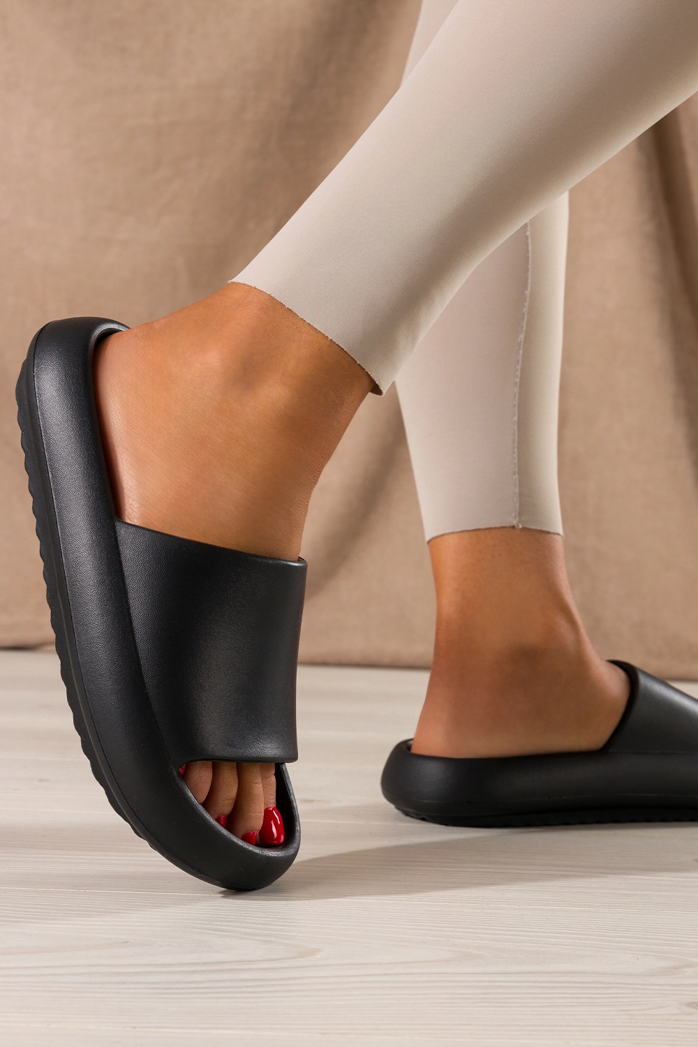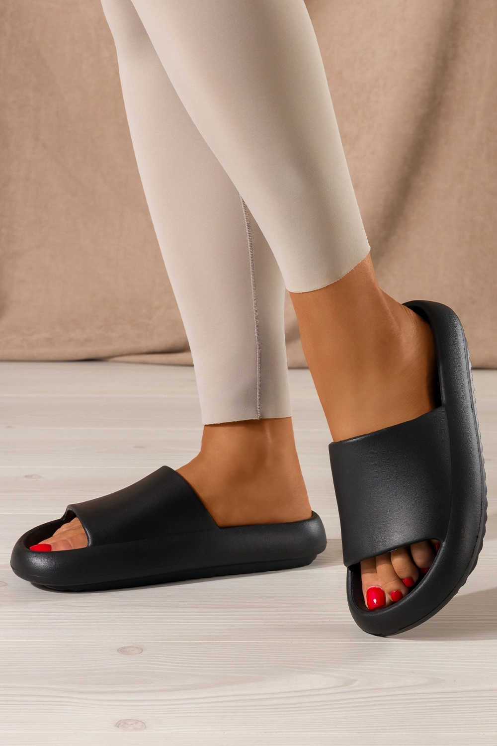Stylowe i uniwersalne – pasują do każdej okazji. Czarne klapki świetnie wpisują się w aktualne trendy mody, dzięki czemu są doskonałym uzupełnieniem codziennych outfitów. Można je nosić z lekkimi sukienkami, szortami, dżinsami, a nawet lnianymi garniturami – zawsze wyglądają świetnie. Dzięki szerokiemu paskowi na cholewce klapki zyskują stabilność, ale również ciekawy wizualnie akcent. Kobiety, które stawiają na minimalizm, pokochają ich prostotę, natomiast fanki streetwearu i wygodnych rozwiązań docenią ich sportowy charakter. To obuwie, które łączy modę, funkcjonalność i ponadczasowy styl.