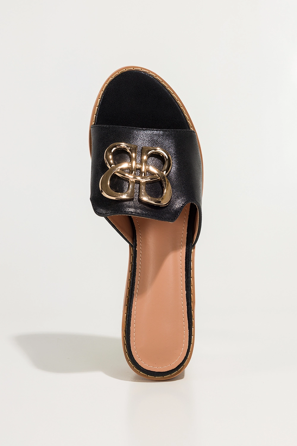 Stylizacje z charakterem – modny detal, który wyróżnia. Klapki wyróżniają się złotą ozdobą umieszczoną na cholewce – to detal, który dodaje szyku i sprawia, że nawet najprostszy outfit nabiera klasy. Połącz je z letnią sukienką, lnianymi spodniami czy elegancką spódnicą – ich uniwersalna czerń pasuje do każdej kolorystyki, a ponadczasowy design wpisuje się zarówno w styl casual, jak i bardziej formalne okazje. To obuwie, które podkreśli Twoją kobiecość i doda pewności siebie. Złota ozdoba na czarnym tle działa niczym biżuteria – przyciąga wzrok i nadaje stylizacji luksusowego charakteru. Niezależnie od tego, czy wybierasz się na randkę, garden party czy eleganckie przyjęcie, te klapki będą niezastąpionym dodatkiem.