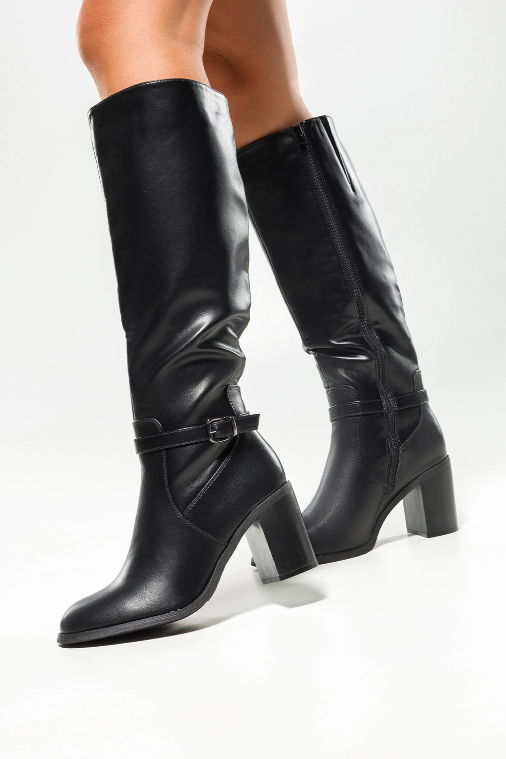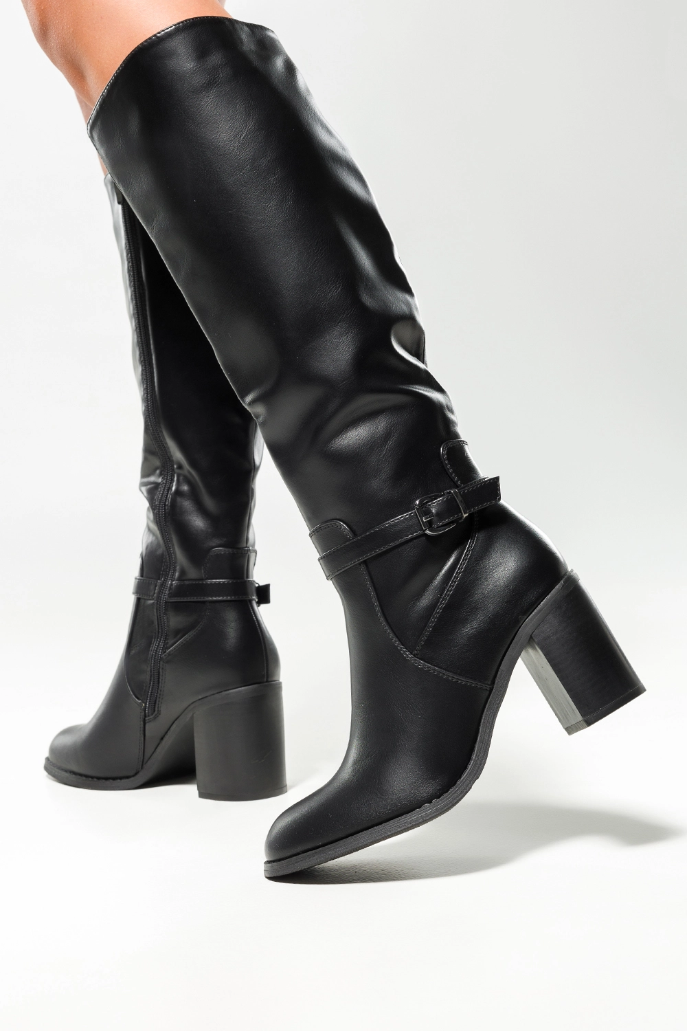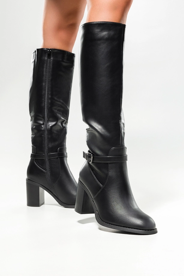 Czarne kozaki damskie przed kolano obcas słupek w cholewce guma pasek z klamerką model F192 to idealne połączenie elegancji i funkcjonalnosci. Wykonane z wysokogatunkowej skóry ekologicznej, wyróżniają się nie tylko doskonałą jakością, ale także ponadczasowym designem. Obcas typu słupek o wysokości 8 cm zapewnia stabilność i wygodę podczas codziennego użytkowania, a detale, takie jak pasek z klamerką i gumowe wstawki w cholewce, dodają charakteru każdej stylizacji. To idealny wybór dla kobiet, które cenią sobie zarówno modę, jak i funkcjonalność.