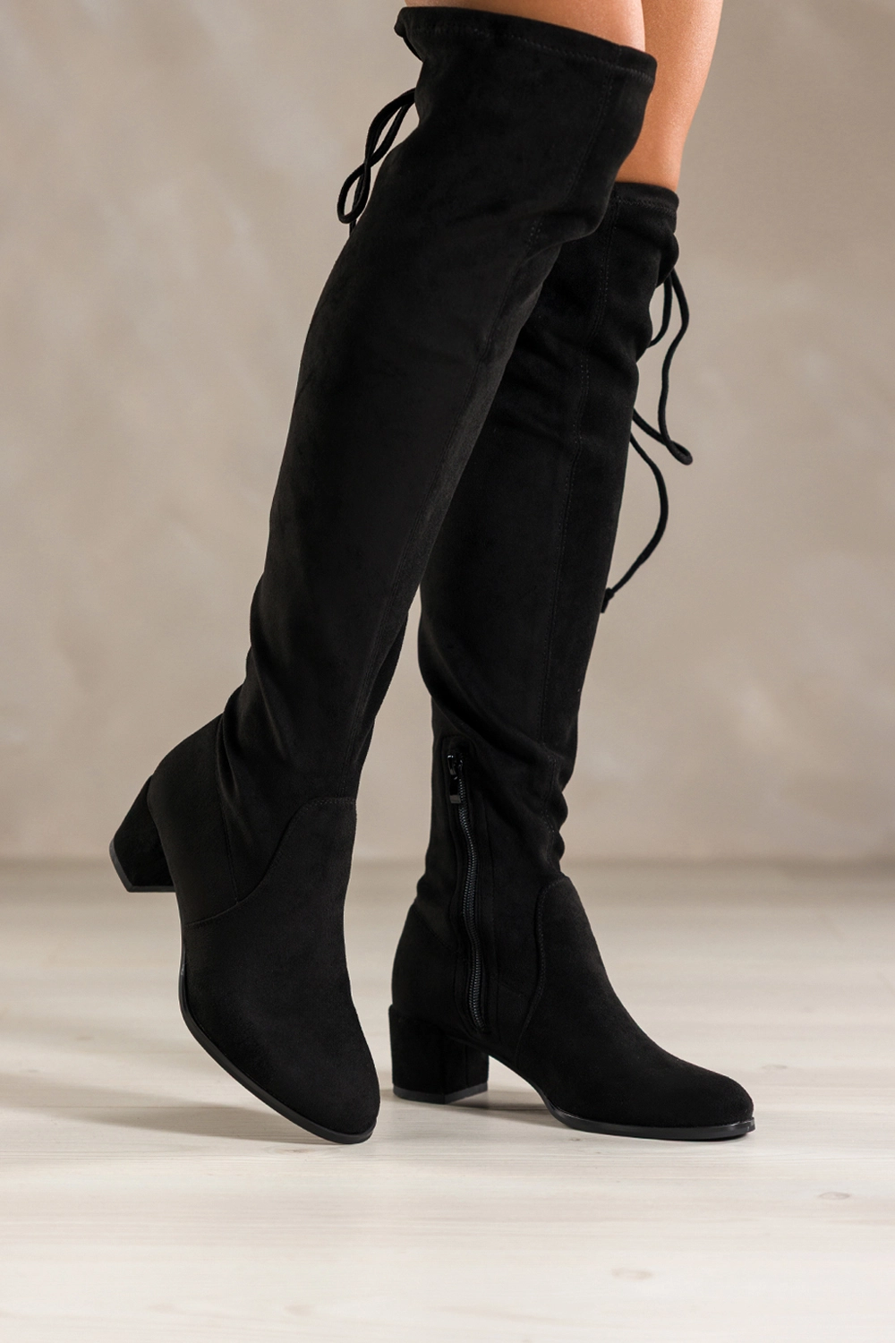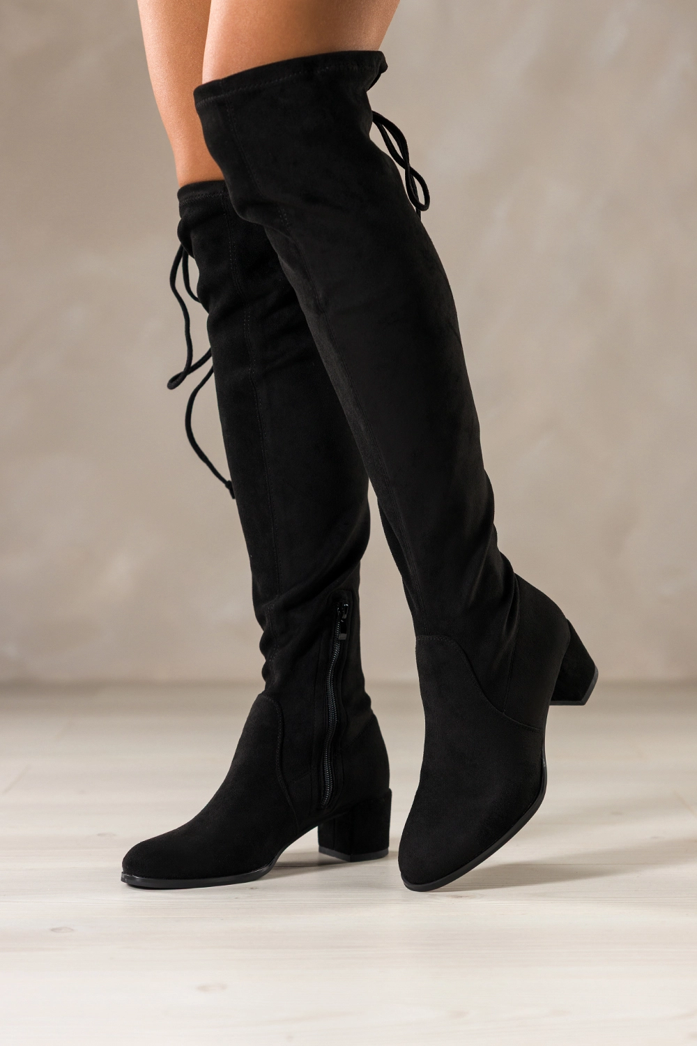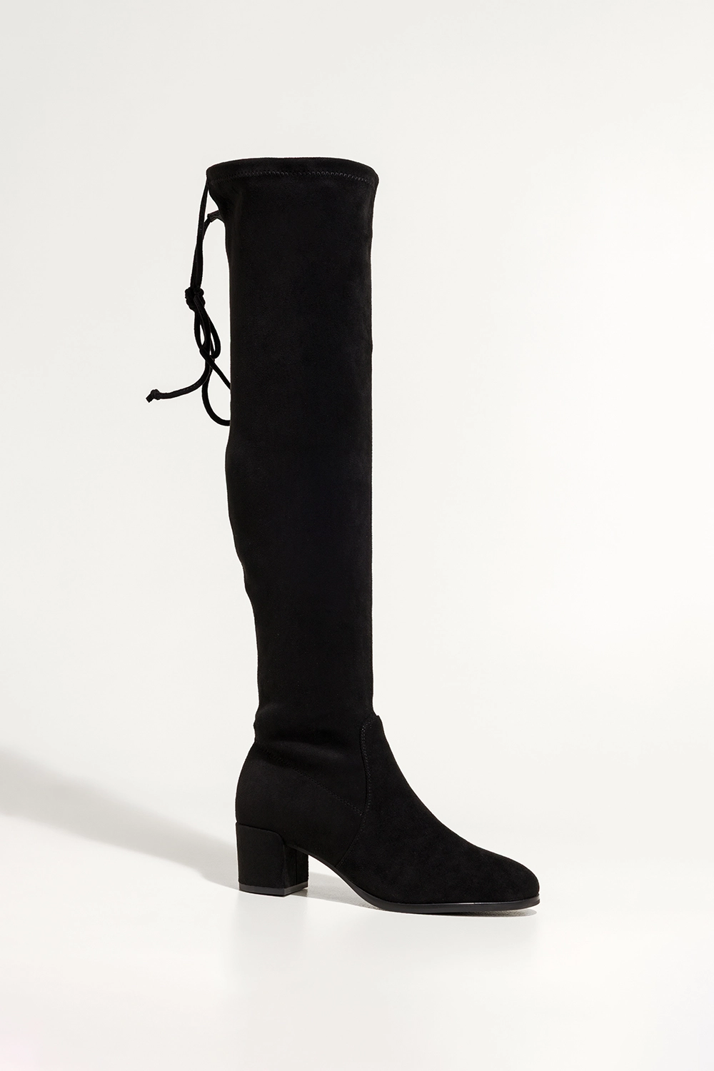 • Elastyczna cholewka za kolano z ozdobnym wiązaniem