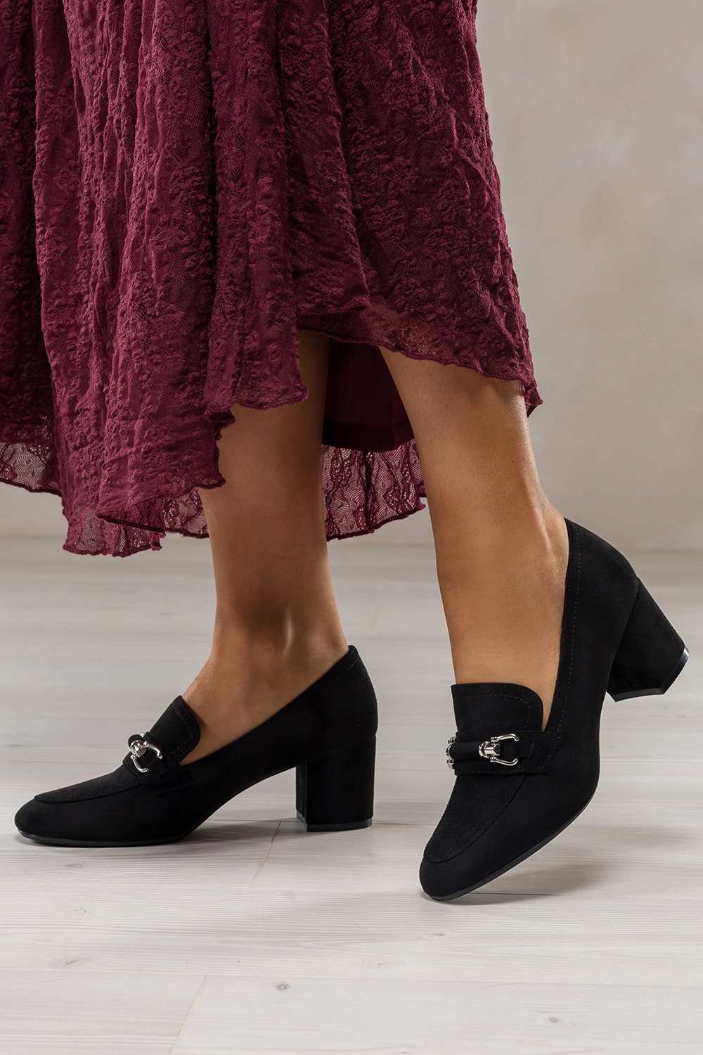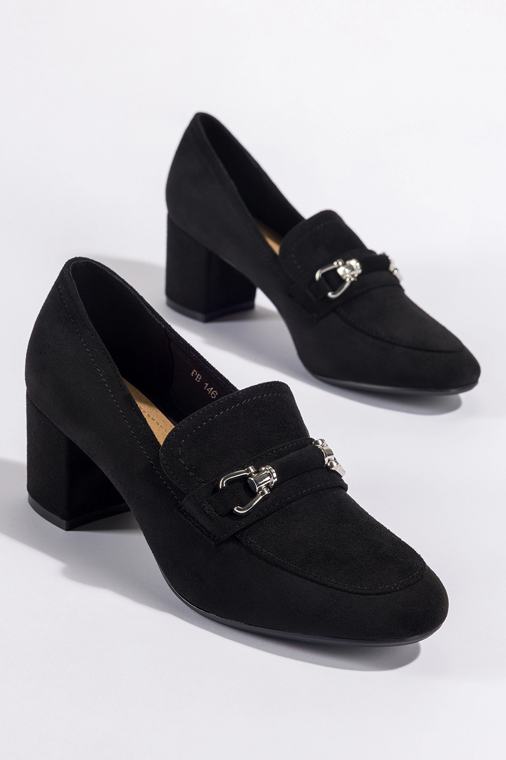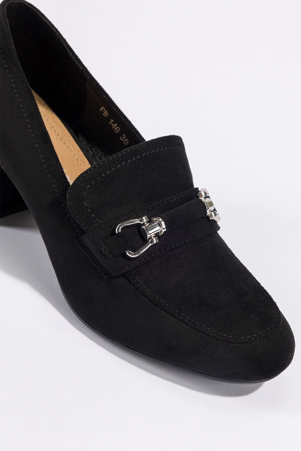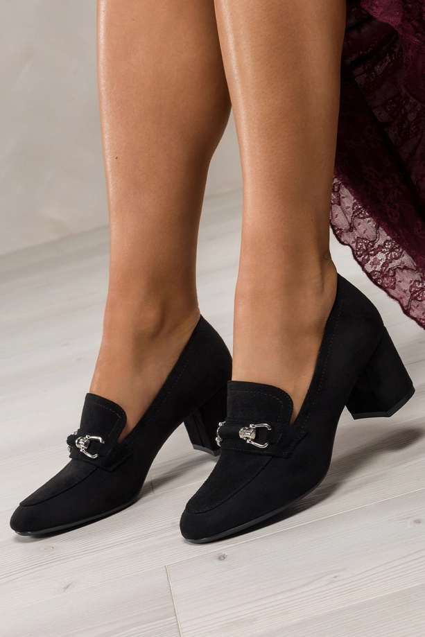 Wyjątkowy styl i łatwość dopasowania do różnych stylizacji czynią te mokasyny niezastąpionym elementem kobiecej garderoby. Czerń zamszowej cholewki to kolor uniwersalny, który sprawdzi się zarówno w klasycznych, jak i nowoczesnych outfitach. Srebrna sprzączka dodaje butom wyrafinowanego charakteru, czyniąc z nich idealne dopełnienie eleganckich stylizacji, takich jak garnitury, cygaretki czy sukienki midi. Z drugiej strony, te czarne mokasyny na słupku równie dobrze prezentują się w codziennym wydaniu – z jeansami, dzianinowymi spódnicami czy oversize’owymi swetrami. Ich ponadczasowy design sprawia, że możesz je nosić przez wiele sezonów, bez obawy o wyjście z mody.