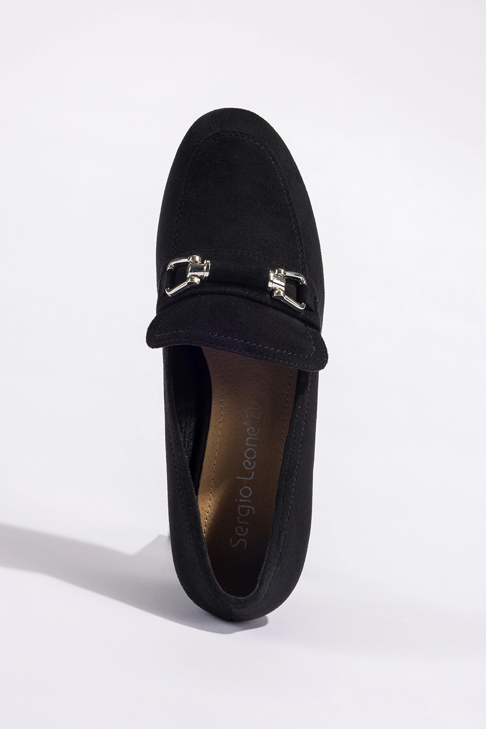 Czarne mokasyny damskie Sergio Leone ze sprzączką na szerokim słupku skórzana wkładka model PB146-CA to esencja nowoczesnej elegancji połączonej z wygodą, która idealnie wpisuje się w potrzeby współczesnych kobiet. Ten ponadczasowy model przyciąga wzrok dopracowaną formą i subtelnym blaskiem srebrnej sprzączki, stanowiącej ozdobę cholewki. Mokasyny zachwycają klasyczną linią, podkreśloną zaokrąglonym noskiem oraz zamszową strukturą materiału, która dodaje im miękkości i szlachetnego wyglądu. To idealna propozycja dla kobiet, które pragną połączyć elegancki styl z codziennym komfortem. Dzięki starannie dobranym materiałom i uniwersalnemu krojowi, te stylowe mokasyny damskie stanowią doskonały wybór na każdą okazję – od biura, przez spotkania towarzyskie, po bardziej formalne wydarzenia.