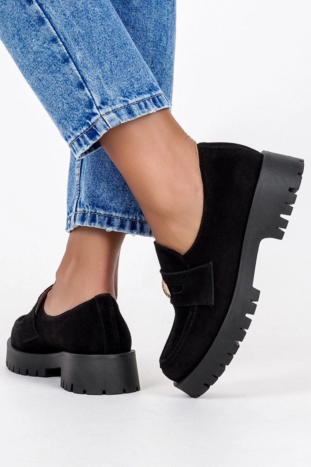 Uniwersalny styl na każdą okazjęCzarne mokasyny ze złotą ozdobą to doskonały wybór zarówno do casualowych, jak i bardziej eleganckich stylizacji. Ich klasyczny, ponadczasowy design pasuje zarówno do jeansów i swetra, jak i do zwiewnej sukienki czy formalnych spodni. Złota ozdoba umieszczona na przodzie buta dodaje im odrobiny luksusu, sprawiając, że buty te stają się prawdziwą ozdobą każdej stylizacji. Dzięki platformie zapewniają subtelne uniesienie, co optycznie wydłuża nogi, a jednocześnie nie odbiera komfortu użytkowania. To idealny wybór na każdą porę roku – od wiosennych spacerów po jesienne wyjścia na miasto.