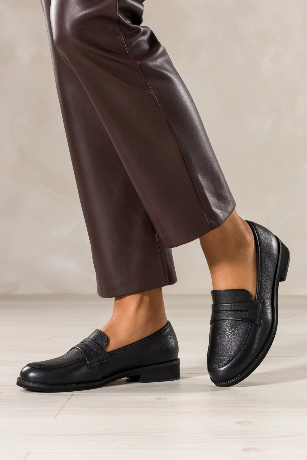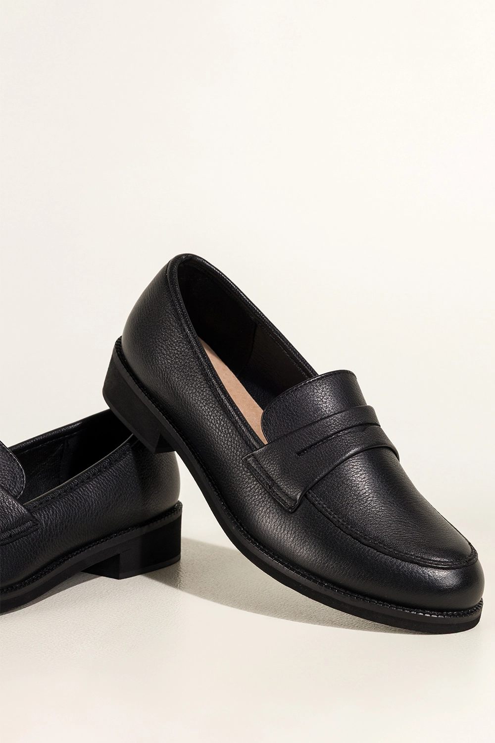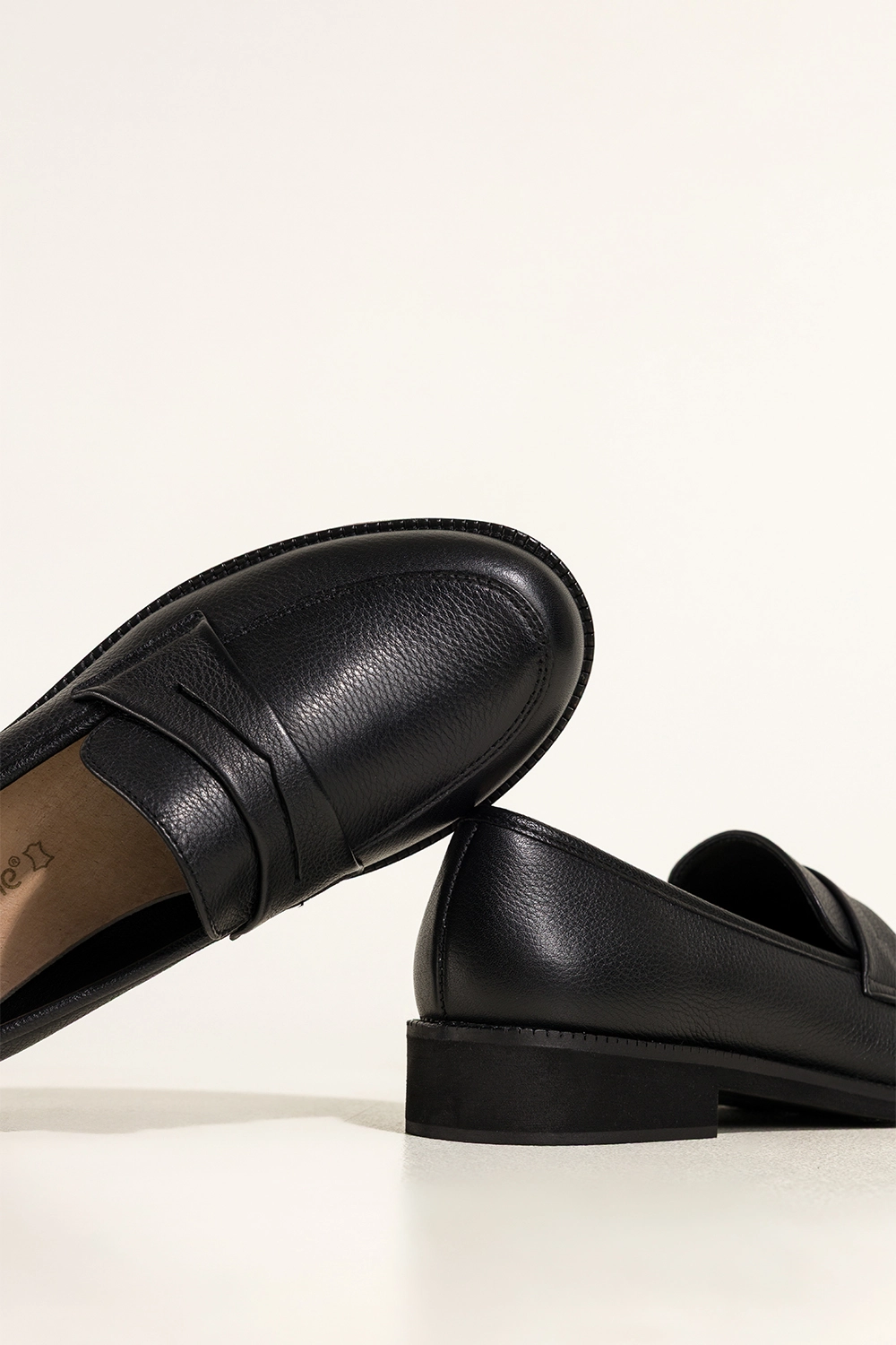Mokasyny łączą klasyczną formę z nowoczesnym wykończeniem. Ozdobny pasek na cholewce dodaje całości szykownego charakteru, a zaokrąglony nosek i niska, stabilna podeszwa podkreślają subtelny, kobiecy styl. Czarne mokasyny idealnie komponują się zarówno z biurowymi stylizacjami, jak i codziennymi zestawami. To model, który podkreśli charakter każdej stylizacji, od eleganckich sukienek po jeansy i marynarki.