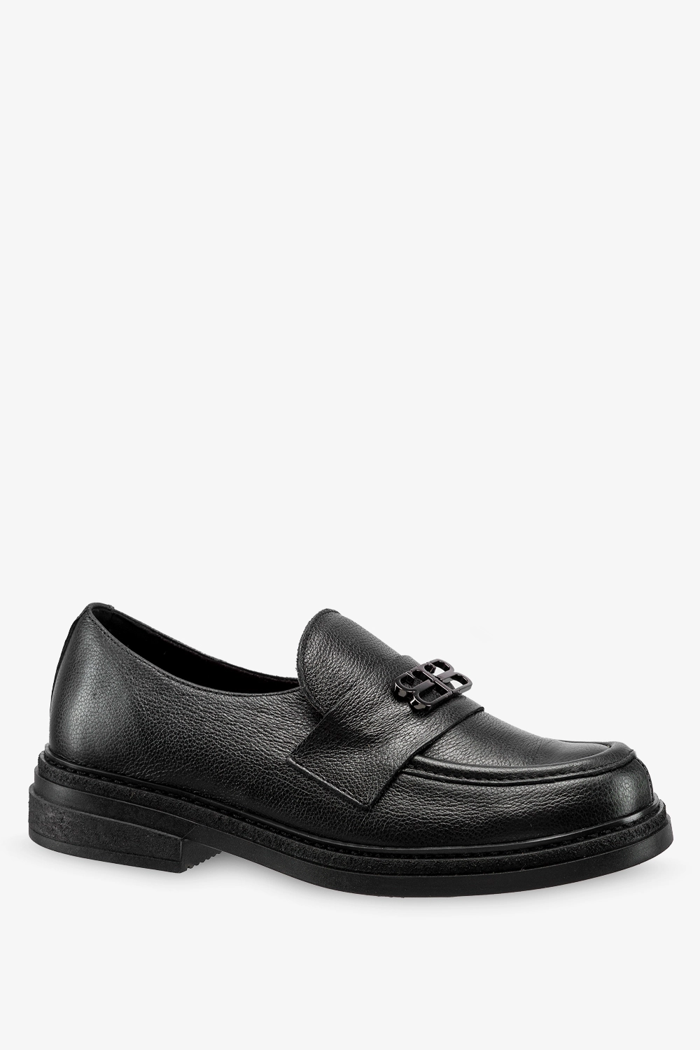 Czarne mokasyny skórzane damskie z ozodbą PRODUKT POLSKI Casu 20174