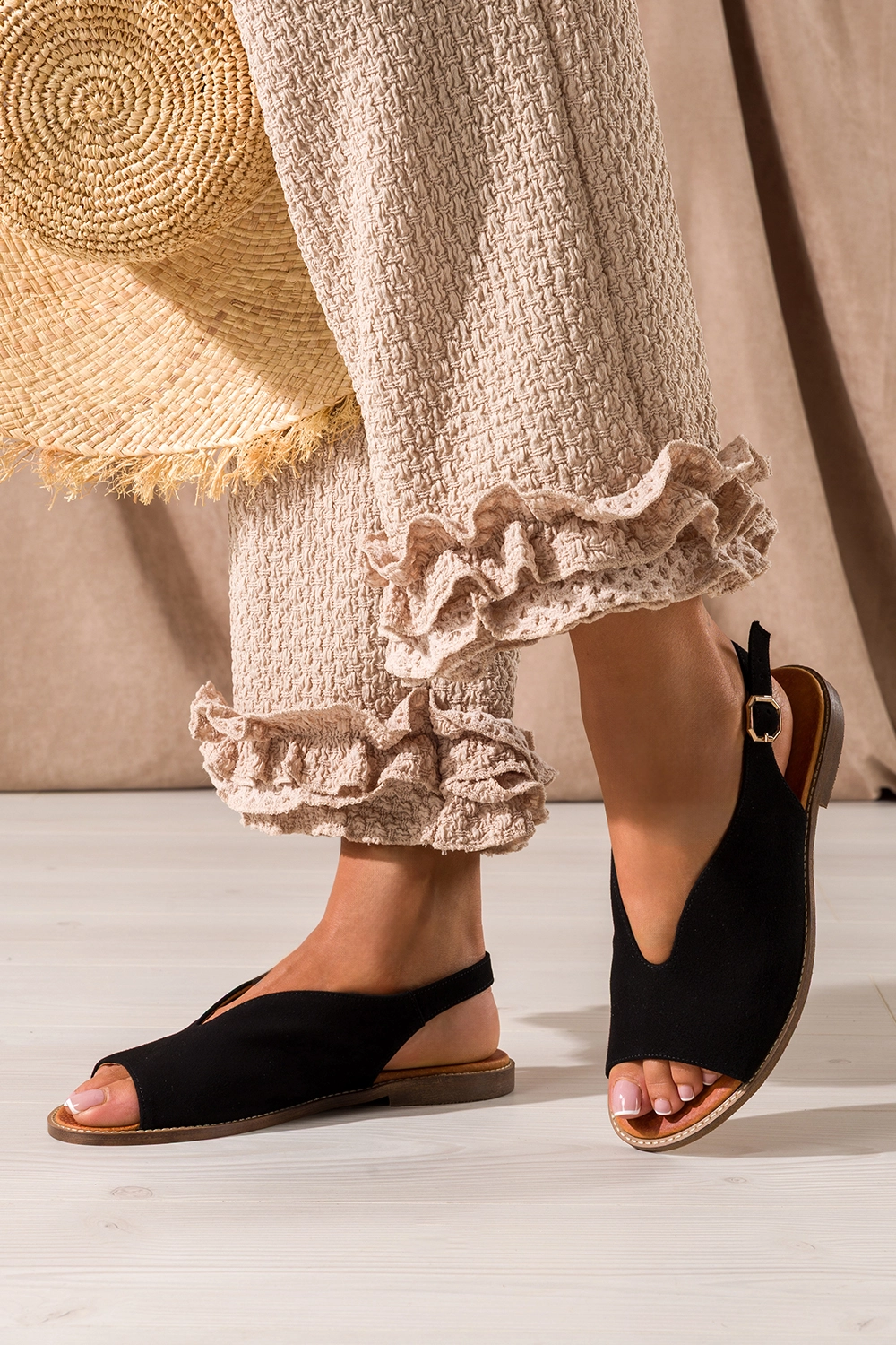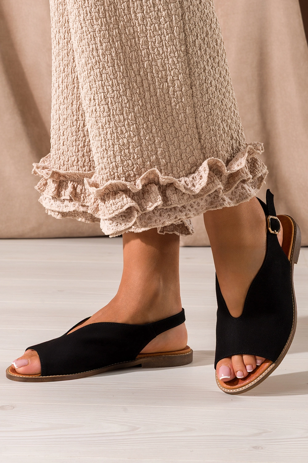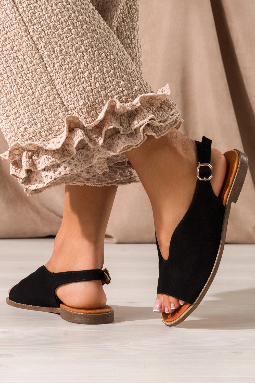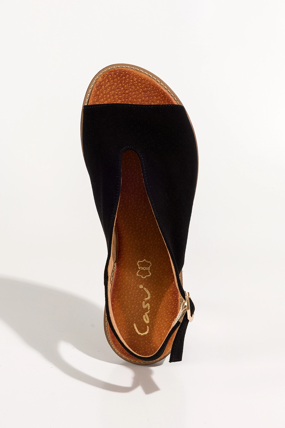 Czarne sandały skórzane damskie płaskie z wycięciem PRODUKT POLSKI Casu model 3220-X to synonim klasy, komfortu i ponadczasowego stylu. To wyjątkowe obuwie, które łączy w sobie luksusowy wygląd z funkcjonalnością, stając się nieodłącznym elementem letnich stylizacji każdej kobiety ceniącej jakość i elegancję. Wykonane z najwyższej jakości skóry zamszowej, te sandały są nie tylko piękne, ale również niezwykle trwałe. Starannie zaprojektowana, miękka skórzana wkładka gwarantuje wygodę nawet podczas długiego dnia, a płaska podeszwa zapewnia stabilność i lekkość kroku. Dzięki ponadczasowemu, głębokiemu odcieniowi czerni, te sandały doskonale uzupełnią każdą stylizację – od casualowej po bardziej formalną.