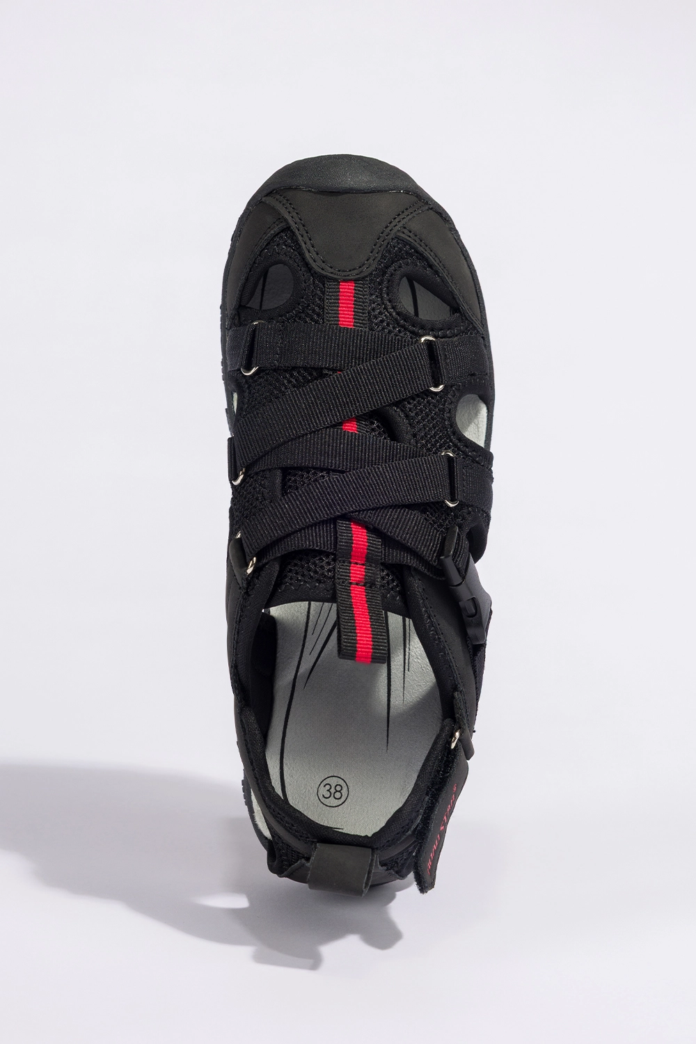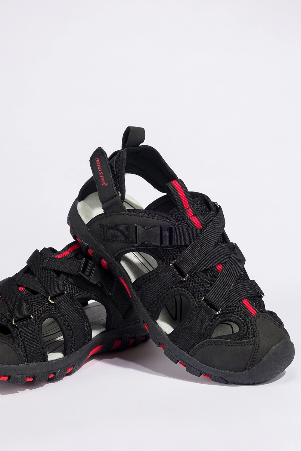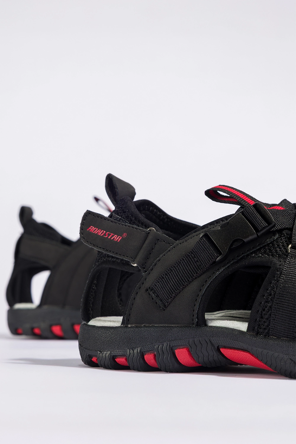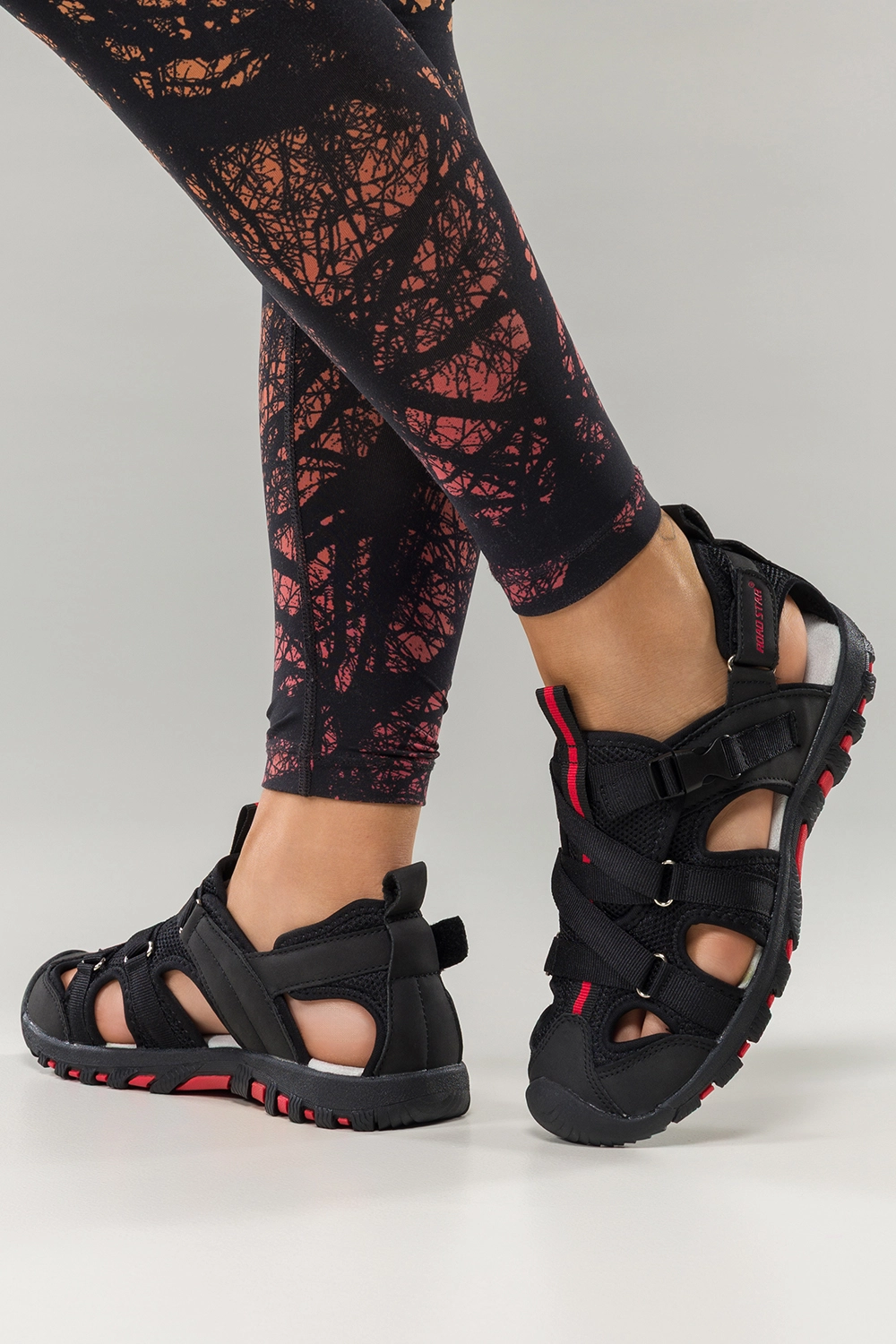 Czarne sandały trekkingowe damskie na rzep z zakrytą piętą czerwone wstawki Casu 8209-3W