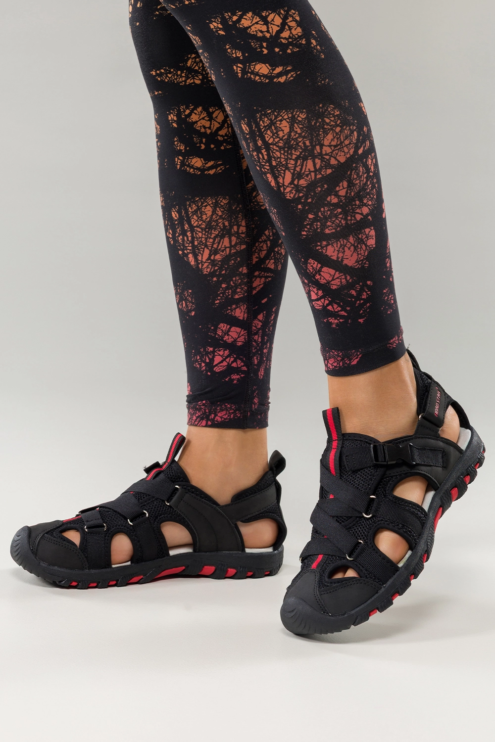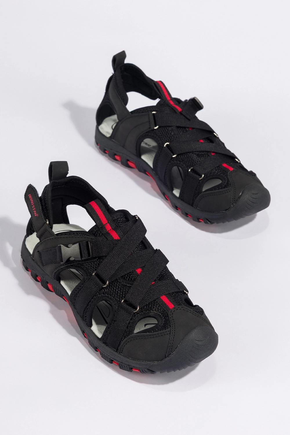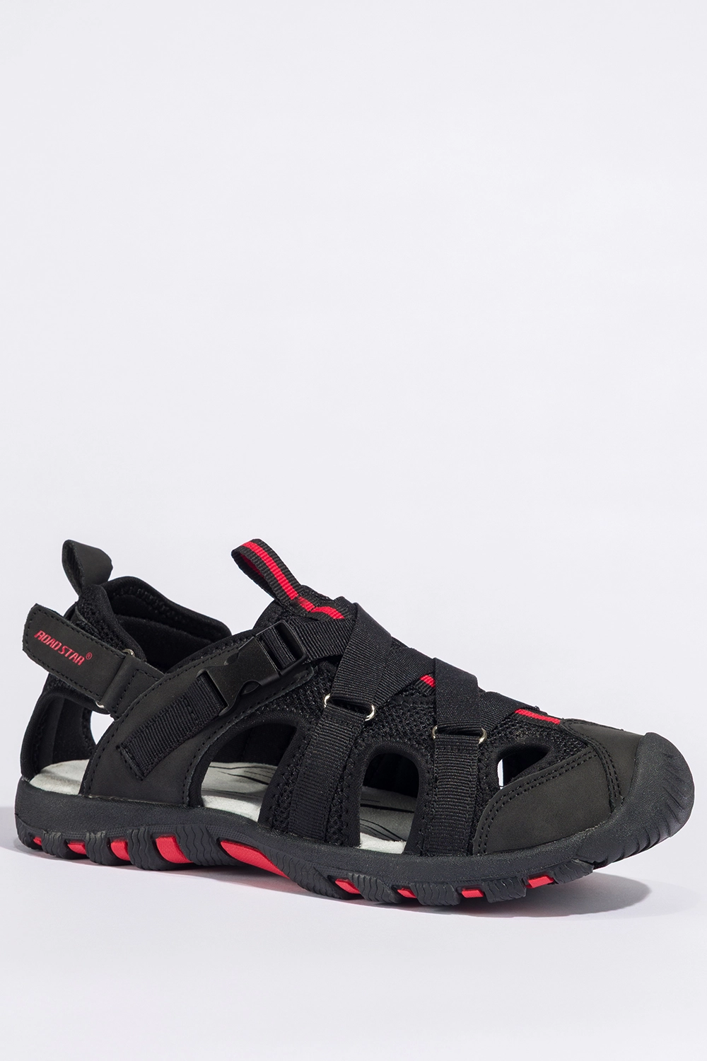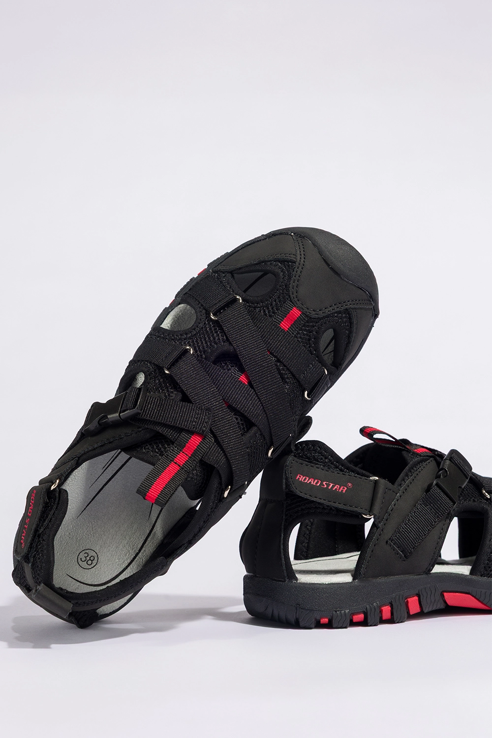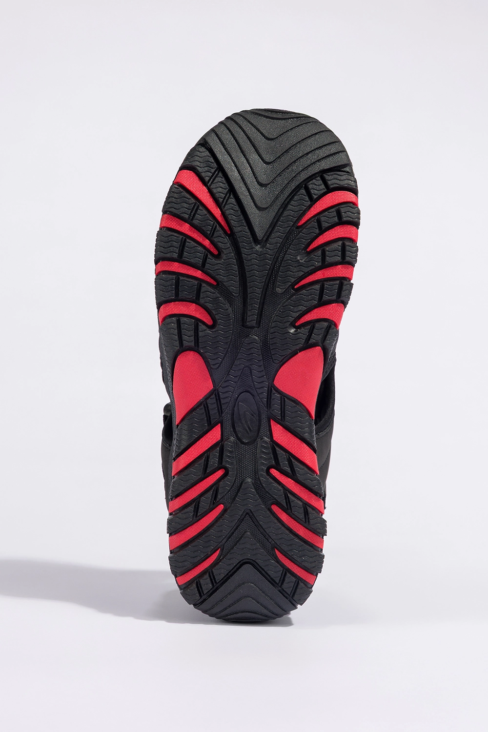 Czarne sandały trekkingowe damskie na rzep z zakrytą piętą czerwone wstawki Casu 8209-3W