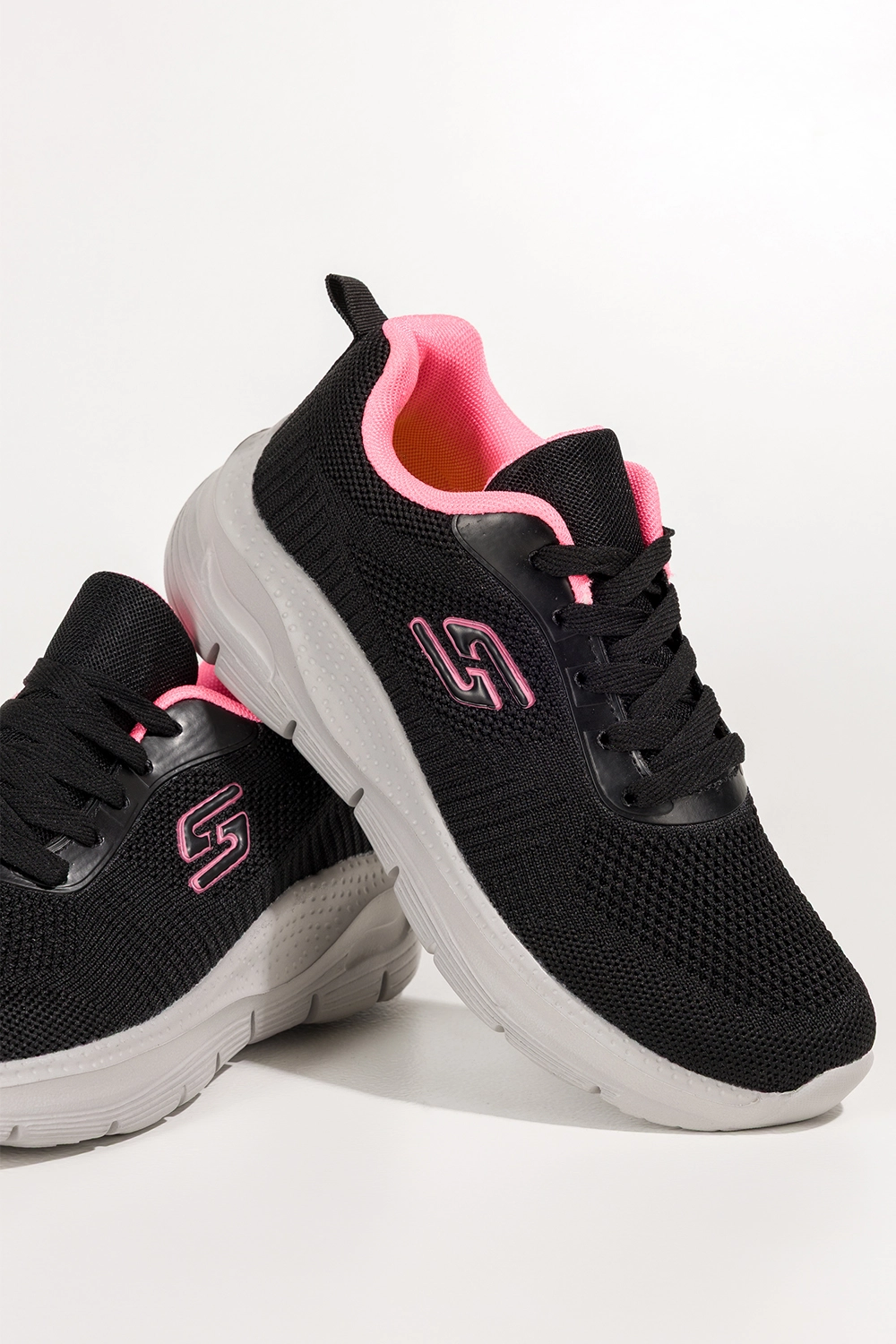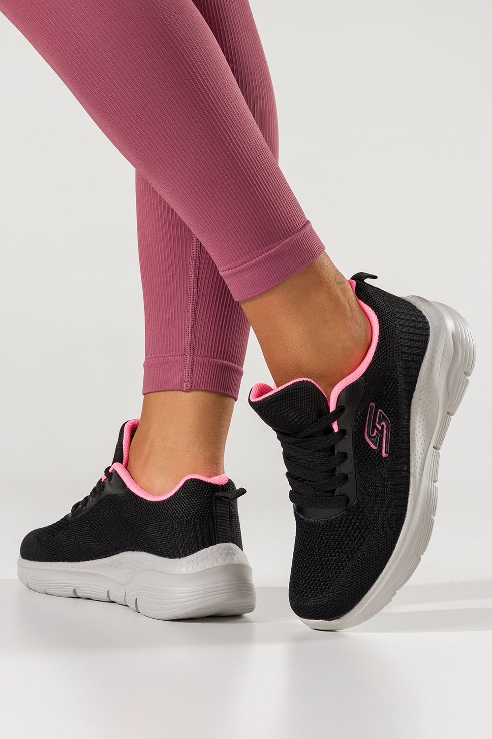 Uniwersalność i modny styl w jednym – to największy atut tego modelu. Czarna baza sprawia, że buty są ponadczasowe i pasują niemal do wszystkiego, podczas gdy różowe wstawki nadają im subtelnej kobiecości i świeżości. Dzięki temu świetnie sprawdzą się w wielu stylizacjach – od sportowych zestawów z legginsami i bluzą, po bardziej casualowe outfity z jeansami, sukienką czy marynarką oversize. Zaokrąglony nosek nadaje butom delikatności, a jednocześnie gwarantuje wygodę palcom, nawet przy dłuższym chodzeniu. Sznurowanie umożliwia idealne dopasowanie buta do stopy, zwiększając komfort noszenia. Te sneakersy to perfekcyjny wybór na co dzień, na trennig, na fitnessczy siłownię - zawsze wtedy, gdy chcesz wyglądać świetnie i czuć się swobodnie.