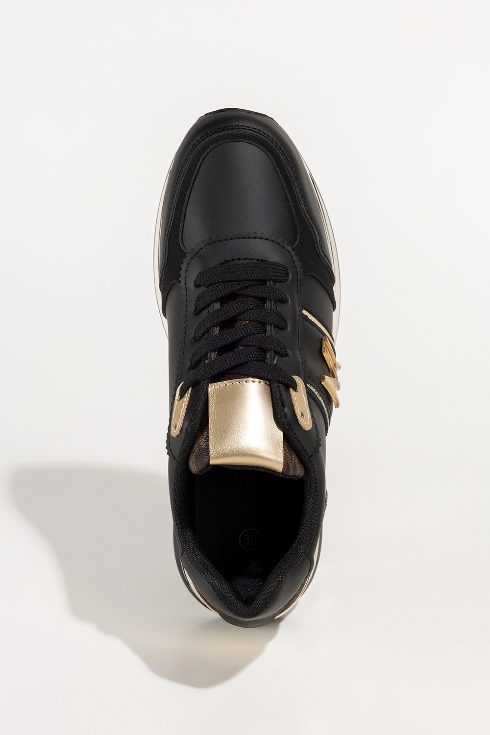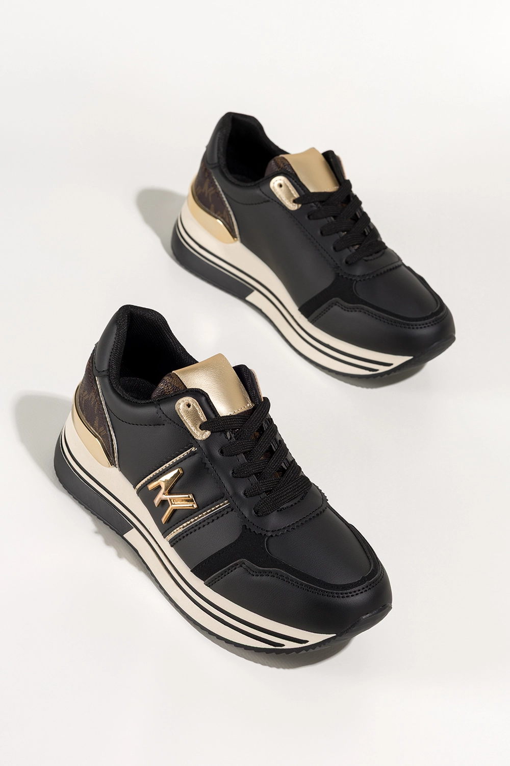 Czarne sneakersy damskie buty sportowe na żłobionej platformie sznurowane złota ozdoba Casu model DD769 to doskonała propozycja dla kobiet, które poszukują połączenia nowoczesnego designu, wyjątkowej wygody i niebanalnych detali. Wykonane z wysokogatunkowej skóry ekologicznej, z charakterystyczną białą platformą i subtelnymi złotymi akcentami, te sneakersy wyróżniają się w tłumie i dodają każdej stylizacji miejskiego szyku. Zaokrąglony nosek, miękka wkładka oraz solidna konstrukcja sprawiają, że noszenie ich to prawdziwa przyjemność, nawet przez cały dzień. Te buty to nie tylko modny dodatek – to wyraz indywidualnego stylu i świadomego wyboru jakości.