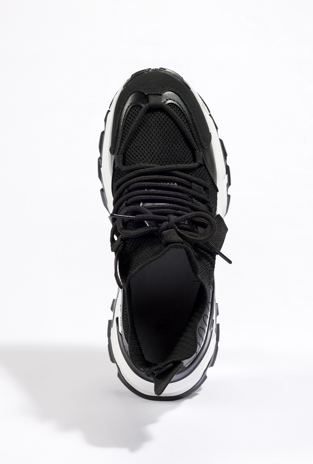 Czarne sneakersy na platformie to absolutny must-have w garderobie każdej kobiety. Dzięki klasycznemu designowi i neutralnej kolorystyce łatwo dopasujesz je do różnych stylizacji – zarówno sportowych, jak i casualowych. Możesz nosić je do jeansów i t-shirtu na co dzień, zestawić z dresowym kompletem na luźniejsze wyjścia, a nawet połączyć z letnią sukienką dla kontrastowego, modnego efektu. Biała podeszwa i czarna cholewka tworzą ponadczasowe połączenie kolorystyczne, które nigdy nie wychodzi z mody.