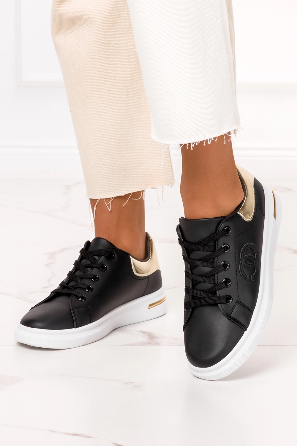Czarne sneakersy na platformie damskie sznurowane Casu MB-122