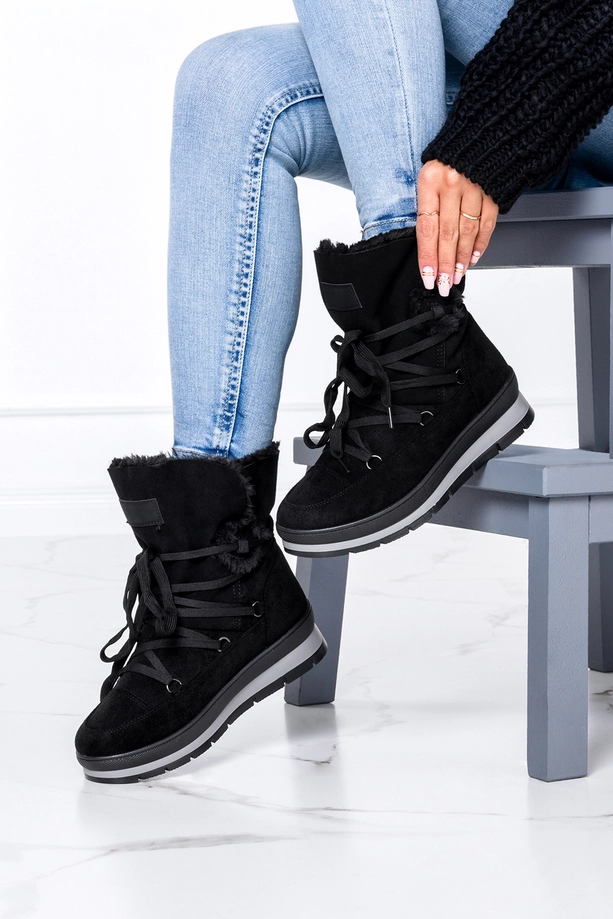 Czarne śniegowce mukluki z ozdobnym wiązaniem Casu SJ2100-1