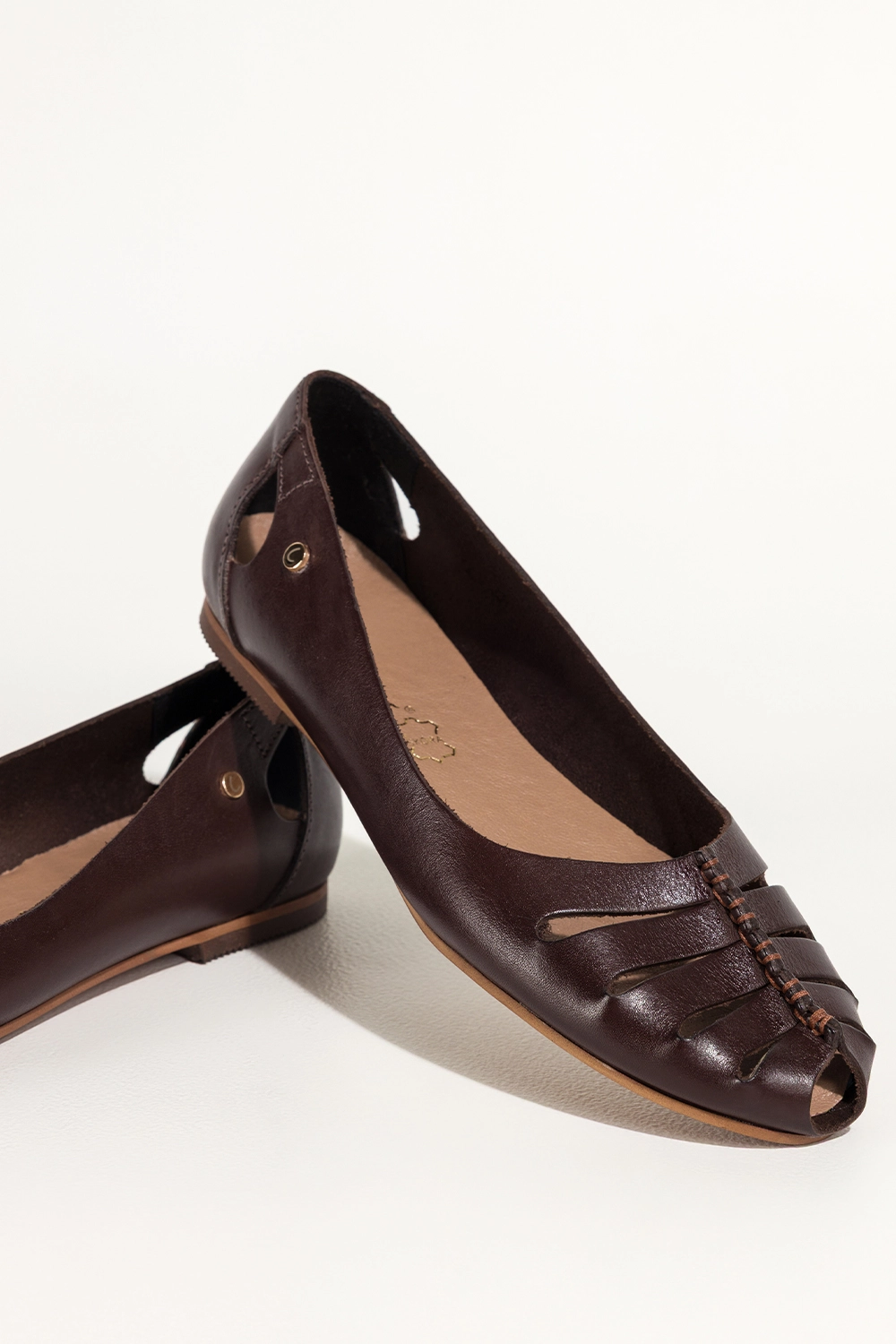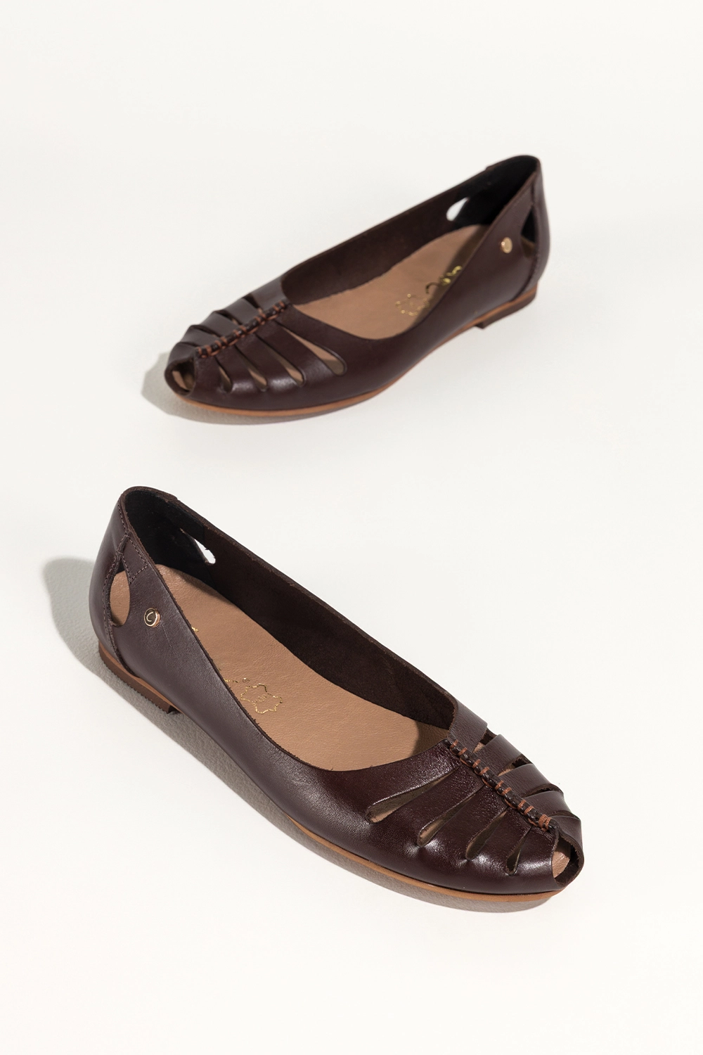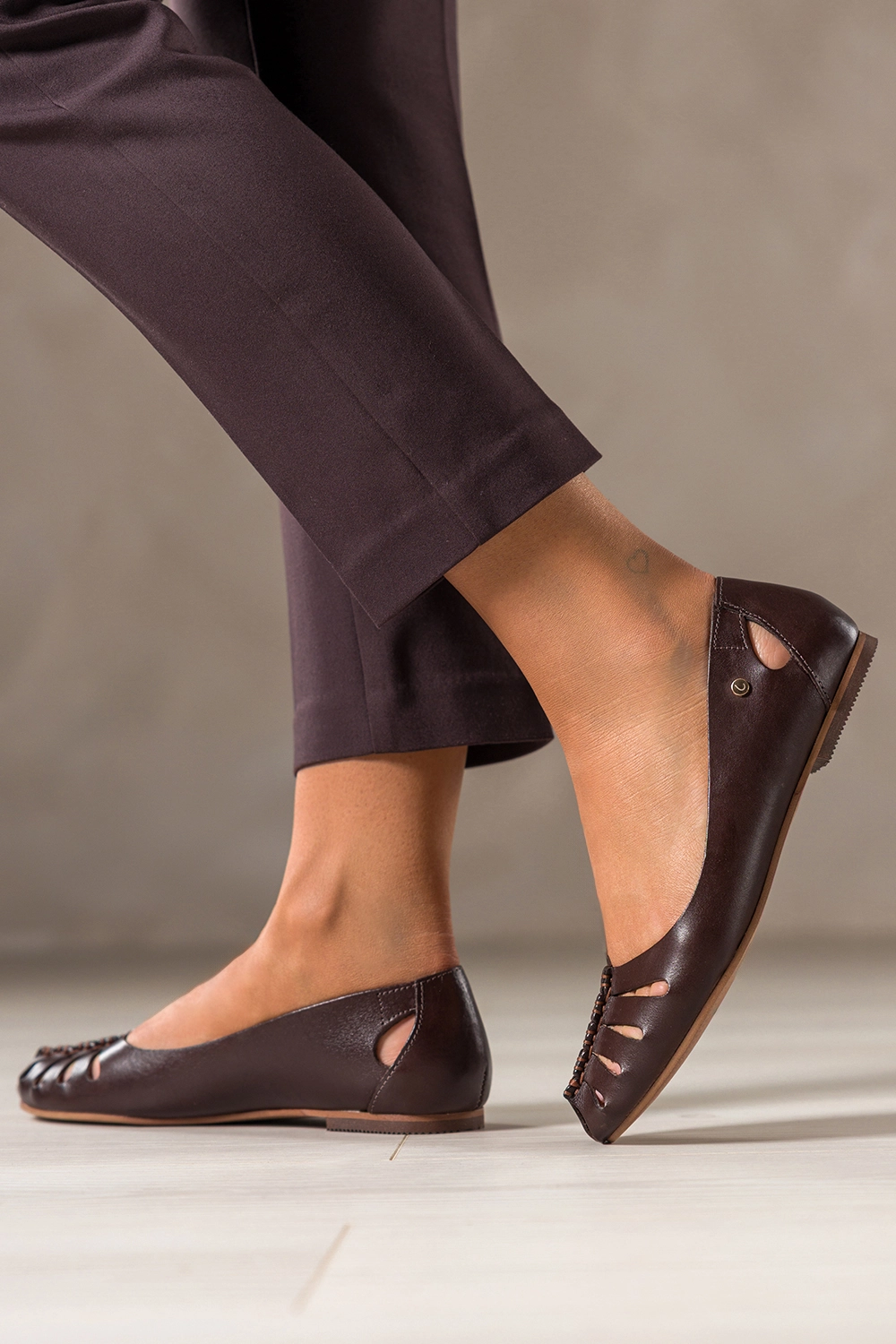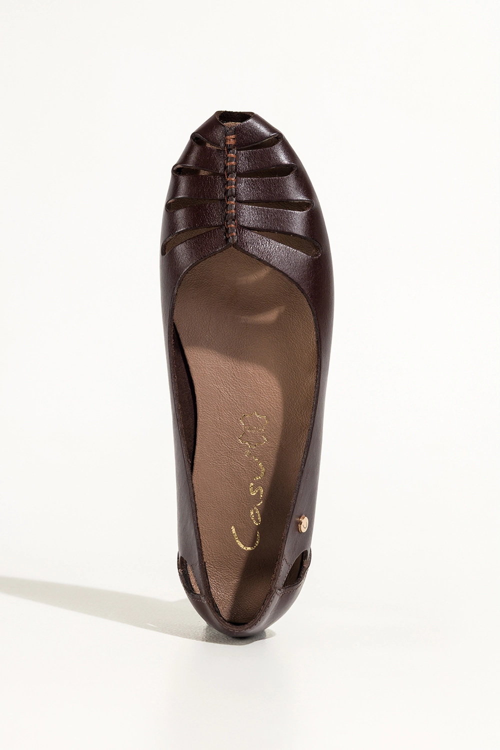 Czekoladowe baleriny skórzane damskie ażurowe z odkrytymi palcami PRODUKT POLSKI Casu 89990