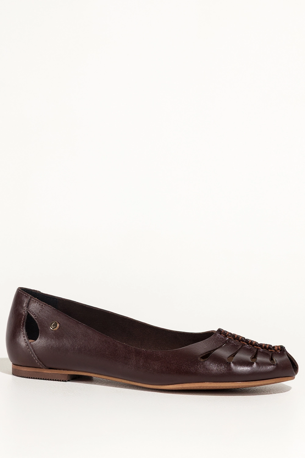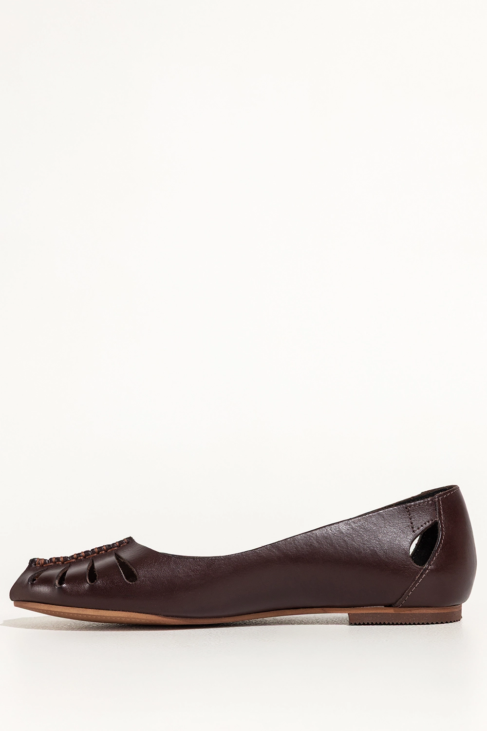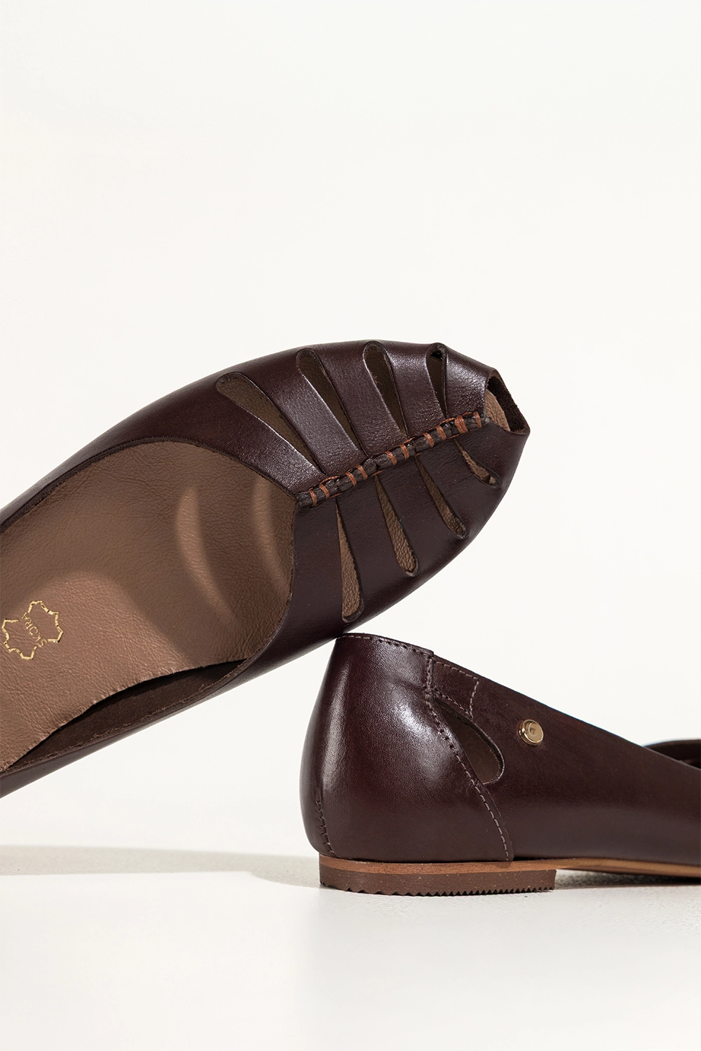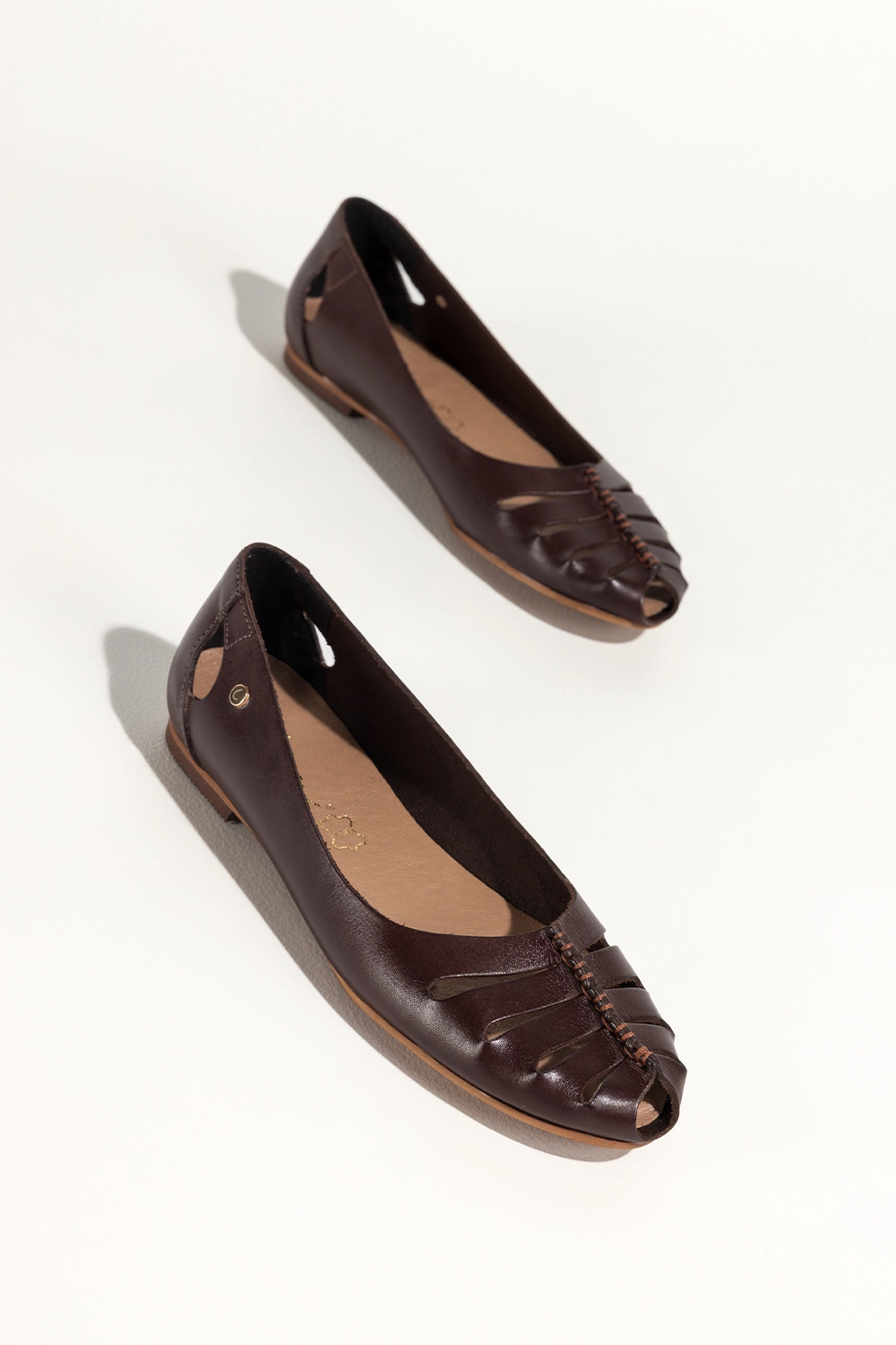 Czekoladowe baleriny skórzane damskie ażurowe z odkrytymi palcami PRODUKT POLSKI Casu 89990