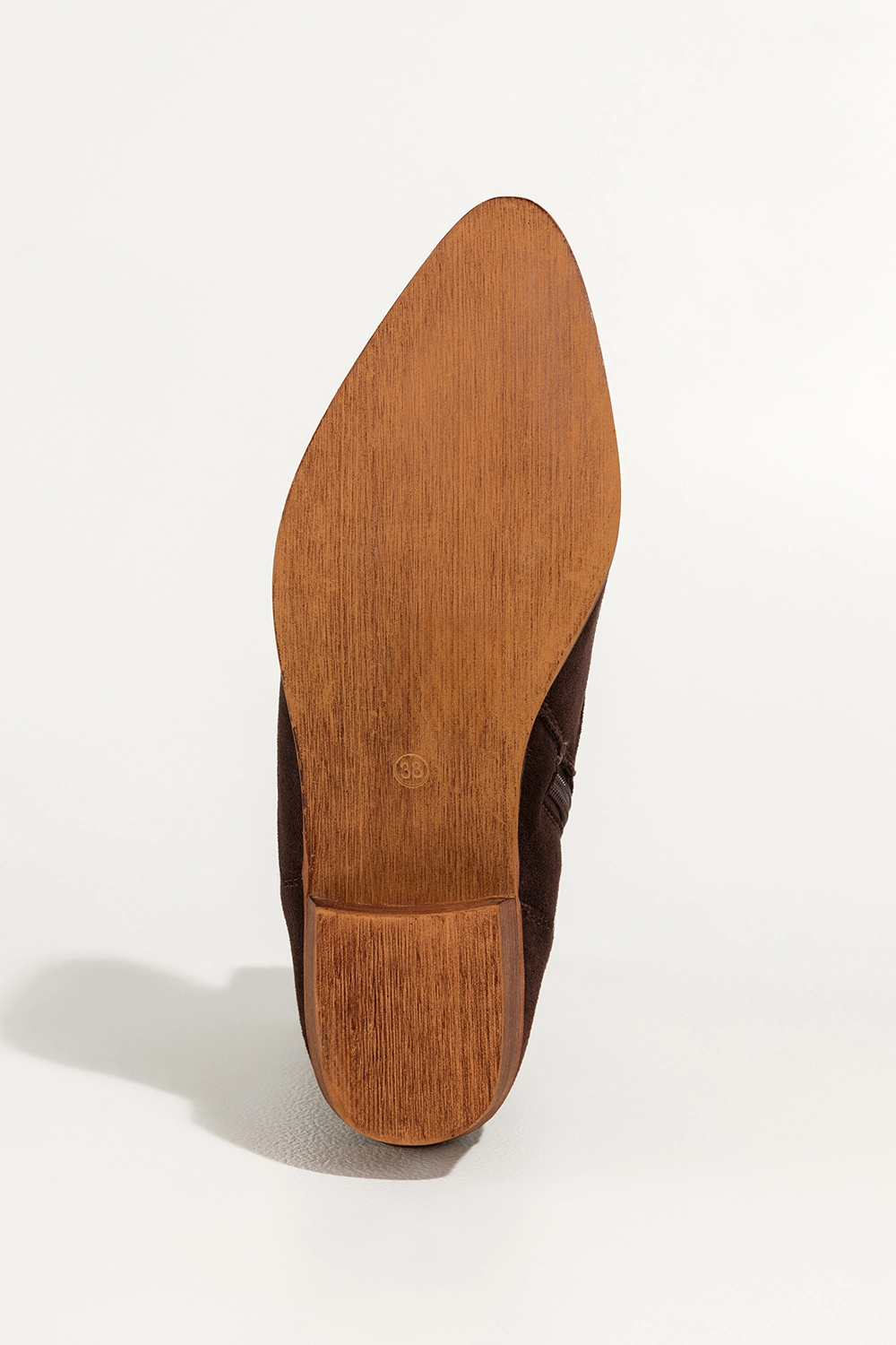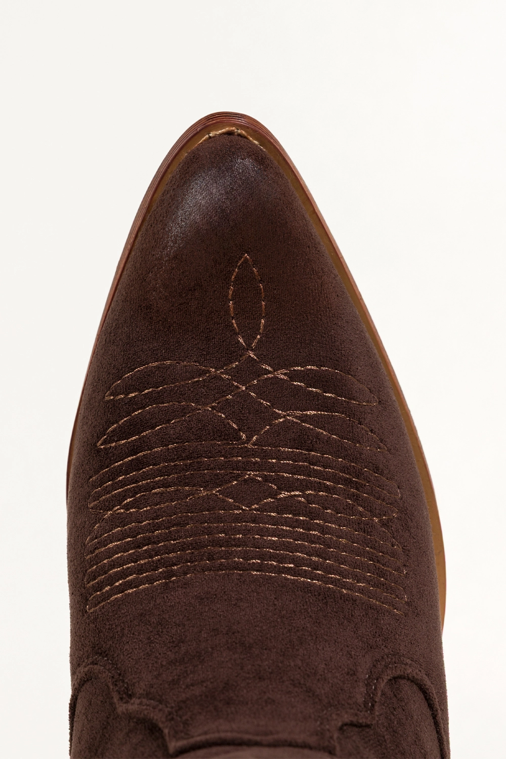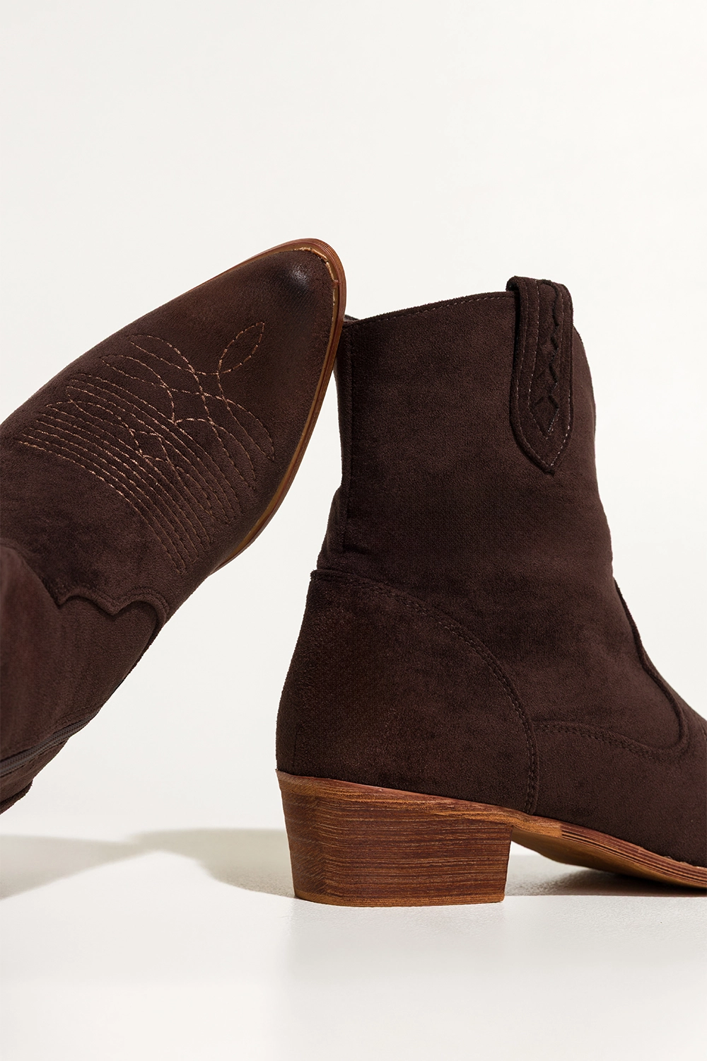 Czekoladowe botki damskie kowbojki na ściętym klocku cholewka z ozdobnymi przeszyciami skórzana wkładka Carla model XBN970-11. Cholewka z miękkiego, przyjemnego w dotyku zamszu ekologicznego z dekoracyjnymi przeszyciami prezentuje się niezwykle stylowo i elegancko. Wnętrze buta zostało wykończone oddychającym materiałem, a naturalna skórzana wkładka zapewnia idealne dopasowanie i wygodę nawet przez cały dzień.