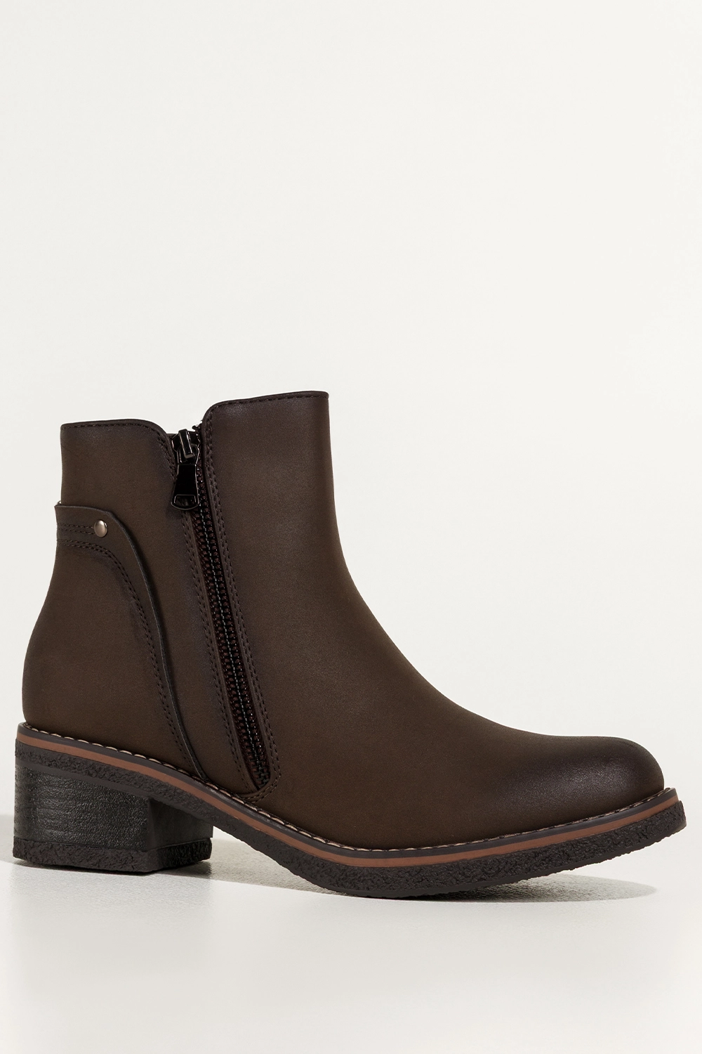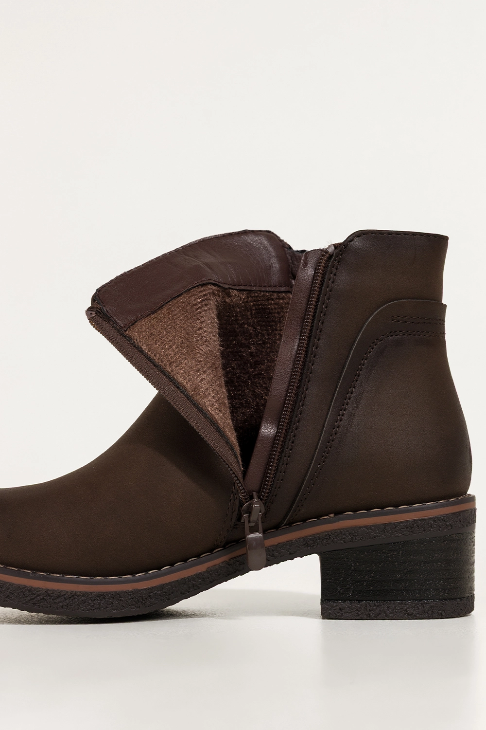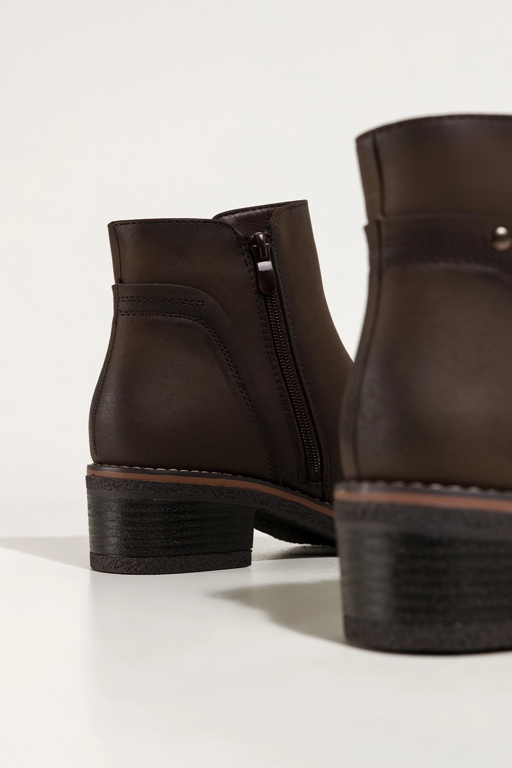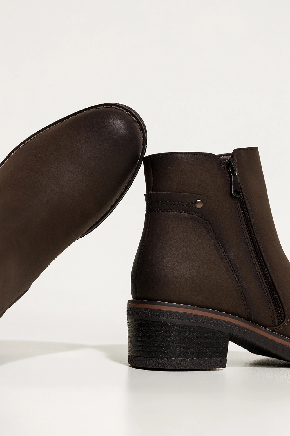 Zachwycają głębokim czekoladowym kolorem, który doskonale wpisuje się w jesienno-zimowe stylizacje. Ich uniwersalny fason z zaokrąglonym noskiem oraz niskim, stabilnym obcasem typu klocek dodaje sylwetce lekkości i zapewnia wygodę podczas chodzenia. Ozdobny zamek na cholewce nie tylko przyciąga wzrok, ale również nadaje całości modnego, nowoczesnego charakteru. Botki doskonale komponują się zarówno z eleganckim płaszczem, jak i codziennym lookiem z jeansami czy swetrem. To idealny wybór do pracy, na zakupy czy spotkanie z przyjaciółmi.