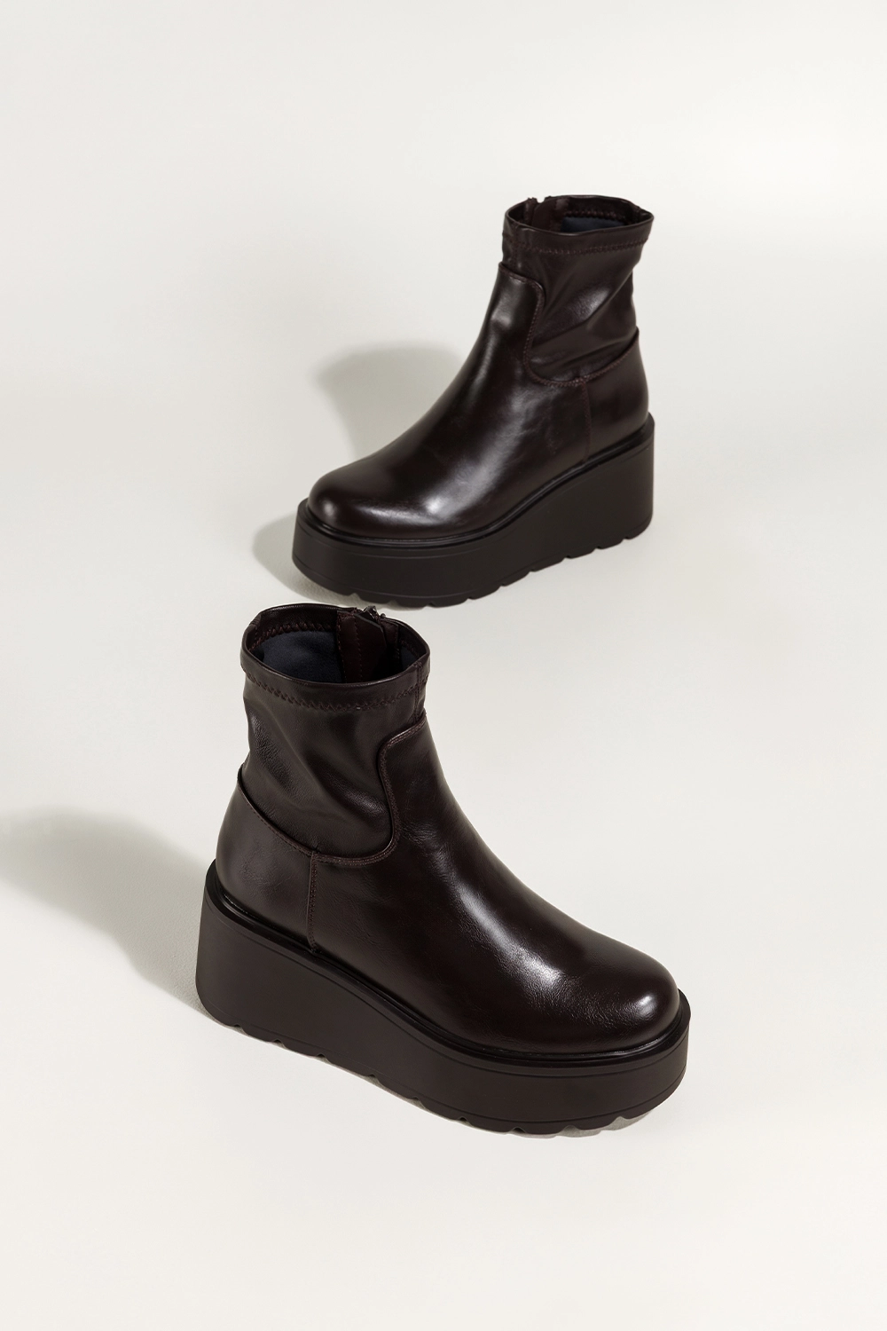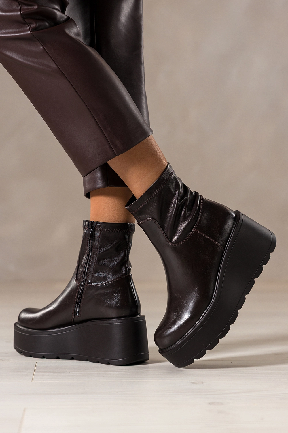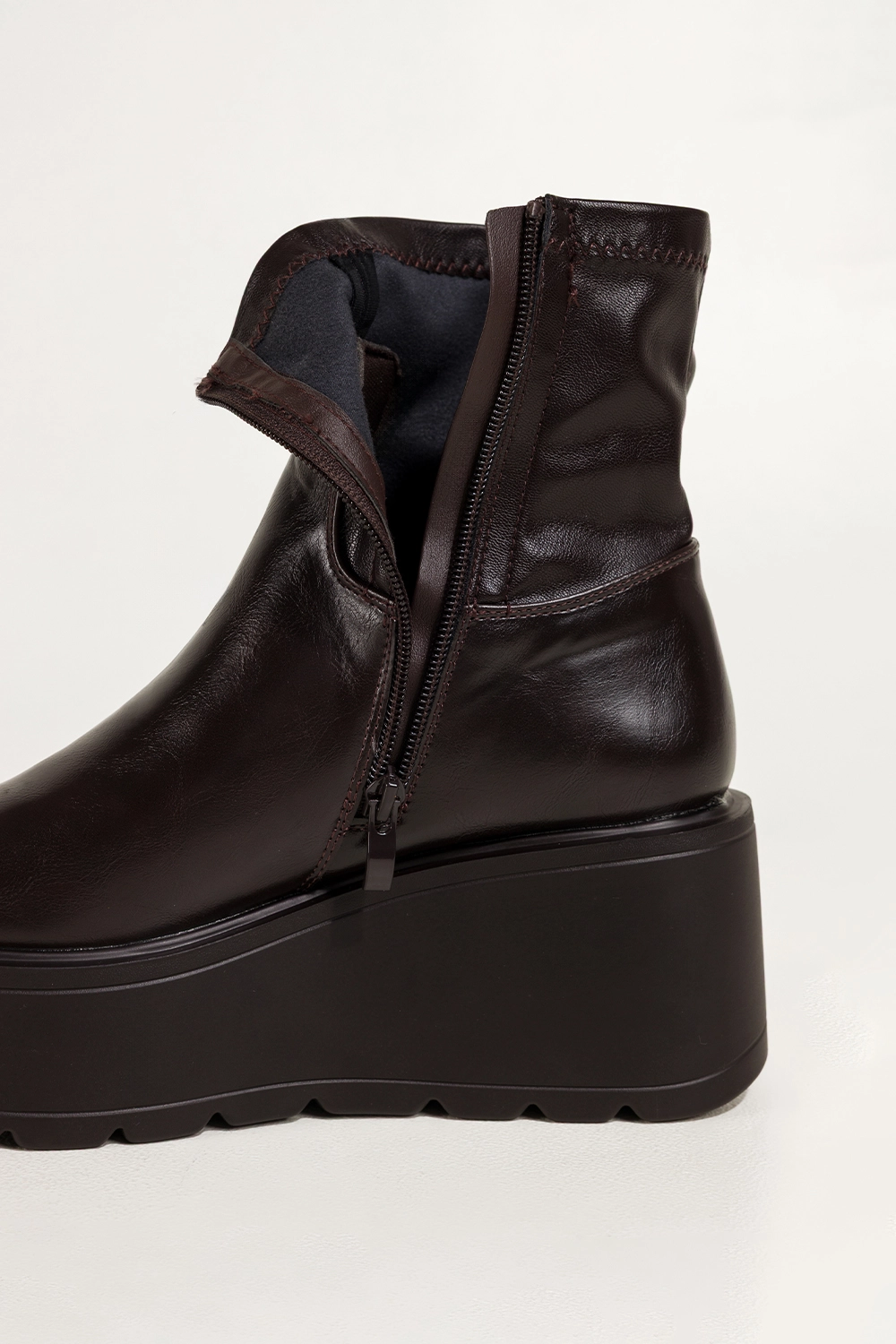 Czekoladowe botki damskie na koturnie elastyczna cholewka Casu model 0743, to połączenie stylu i wygody, które zaspokoi potrzeby nawet najbardziej wymagających kobiet. Wykonane z trwałej skóry ekologicznej o miękkim wykończeniu, prezentują się niezwykle elegancko, a jednocześnie gwarantują odporność na codzienne użytkowanie. Wnętrze wykończone miękkim materiałem oraz wkładka z ekologicznej skóry zapewniają komfort, nawet przy długotrwałym noszeniu.