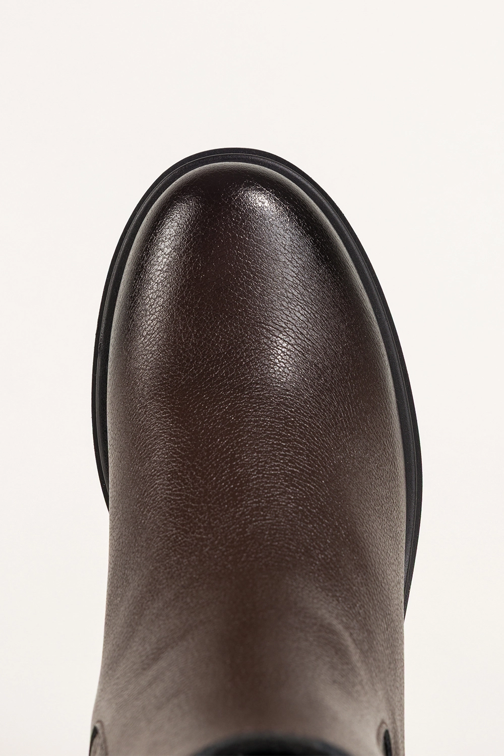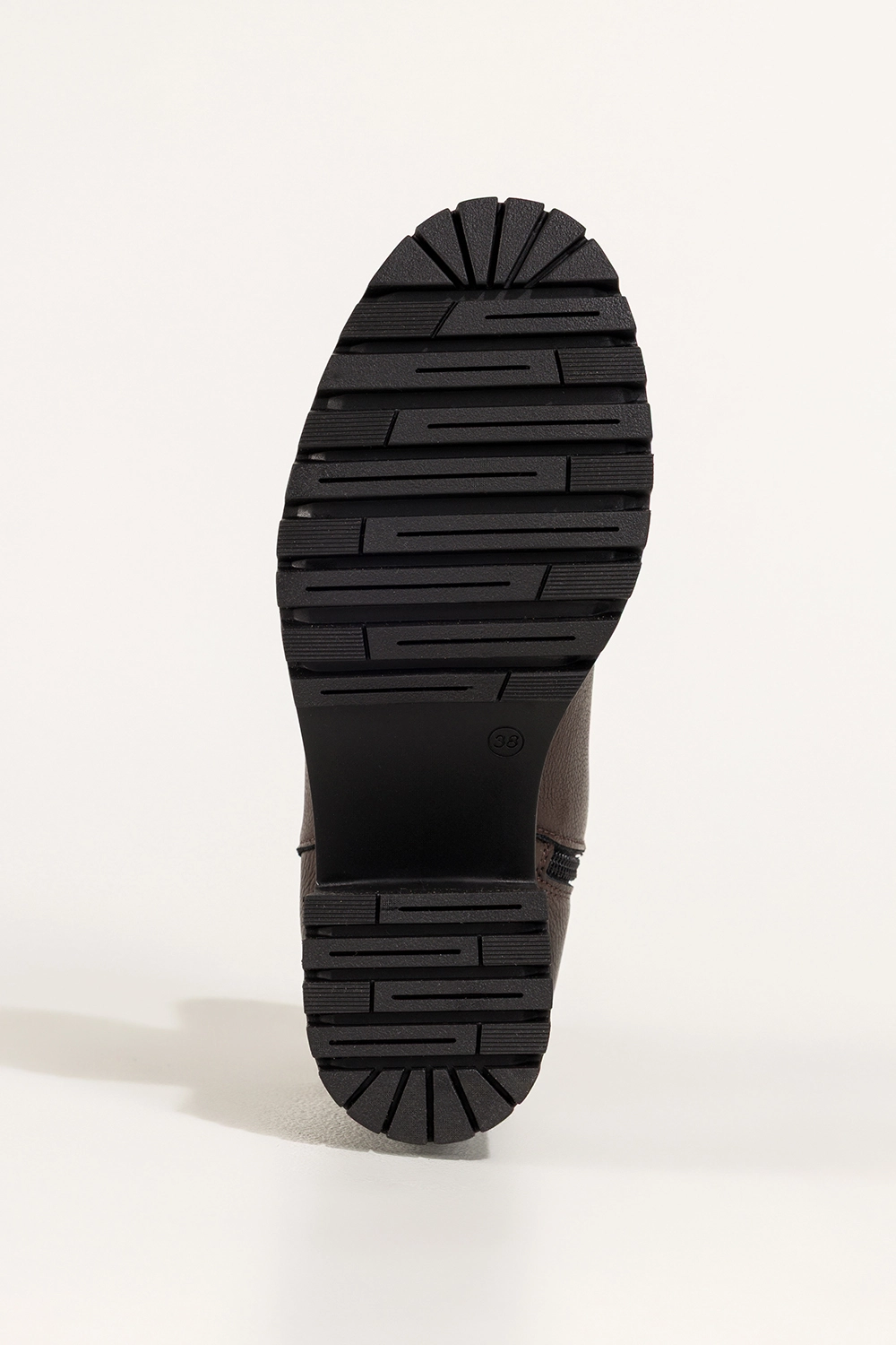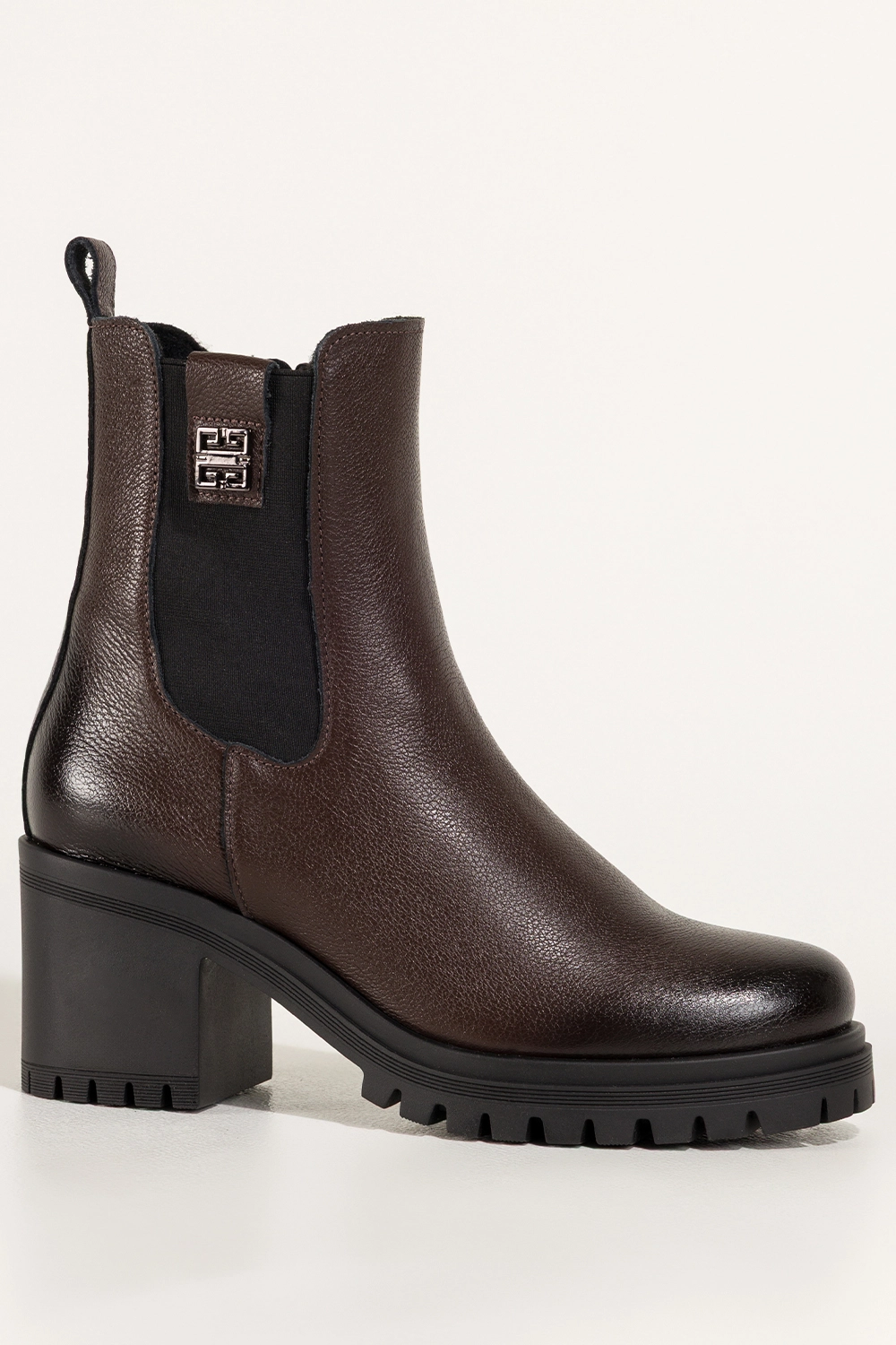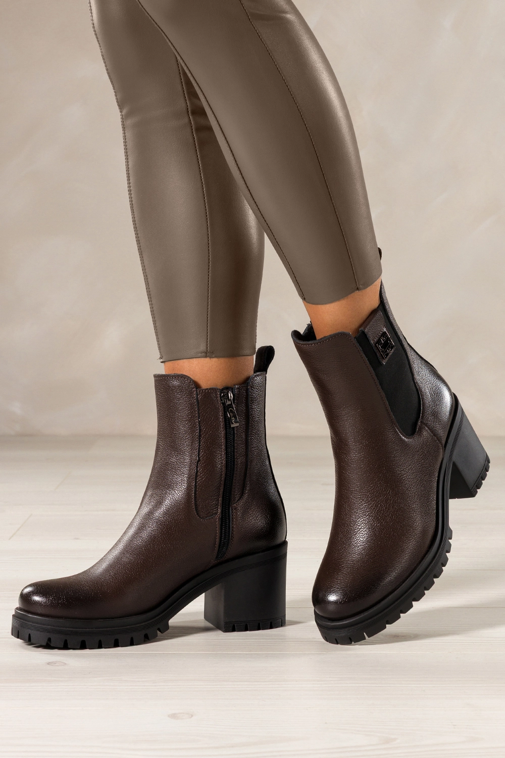 Dzięki czarnej gumie w cholewce botki idealnie dopasowują się do nogi, a stalowa ozdoba dodaje im wyrazistego charakteru. Ten model doskonale uzupełni zarówno codzienne, jak i bardziej eleganckie stylizacje, od klasycznych jeansów po sukienki midi. Ich głęboki, czekoladowy odcień jest niezwykle uniwersalny i łatwy do zestawienia z innymi kolorami garderoby, dzięki czemu stanowią niezastąpiony element jesienno-zimowej kolekcji.