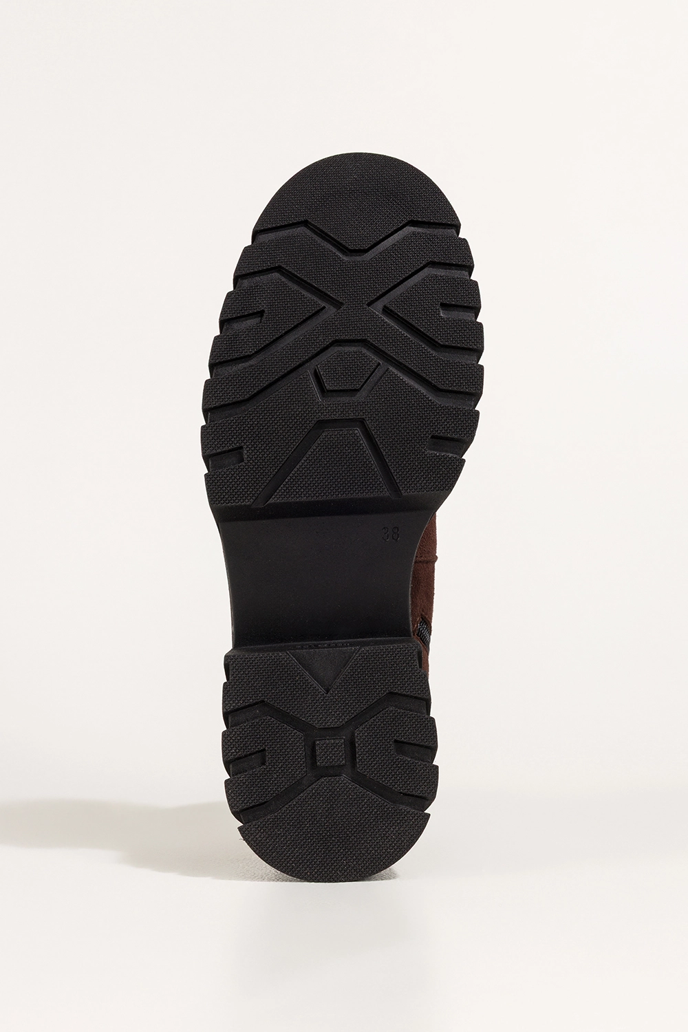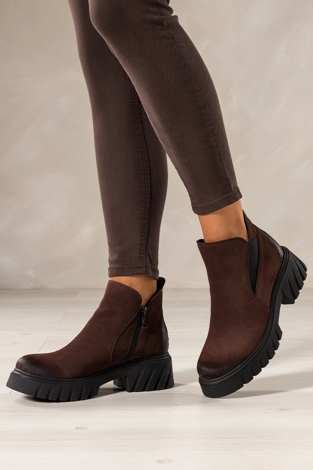 Czekoladowe botki skórzane damskie na bieżnikowanej platformie guma w cholewce PRODUKT POLSKI Casu 39512