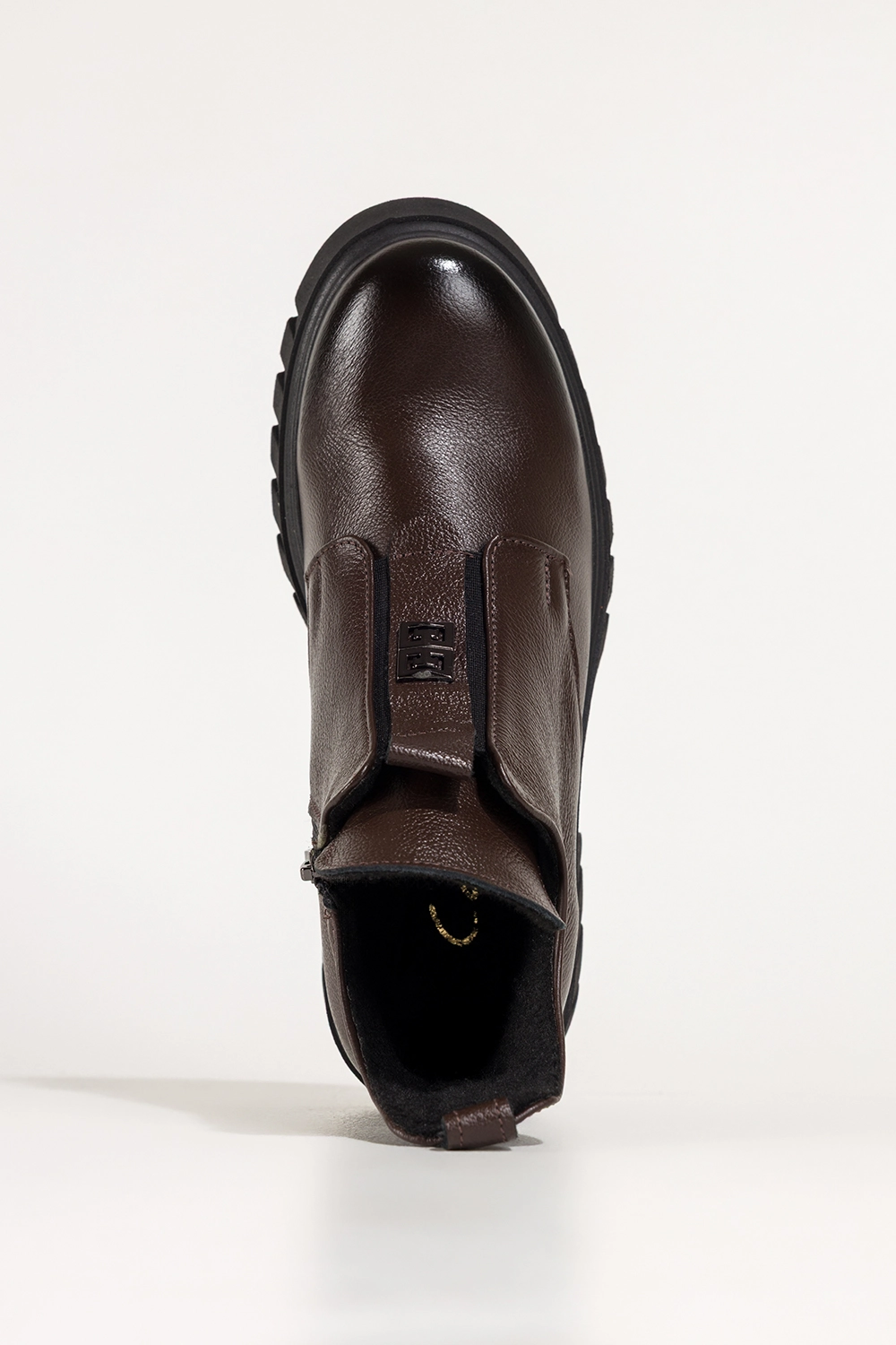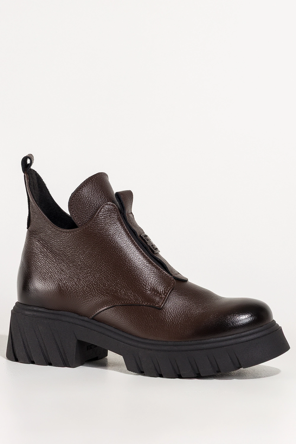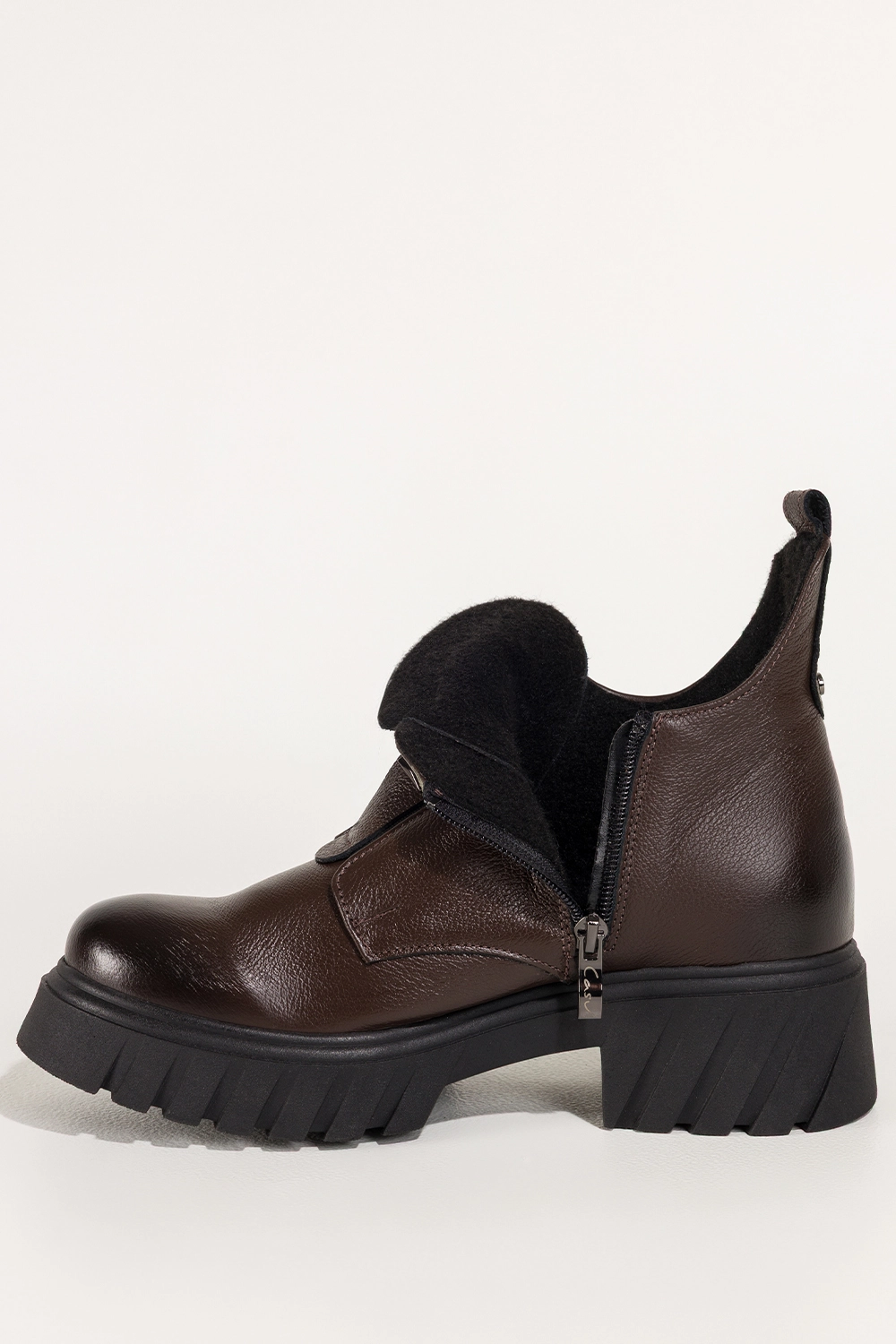 Czekoladowe botki skórzane damskie na bieżnikowanej platformie z wyciętą cholewką guma na przodzie stalowa ozdoba PRODUKT POLSKI Casu model 39456. Wykonane z wysokogatunkowej skóry naturalnej, zapewniają doskonały komfort przez cały dzień. Ocieplenie kocem obuwniczym sprawia, że idealnie sprawdzą się nawet w chłodniejsze dni. Zaokrąglony nosek gwarantuje wygodę, a solidna bieżnikowana platforma dodaje stabilności na każdej nawierzchni.