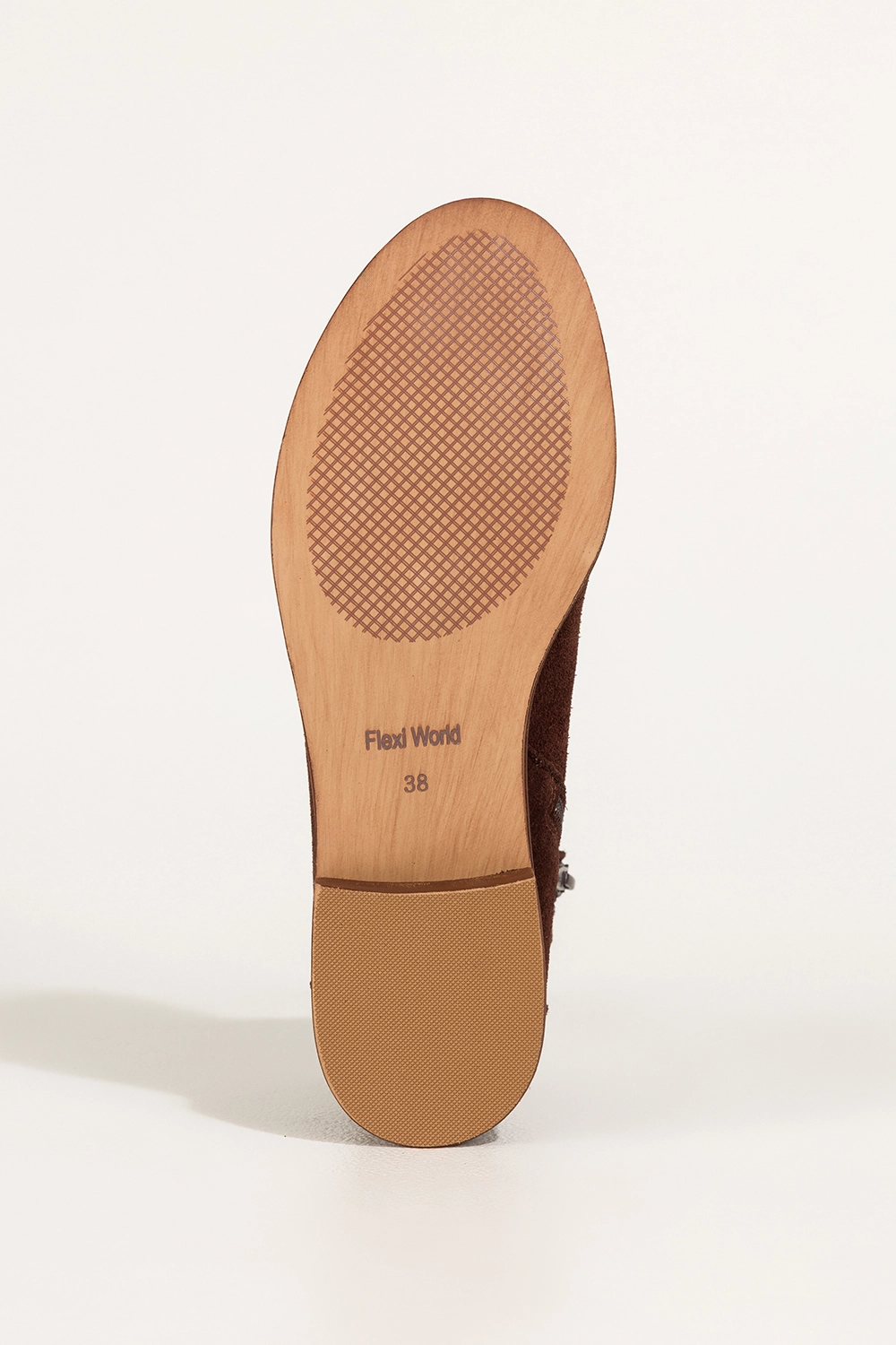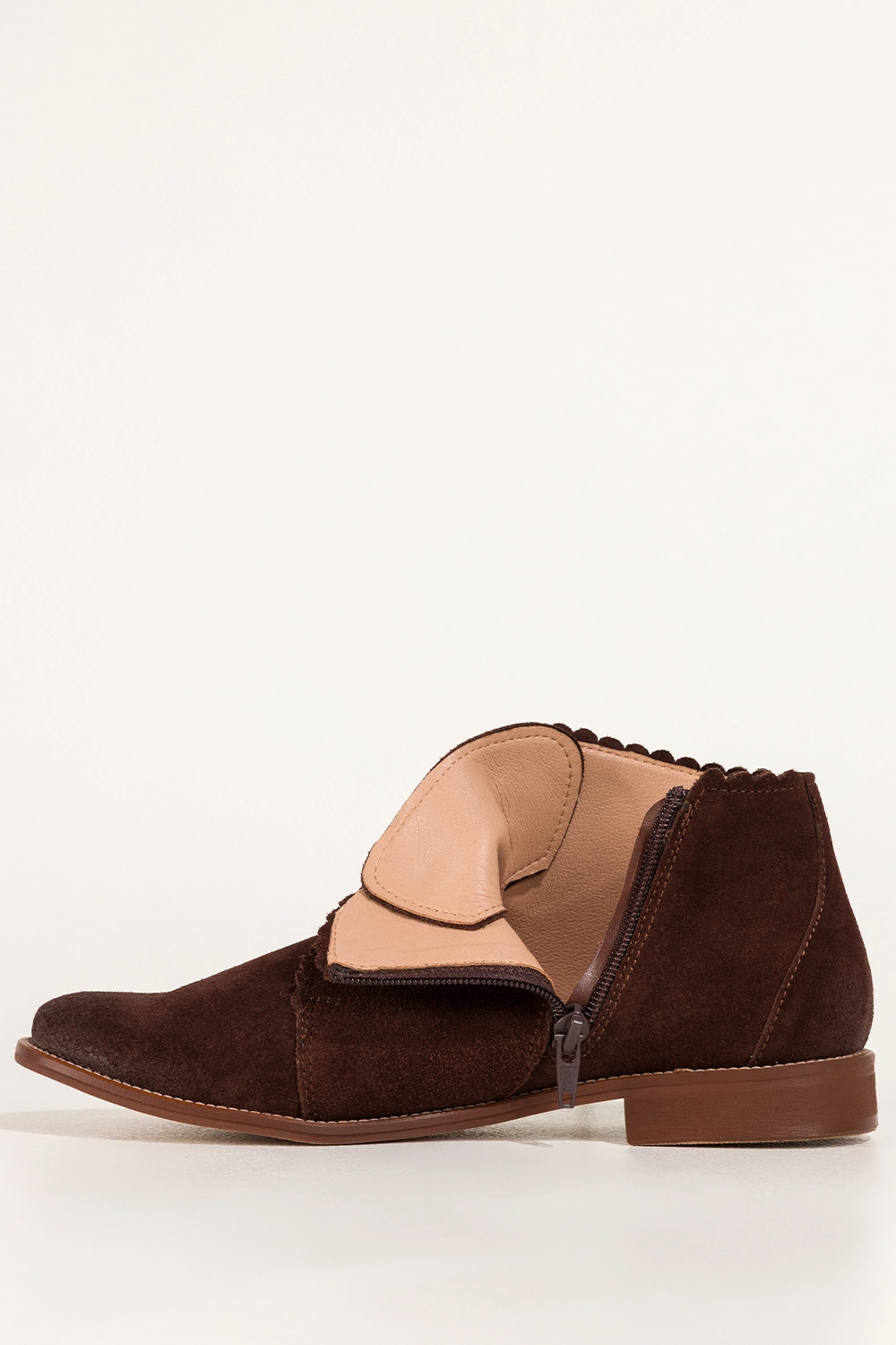 Ozdobne wykończona cholewka nadają obuwiu unikalnego charakteru i delikatnej lekkości, idealnie komponując się z jesienno-zimowymi stylizacjami. Zaokrąglony nosek i subtelny odcień czekolady tworzą harmonijną całość, którą łatwo dopasować zarówno do codziennych, jak i eleganckich outfitów. Zamek po wewnętrznej stronie ułatwia zakładanie i zdejmowanie butów.