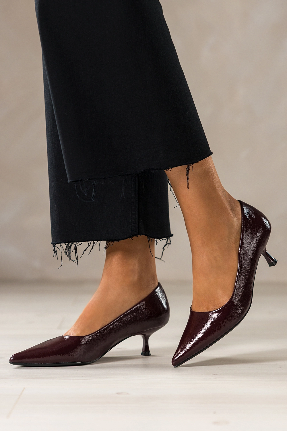 Bordowe czółenka damskie lakierowane obcas kieliszek Carla 1646
