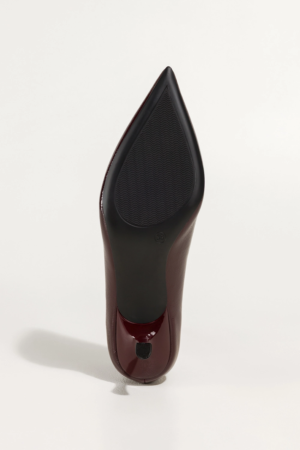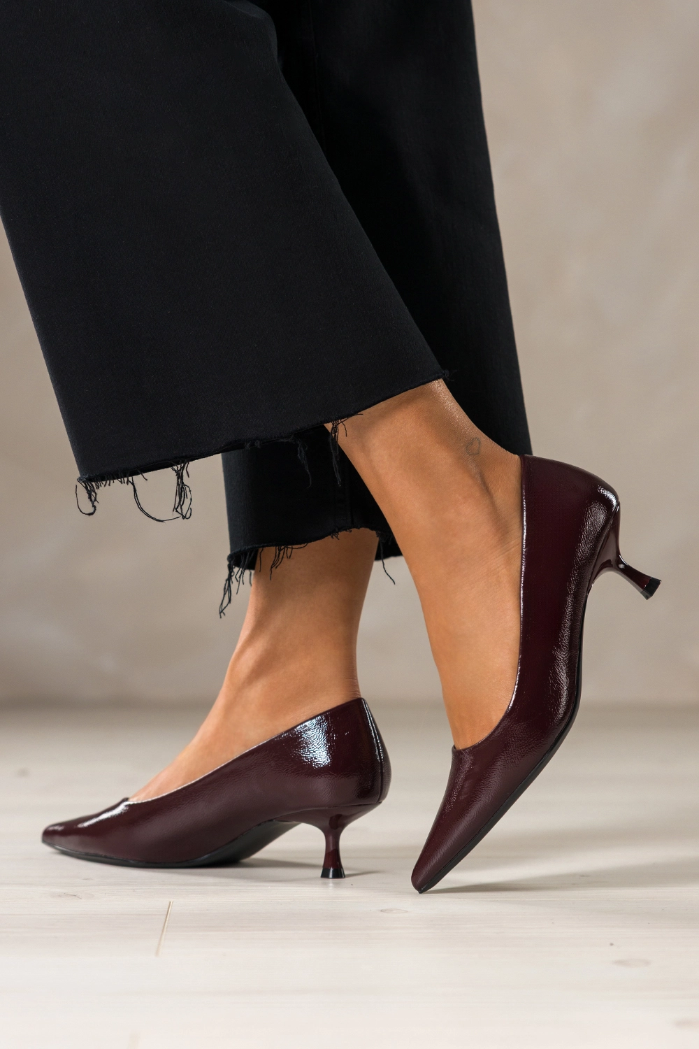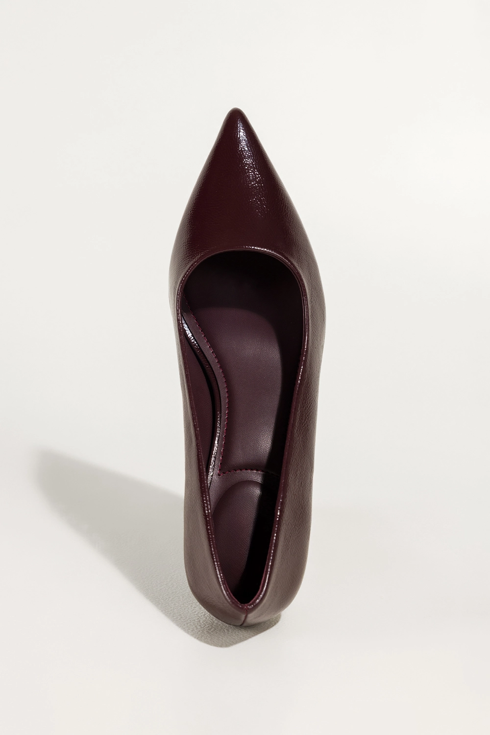 Obcas typu kieliszek nadaje sylwetce smukłości, a jednocześnie zapewnia stabilność i wygodę. Szpiczasty nosek optycznie wydłuża nogi, dodając subtelnej zmysłowości. Lakierowana powierzchnia w głębokim, bordowym odcieniu sprawia, że buty przyciągają spojrzenia i świetnie komponują się zarówno z klasyczną sukienką, jak i nowoczesnym garniturem. To doskonały wybór na wesele, spotkanie biznesowe czy wieczorne wyjście, uniwersalność, która nigdy nie wychodzi z mody.