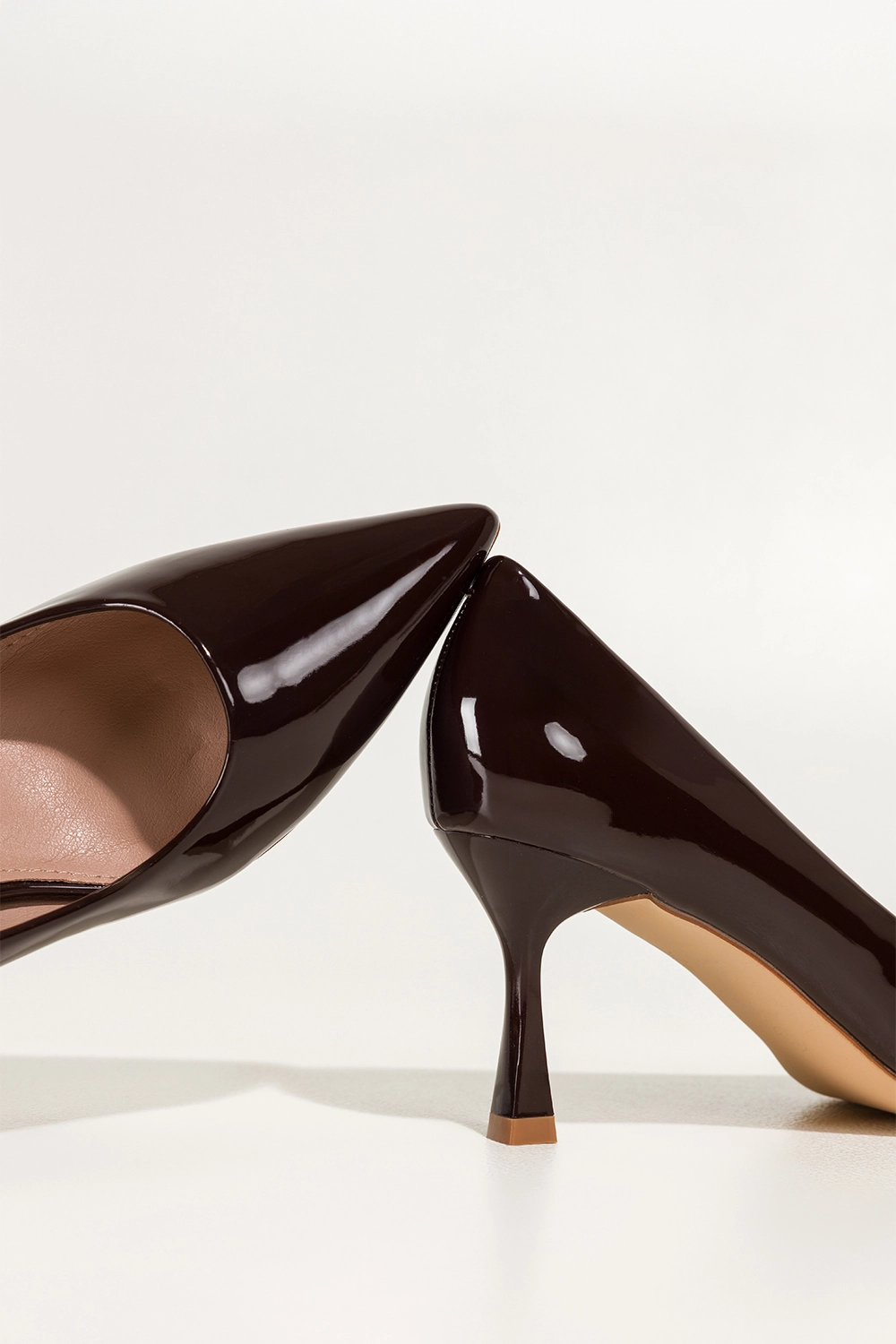 Czekoladowe czółenka damskie szpilki lakierowane obcas kieliszek Carla model T08, to połączenie ponadczasowej klasyki z nowoczesnym szykiem. Wykonane z wysokogatunkowej lakierowanej skóry ekologicznej, zachwycają głębokim, ciepłym odcieniem czekolady i połyskującym wykończeniem, które dodaje luksusowego charakteru każdej stylizacji. Miękka wkładka z ekologicznej skóry zapewnia komfort noszenia przez wiele godzin, nawet podczas intensywnego dnia. Obcas typu kieliszek subtelnie unosi sylwetkę, podkreślając kobiecość i dodając pewności siebie przy każdym kroku.