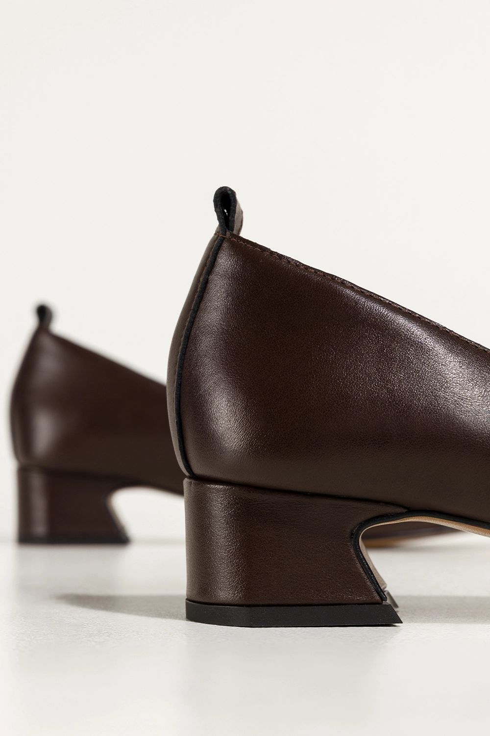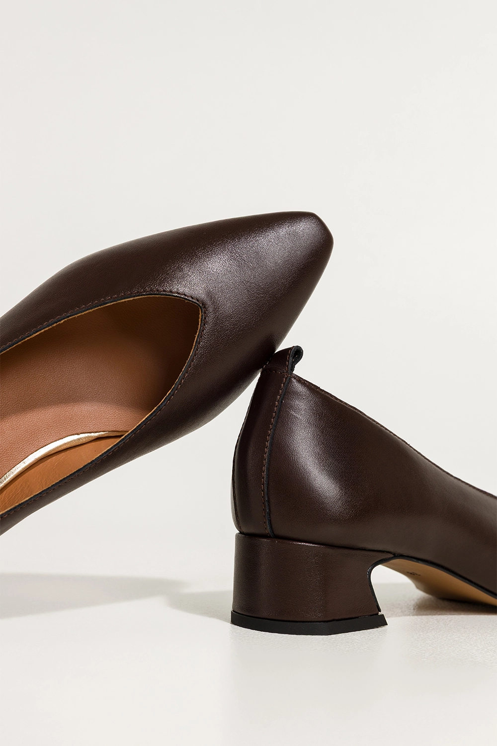 Czekoladowe czółenka skórzane damskie na niskim klocku wycięcie w cholewce PRODUKT POLSKI Casu model 7235-704. Buty zostały stworzone z wysokogatunkowej skóry naturalnej, która nie tylko pięknie się prezentuje, ale także gwarantuje wyjątkową trwałość i dopasowanie do stopy. Miękka, skórzana wkładka zapewnia komfort nawet podczas długiego noszenia, a stabilny niski obcas typu klocek pokryty skórą to gwarancja wygody oraz eleganckiego wyglądu na każdej okazji.