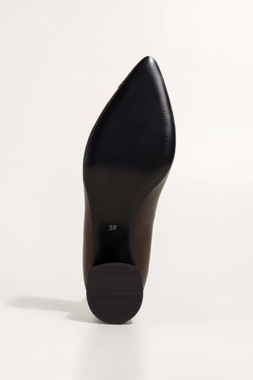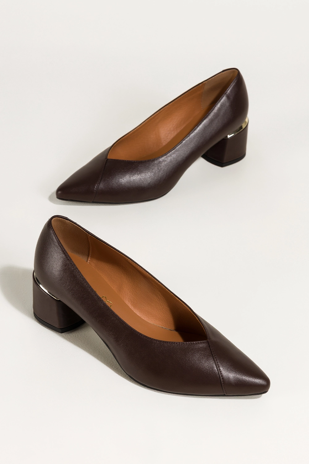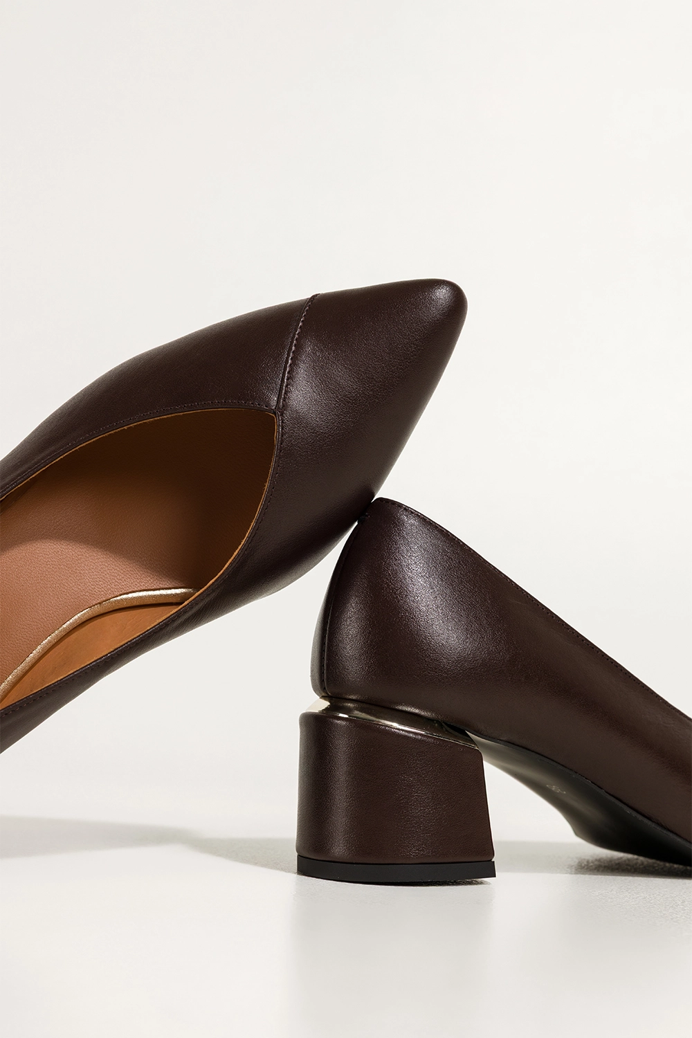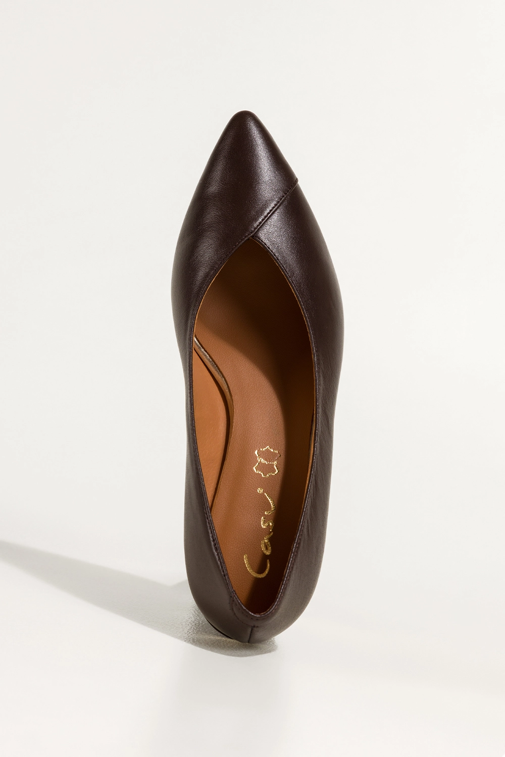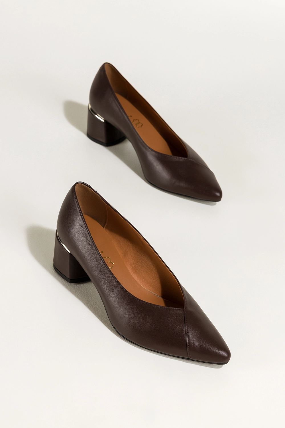 Ten model czółenek w głębokim, czekoladowym odcieniu doskonale komponuje się z szeroką gamą stylizacji, od biurowych garniturów, przez eleganckie sukienki, aż po codzienne zestawy z jeansami. Szpiczasty nosek optycznie wysmukla stopę, a klasyczna linia cholewki z subtelnym przeszyciem dodaje butom wyrafinowanego charakteru. Wsuwana konstrukcja zapewnia wygodne zakładanie, a precyzyjne wykończenie świadczy o dbałości o każdy detal.