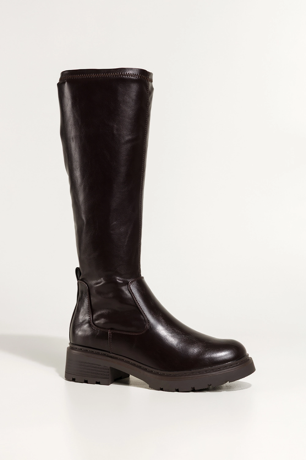 Czekoladowe kozaki damskie na bieżnikowanej podeszwie elastyczna cholewka przed kolano Casu model 0739. Wykonane z wysokogatunkowej skóry ekologicznej, gwarantują trwałość i odporność na warunki atmosferyczne. Wnętrze wyściełane miękkim materiałem otula stopę, a skórzana wkładka zapewnia komfort nawet podczas długiego dnia. Stabilna platforma z bieżnikiem poprawia przyczepność i bezpieczeństwo, co czyni je doskonałym wyborem na jesienno-zimowe spacery.