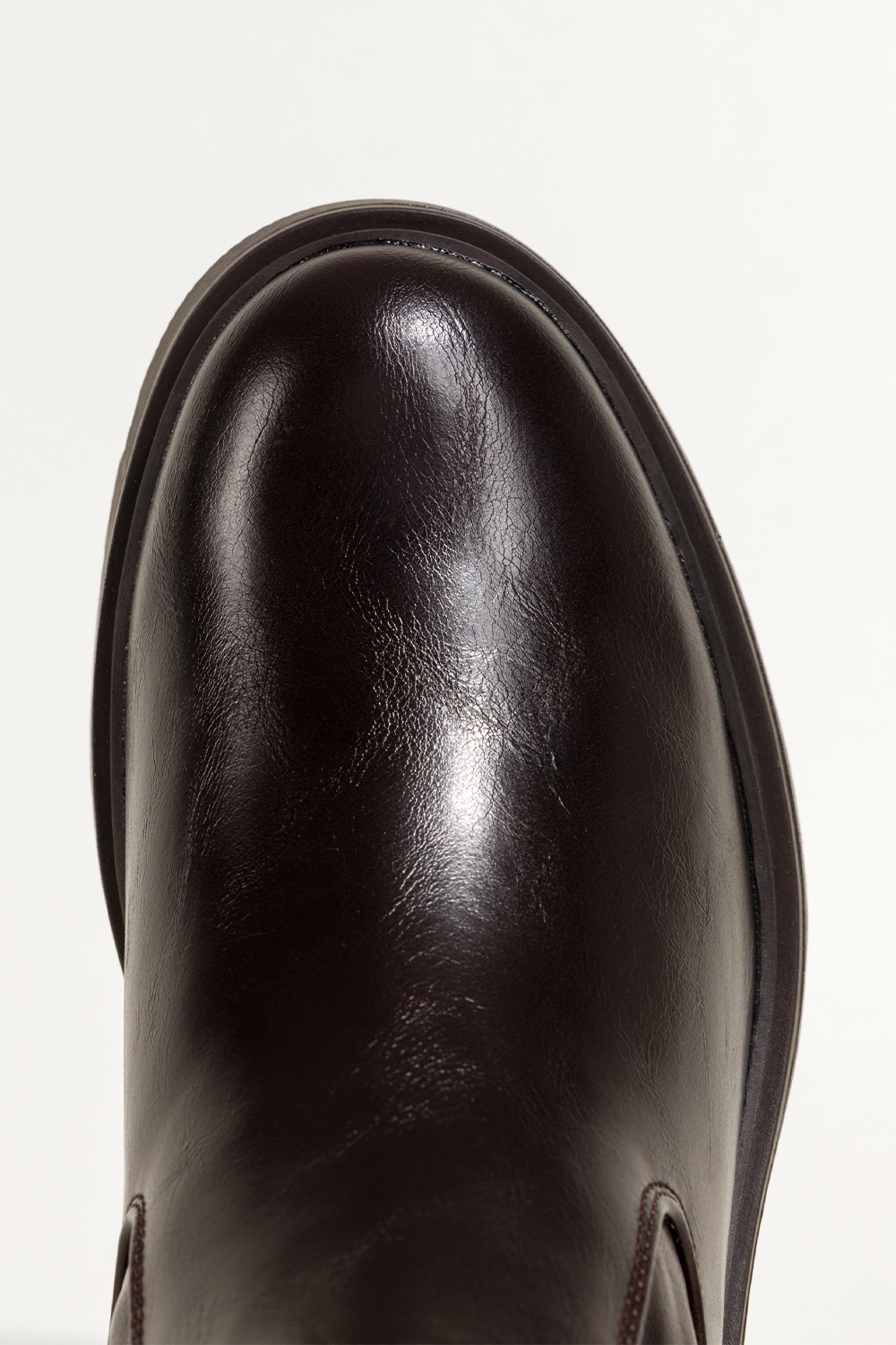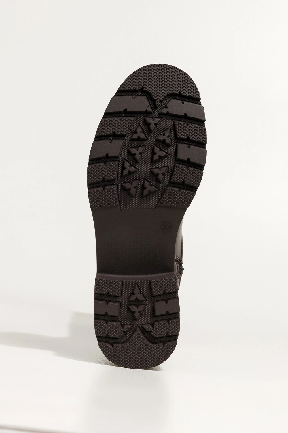• Zaokrąglony nosek i modny odcień czekolady