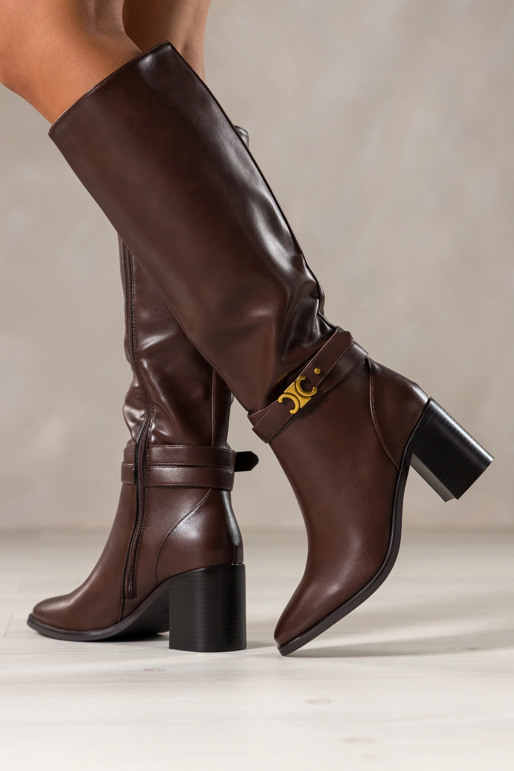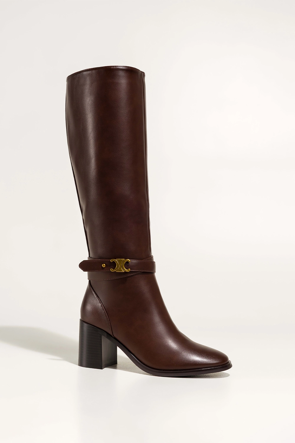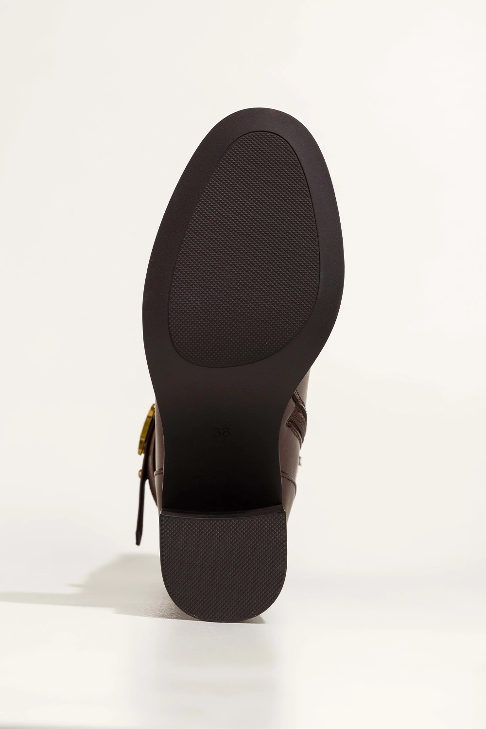 Zmysłowy, czekoladowy odcień dodaje butom klasy, a zaokrąglony nosek i wyprofilowany fason pięknie wysmuklają nogę. Złota ozdoba na pasku subtelnie błyszczy przy każdym ruchu, stanowiąc luksusowy detal. Kozaki świetnie komponują się zarówno z sukienkami, jak i obcisłymi jeansami czy wełnianymi płaszczami. Ich uniwersalność sprawia, że pasują zarówno do casualowych, jak i eleganckich stylizacji.