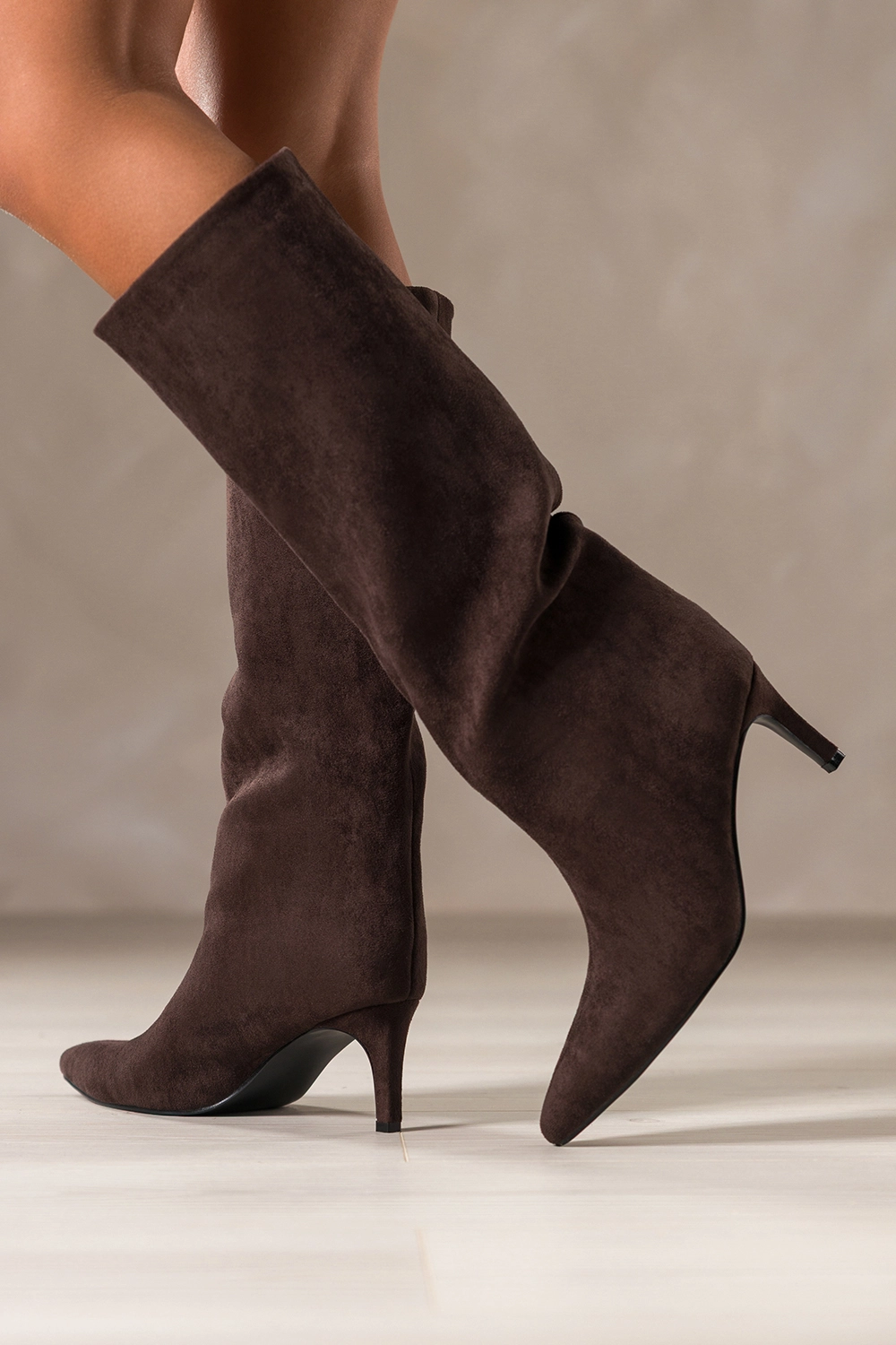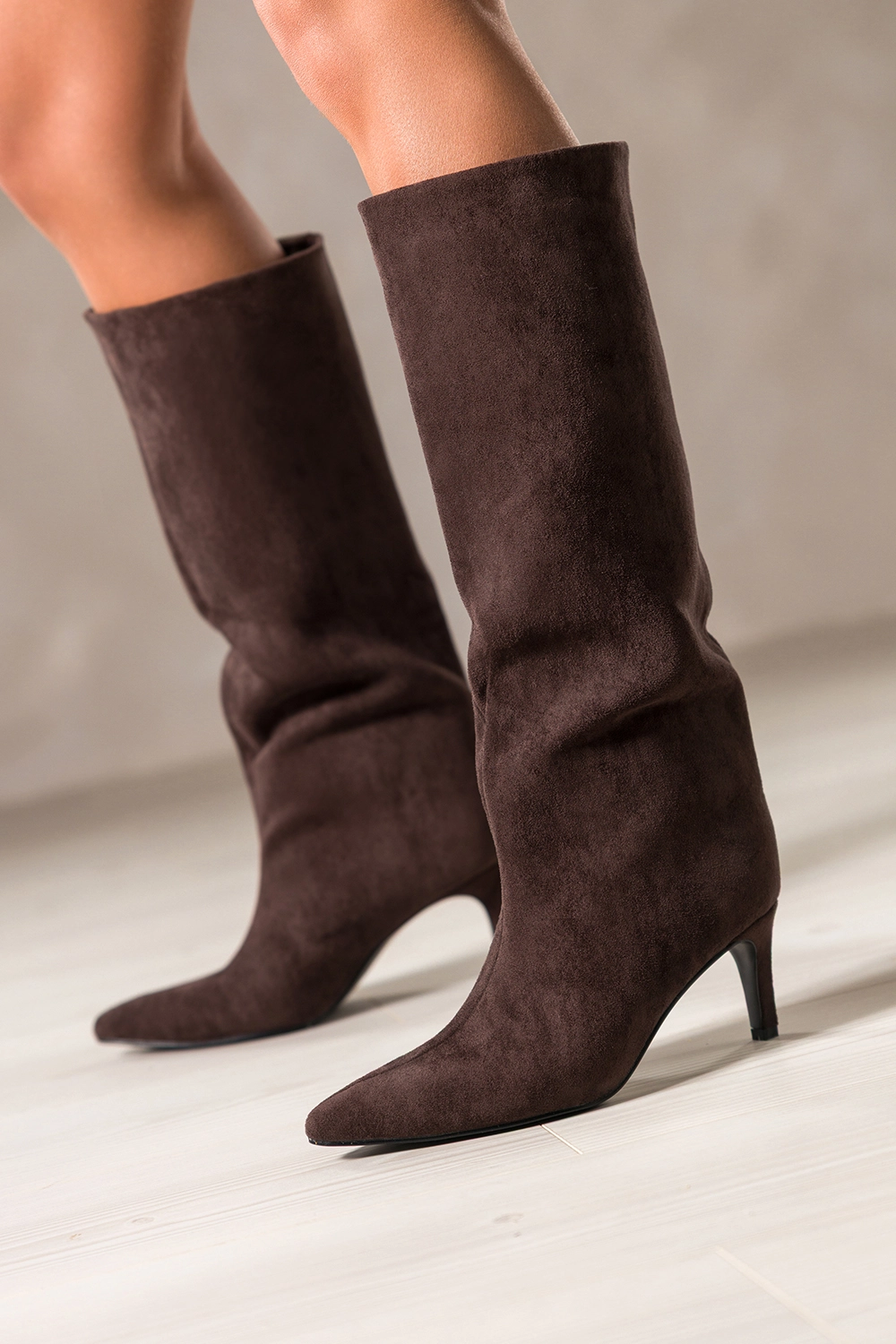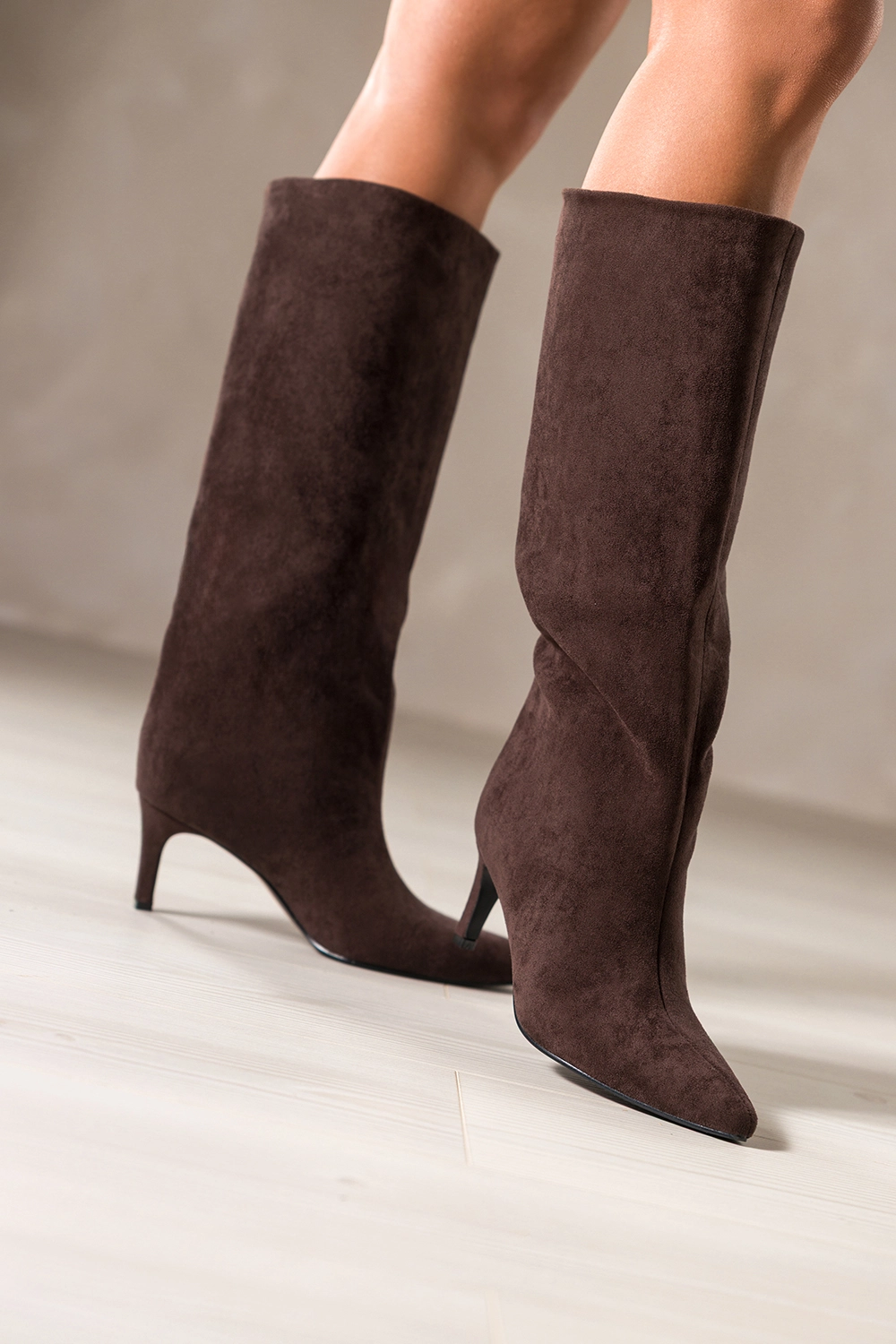 • Delikatna szpilka pokryta zamszem dla smukłej, kobiecej sylwetki.