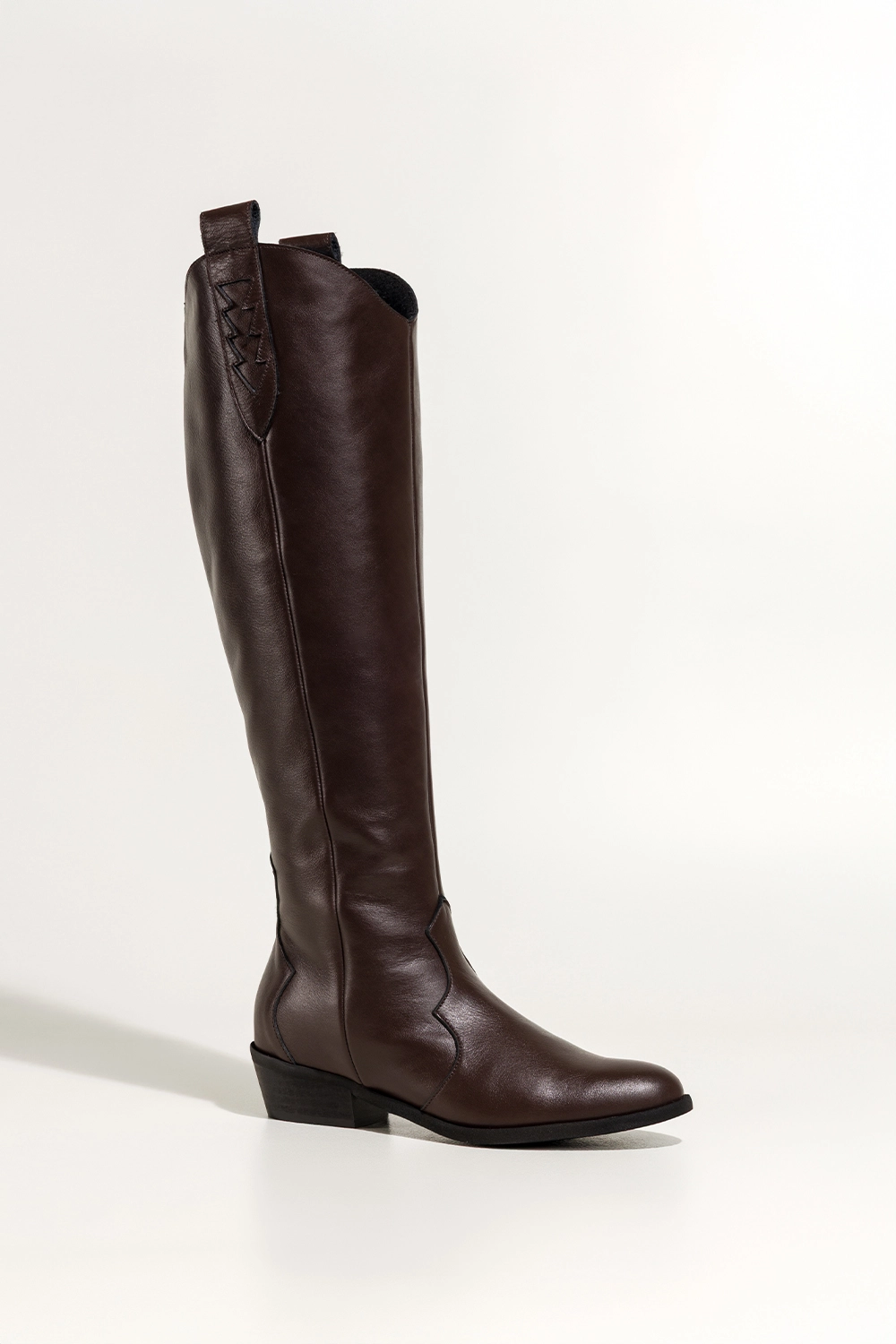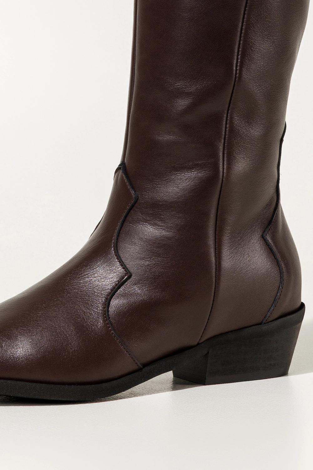 Dzięki wyciętej cholewce przed kolano oraz ozdobnym paskom, kowbojki zyskują charakterystyczny, lekko buntowniczy look inspirowany stylem western. Głęboki czekoladowy kolor doskonale komponuje się z jesienno-zimową paletą barw, dodając stylizacjom elegancji i wyrazistości. To idealny wybór zarówno do codziennych jeansów i swetra, jak i do sukienek w stylu boho. Ich unikalny design sprawia, że każda stylizacja zyskuje pazura, a Ty, pewności siebie.