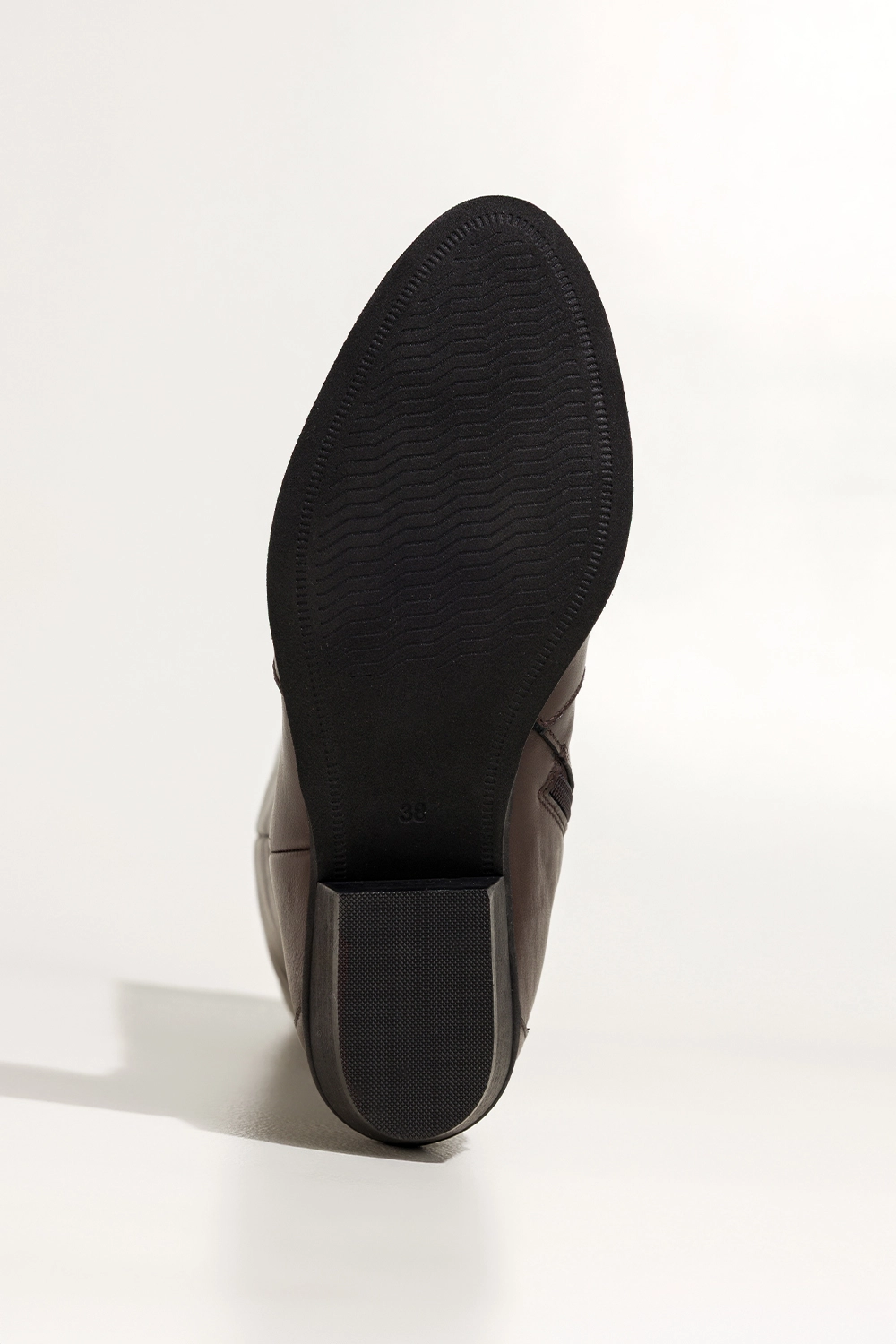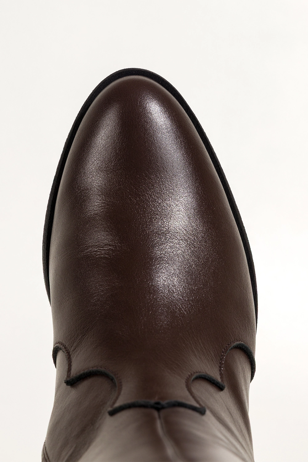 Czekoladowe kozaki skórzane damskie kowbojki na ściętym klocku wycięta cholewka z ozdobnymi paskami PRODUKT POLSKI Casu model 7000-704, to połączenie mistrzowskiego rzemiosła i naturalnych materiałów. Wykonane z wytrzymałej, miękkiej skóry licowej, gwarantują komfort i trwałość. Ocieplane kocem obuwniczym, zapewniają przyjemne ciepło nawet w najchłodniejsze dni. Zaokrąglony nosek oraz stabilny, ścięty klocek to nie tylko stylowy akcent, ale i wygoda noszenia przez cały dzień. Staranność wykończenia i dbałość o detale czynią ten model wyjątkowym i godnym uwagi.