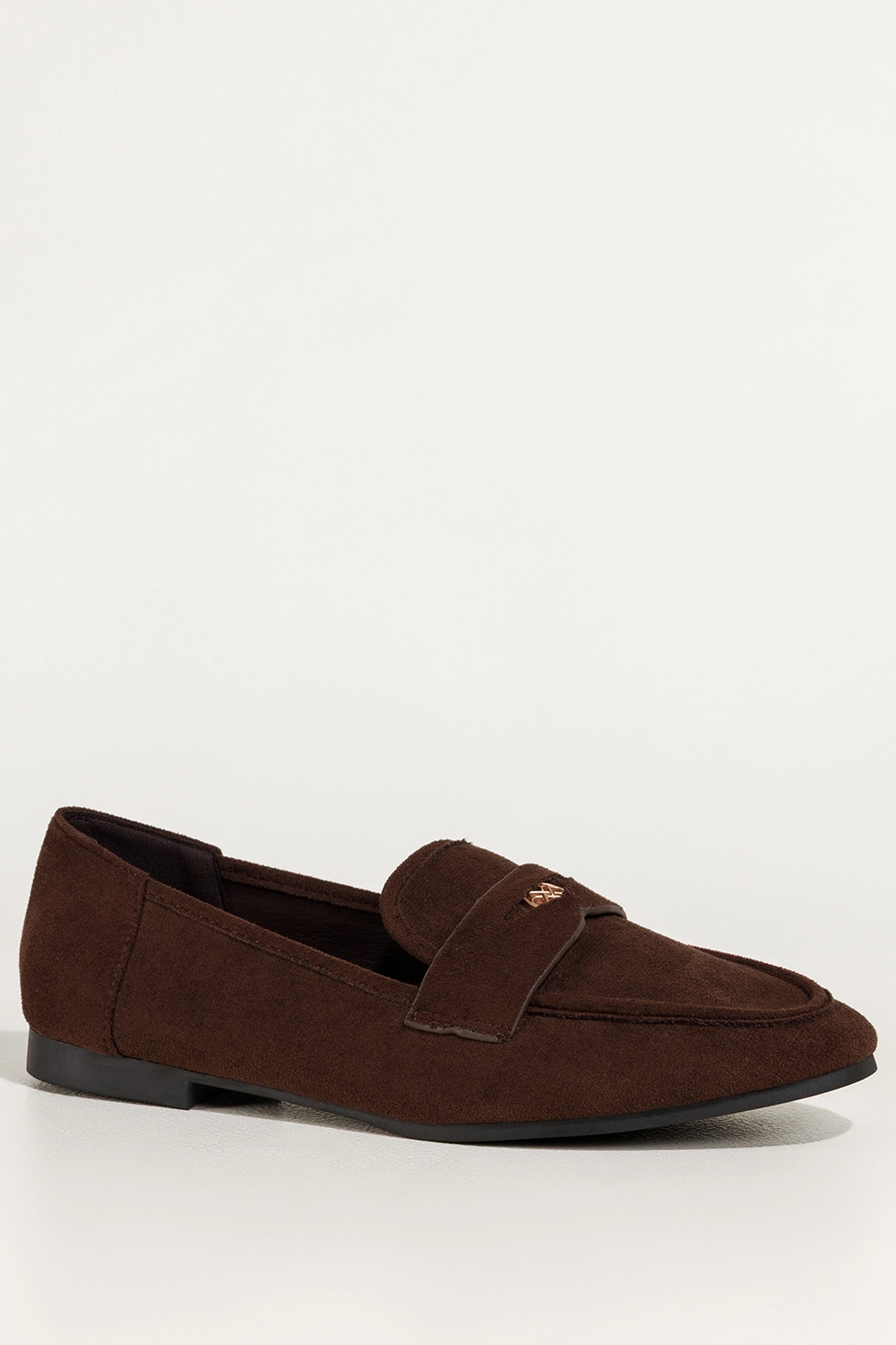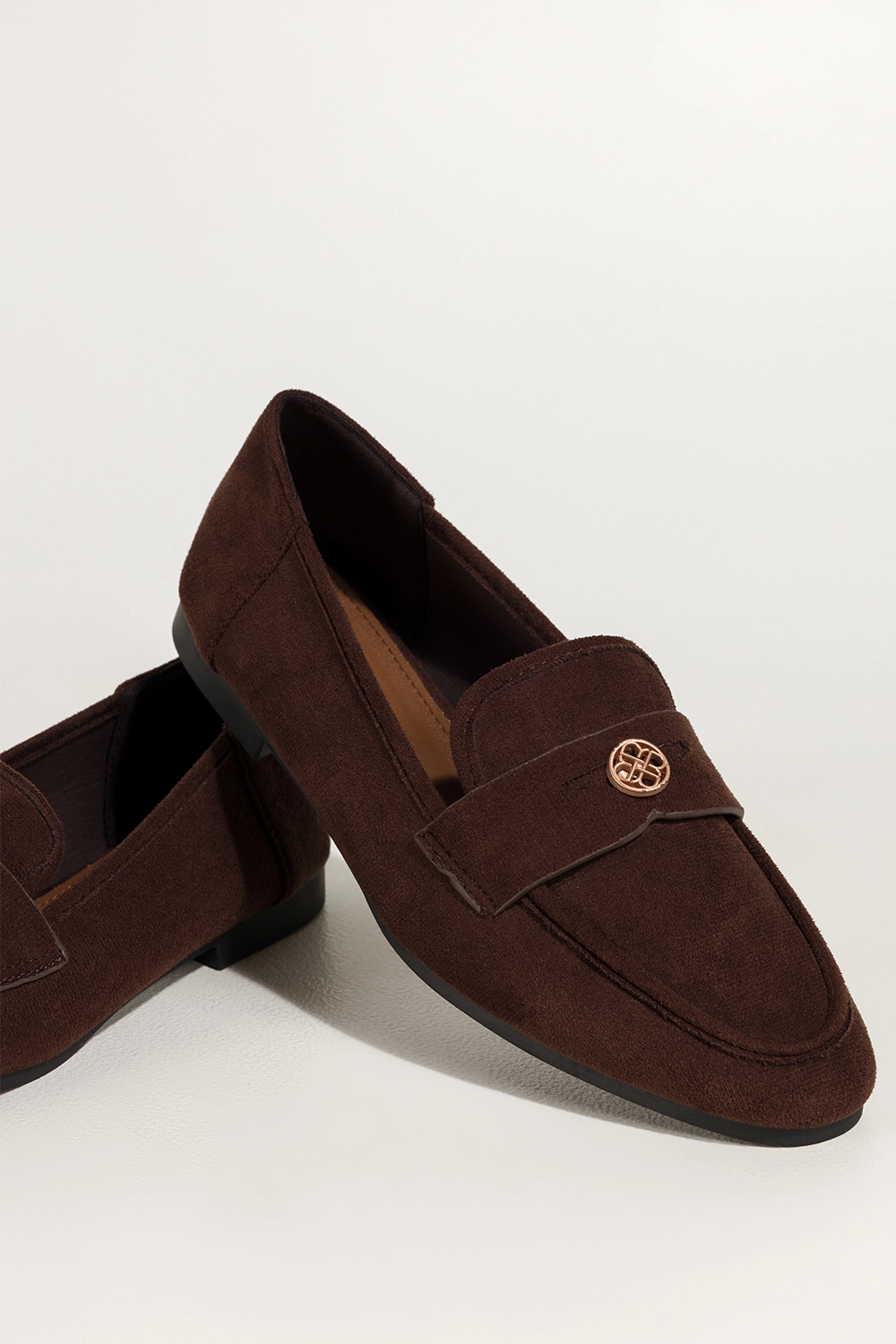 Dzięki uniwersalnemu odcieniowi głębokiej czekolady oraz efektownej złotej ozdobie na przodzie, mokasyny doskonale komponują się zarówno z eleganckimi, jak i casualowymi stylizacjami. Wsuwany fason ułatwia szybkie zakładanie, a płaska podeszwa zapewnia stabilność i swobodę ruchu. To idealny wybór do pracy, na spotkania z przyjaciółmi, a nawet na wieczorne wyjścia, zawsze podkreślą Twój styl.